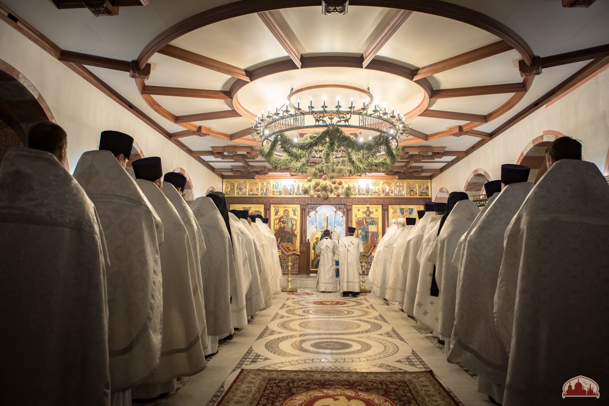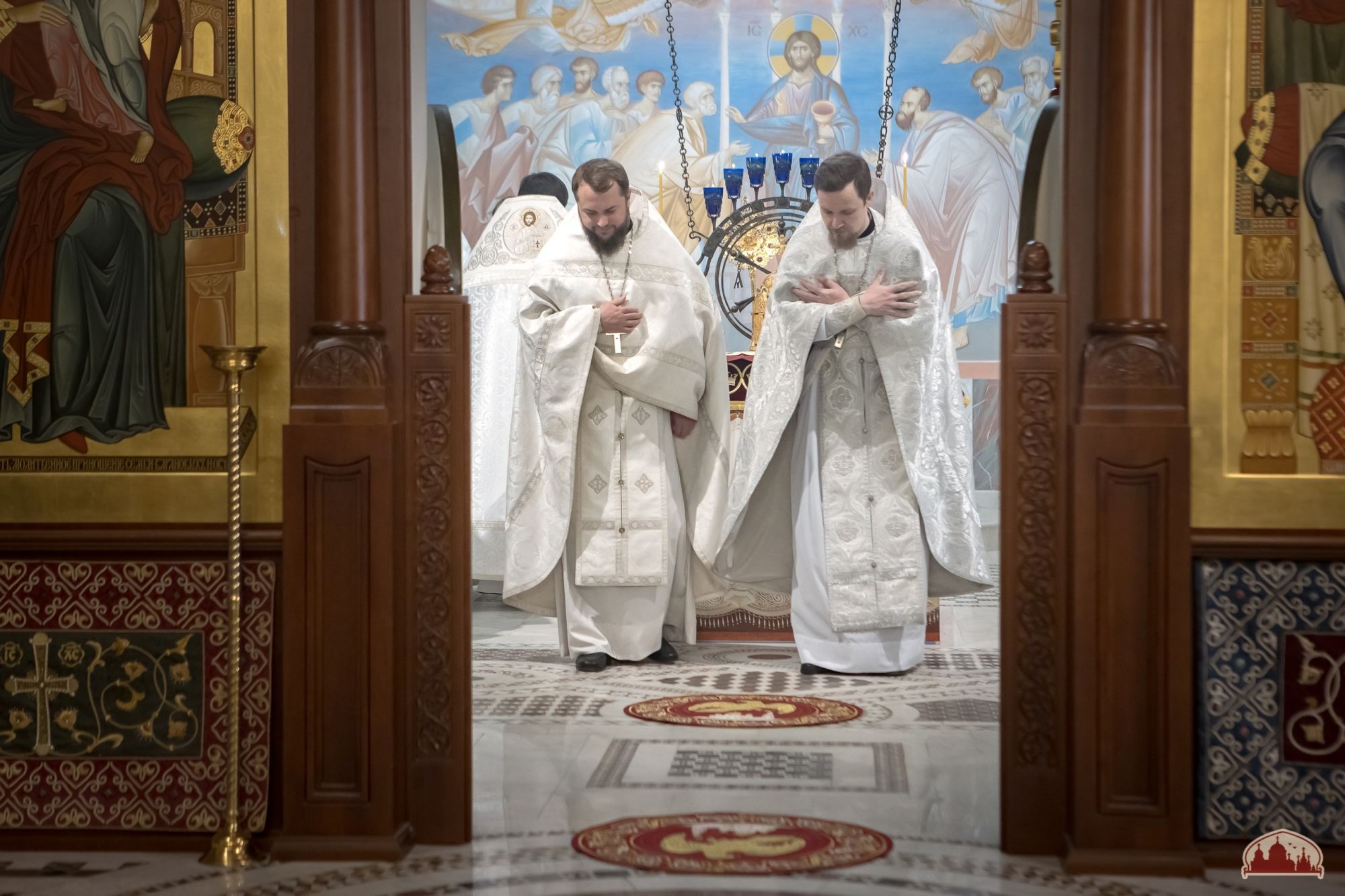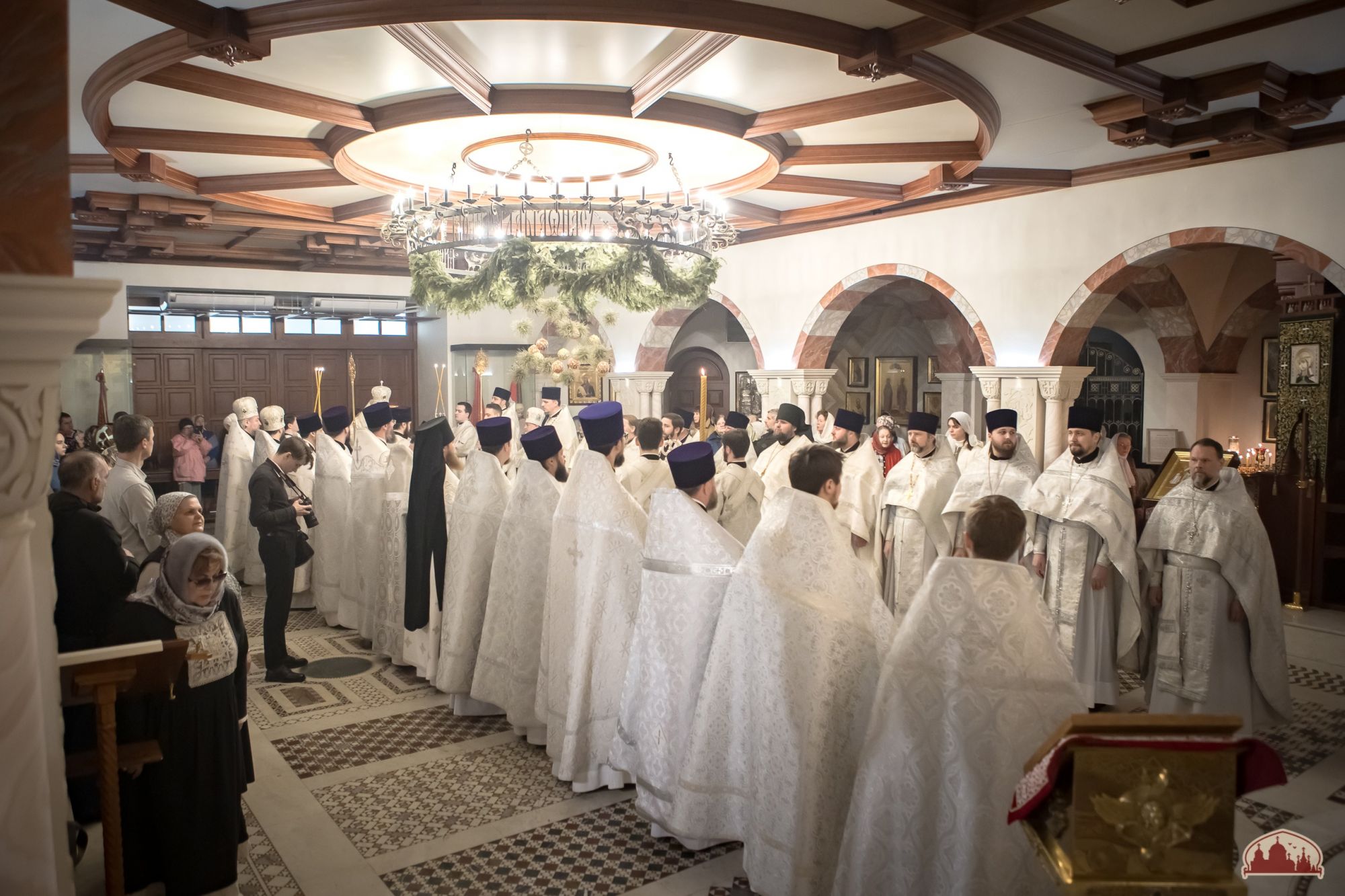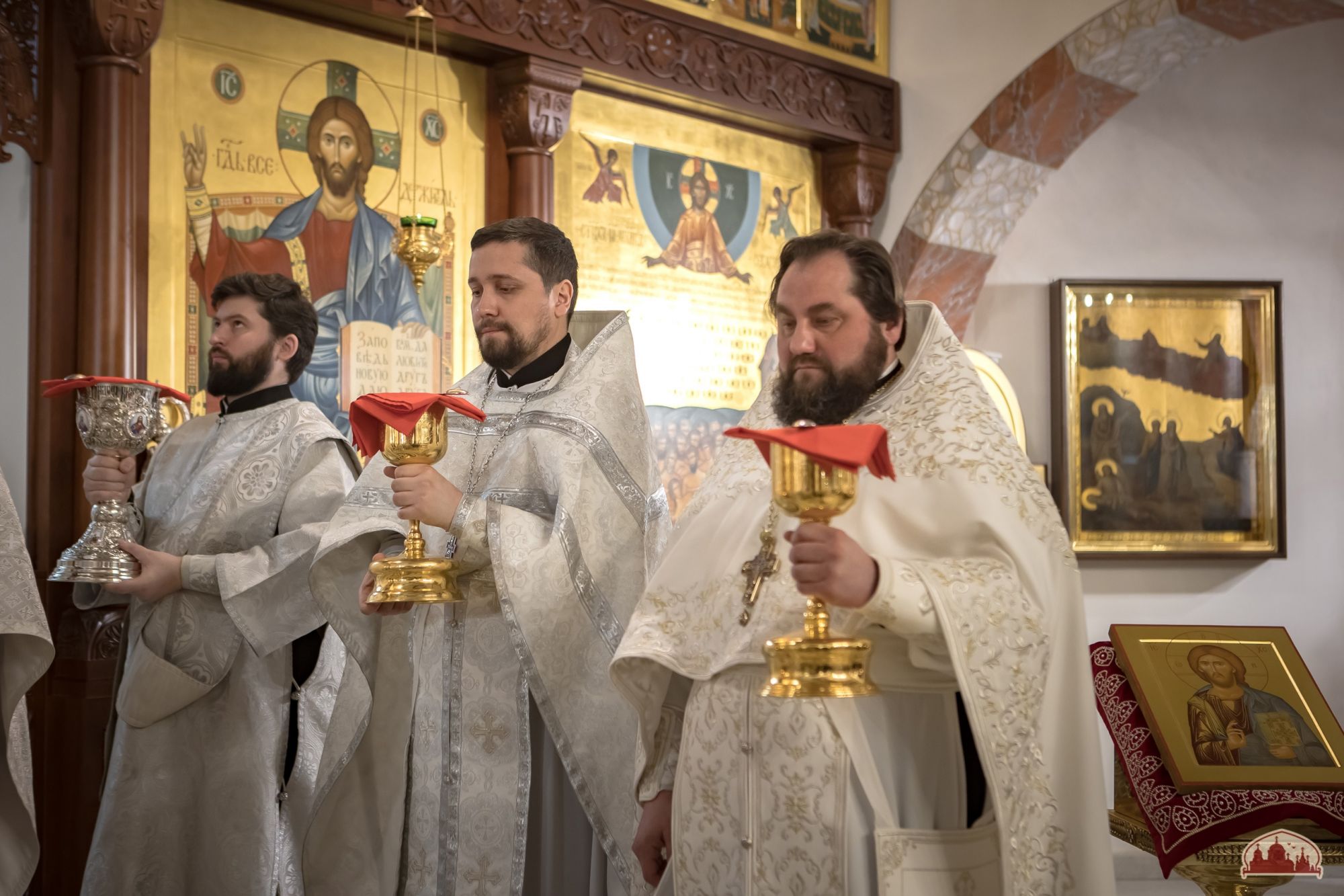Его Высокопреосвященству сослужили секретарь митрополита Ростовского и Новочеркасского по городу Ростову-на-Дону протоиерей Иоанн Осяк, руководитель Епархиального отдела по взаимодействию с Вооруженными силами и правоохранительными учреждениями, настоятель храма протоиерей Валерий Волощук, члены Епархиального совета, благочинный Западного округа, руководитель информационного отдела Ростовской-на-Дону епархии, благочинный Центрального округа, наместник Донского Старочеркасского Ефремовского мужского монастыря, древлехранитель Ростовской-на-Дону епархии, благочинный Неклиновского округа, личный секретарь Главы Донской митрополии, духовенство епархии.
