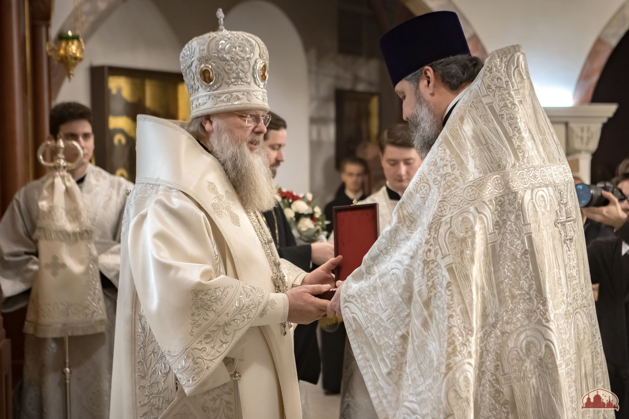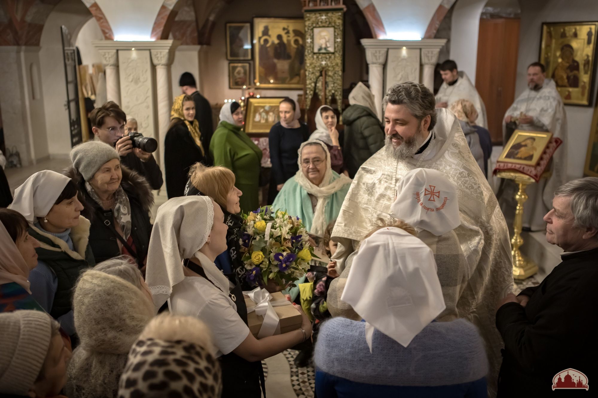В своем архипастырском слове правящий архиерей поздравил протоиерея Валерия с юбилейной датой — 50-летием со дня рождения и преподнес ему в дар на молитвенную память наперсный крест с украшениями.