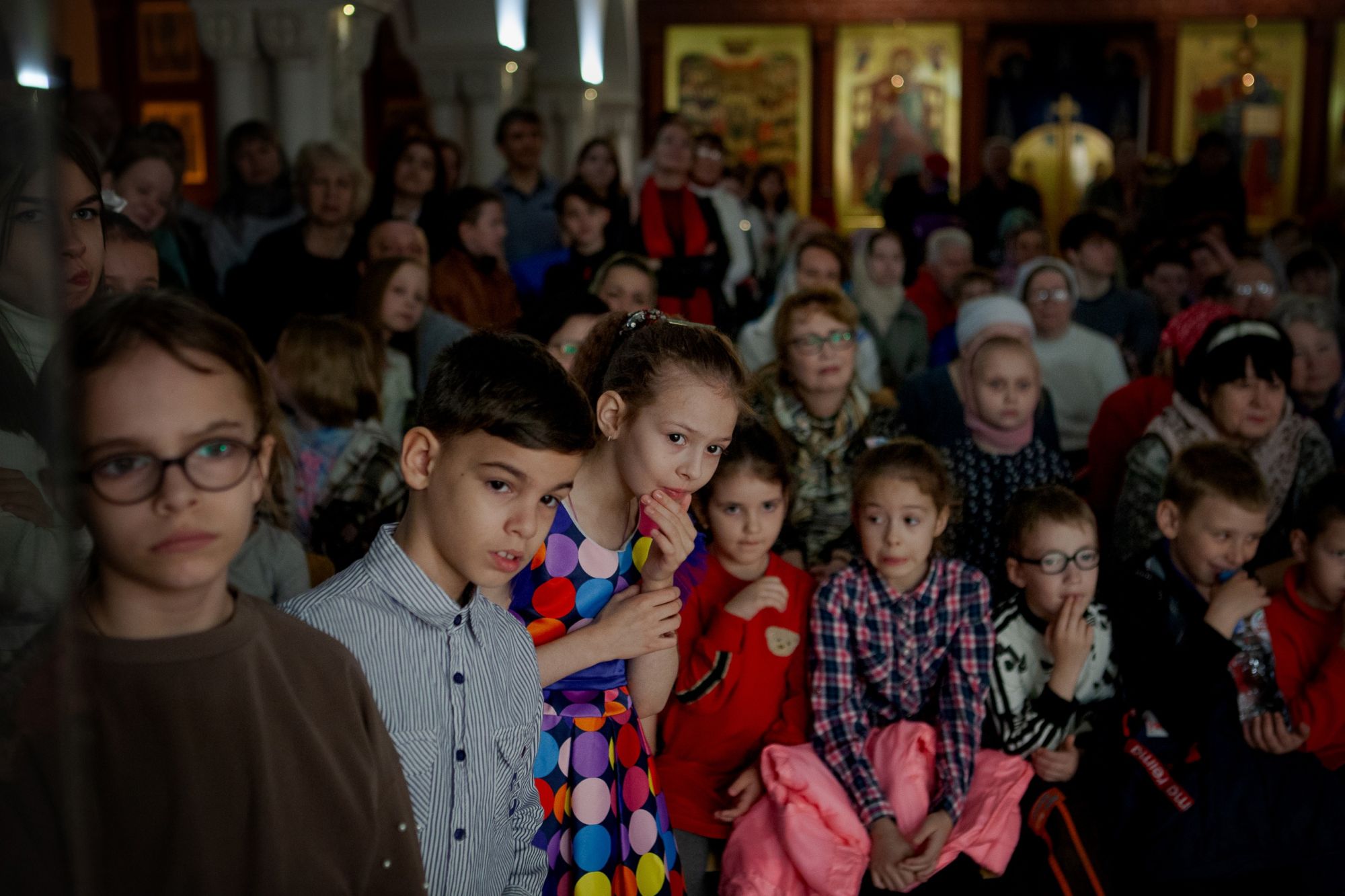 23 апреля в нижнем храме Сорока мучеников Севастийских собрались педагоги, воспитанники и их родители, чтобы разделить радость Воскресения Христова. Праздник открыл детский хор "Радуга" под управлением Дарьи Прокудиной. Ребята исполнили песни и прочитали стихи о Пасхе. Наш неизменный чтец - воспитанник 3 группы Григорий Орлов выступил со стихотворением "Пасхальные вести" Я. П. Полонского. Мария Мильстер, ученица 5 группы, исполнила произведение "Ходячий замок" - переложение для скрипки и фортепиано.