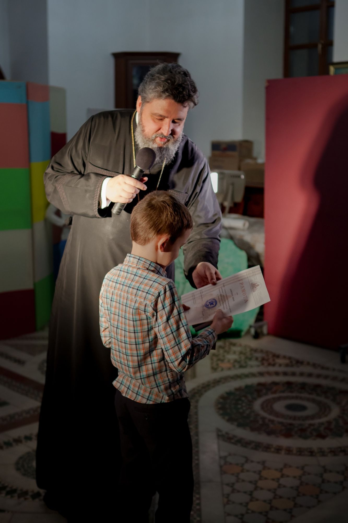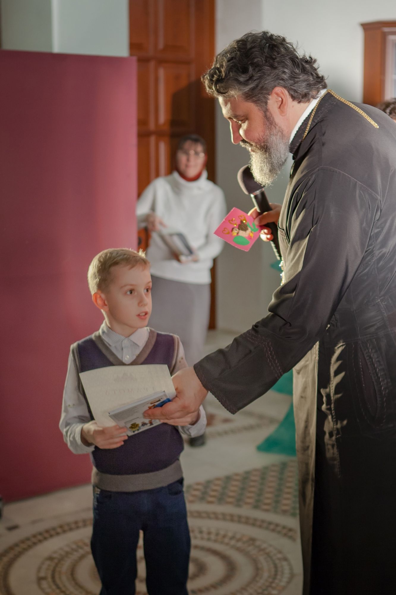 По окончании праздника педагогов, воспитанников и их родителей приветствовал настоятель прихода протоиерей Валерий Волощук. Отец Валерий вручил грамоты и подарки победителям приходского тура Кирилло-Мефодиевской олимпиады по Закону Божьему. А также поздравил каждого пришедшего на праздник ребёнка со Светлым Христовым Воскресением!