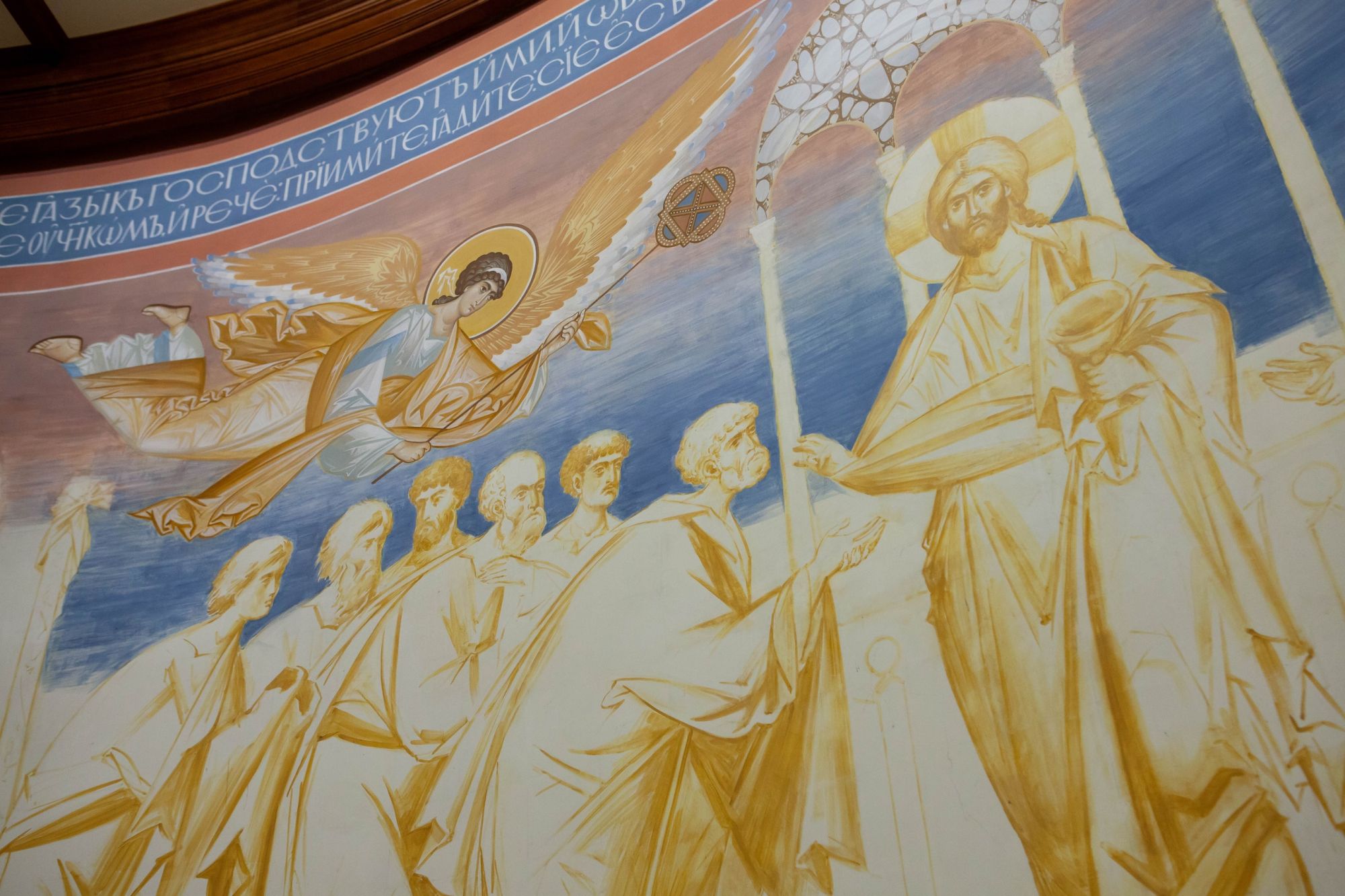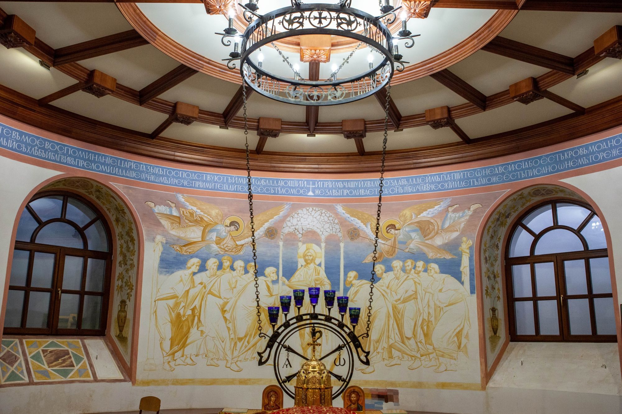 Храм Сорока мучеников Севастийских обретает цвет! В августе у нас вновь работала команда иконописцев под руководством Анатолия Алёшина. В левой галерее криптового храма уже можно увидеть цветное изображение одно из мучеников Севастийских - святого Аетия. В алтаре появились новые росписи. Также продолжилась работа над образом Тайной Вечери, которым Анатолий Валерьевич занимается уже больше года. В левом пределе мастера заканчивают писать иконы Господа Вседержителя и Богородицы.