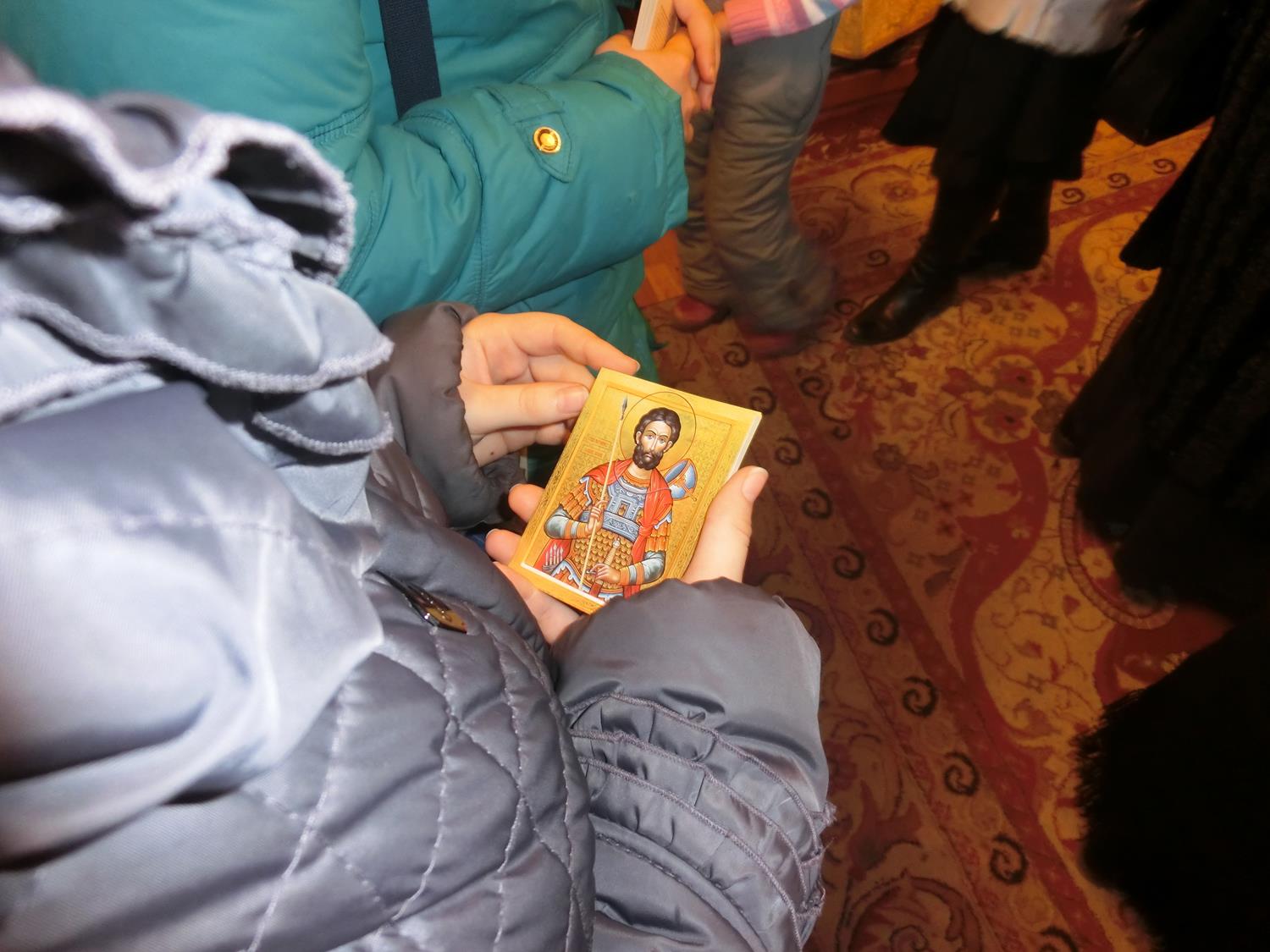 По окончании литургии протоиерей Валентин Ермилов сказал проповедь дав оценку и событиям на Украине. Воспитанницы воскресной школы храма Святого Иоанна Воина совместно с сетричеством, поздравили мужчин с 23 февраля, раздавая иконки мученика Иоанна Воина – покровителя военных.