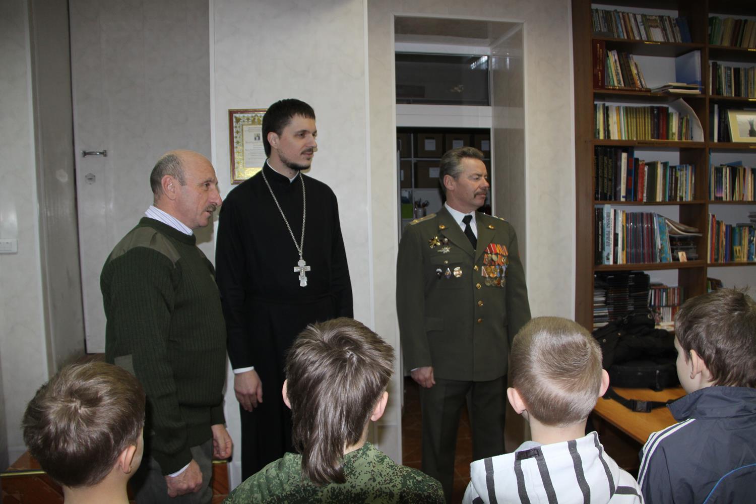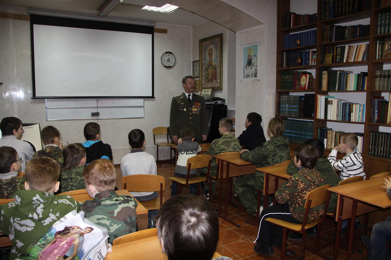 Ветеран войны в Афганистане, Юрий Анатольевич, рассказал ребятам о своей военной службе в рядах Советской и Российской Армии. Для всех собравшихся была представлена презентация с использованием видеоматериалов о военной истории нашей Родины.