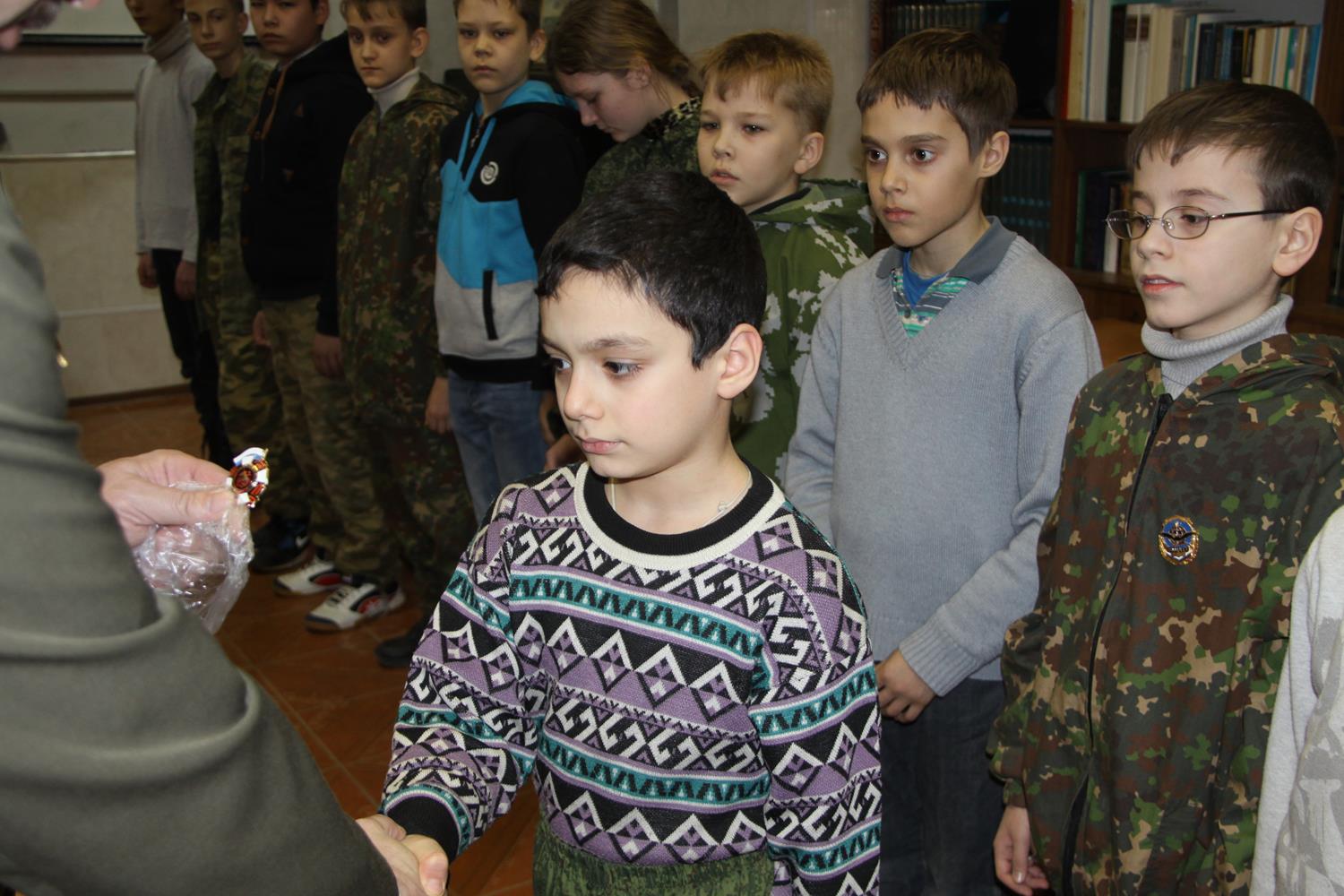 Наиболее активным и дисциплинированным воспитанникам были вручены нагрудные знаки с изображением Георгия Победоносца. Преподавателям уроков мужества были подарены комплекты армейского обмундирования.