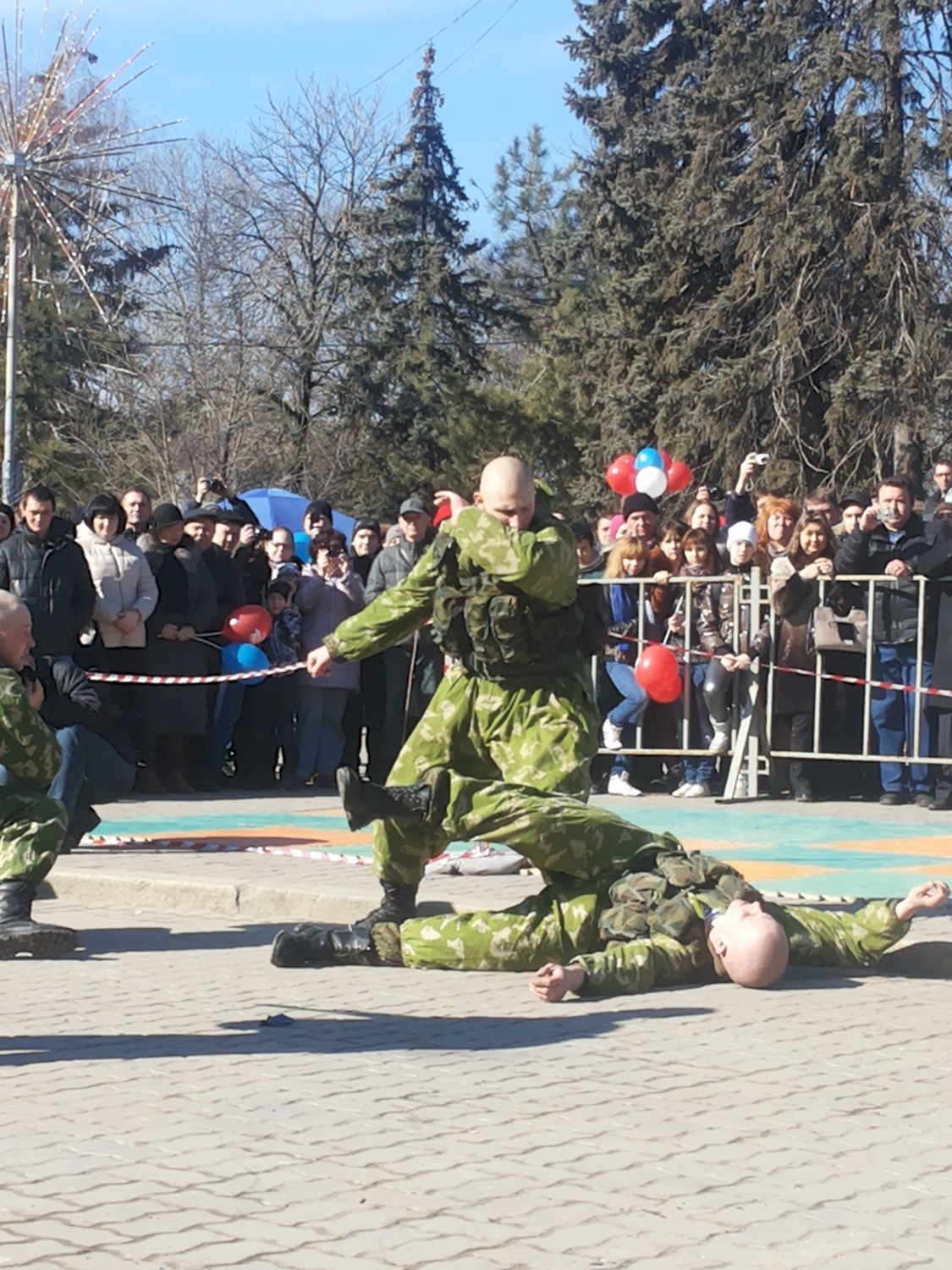 23 февраля 2015 года в Ростове-на-Дону прошли мероприятия, посвященные Дню защитника Отечества. В Доме Офицеров Южного Военного Округа состоялся концерт для ветеранов и жителей города Ростова. Участниками концерта были в том числе и победители Международного фестиваля Песни воинской славы, организатором которого является Ростовский Духовно-Патриотический центр Святого Георгия Победоносца. На открытой площадке парка имени Максима Горького была организована выставка военной исторической и современной техники. Представители военно-исторических клубов организовали выставку формы одежды и макетов оружия времен Великой Отечественной Войны. Военнослужащие Ростовского военного гарнизона показали всем собравшимся свое умение в ведении армейского рукопашного боя. В организации и проведении мероприятий приняли участие представители нашего приходского Духовно-Патриотического Центра Святого Георгия Победоносца.