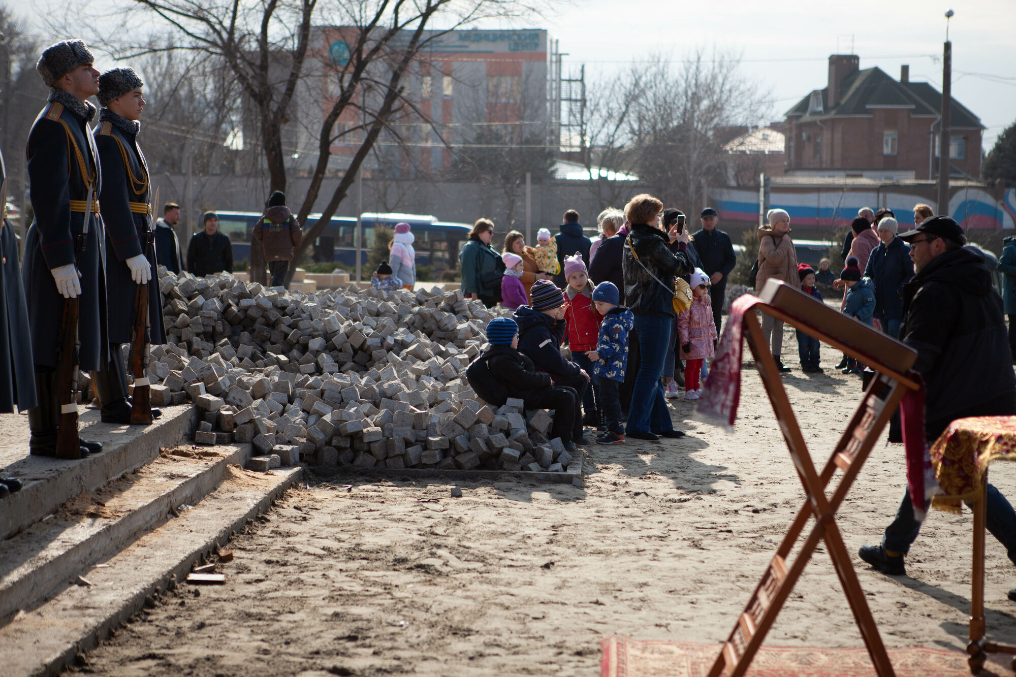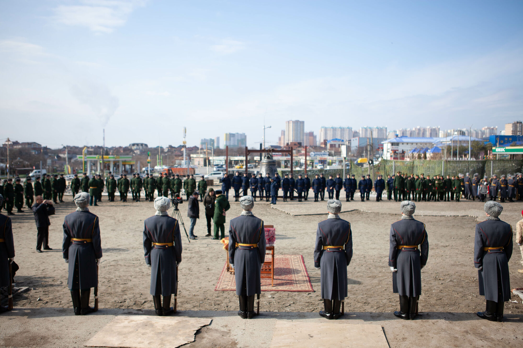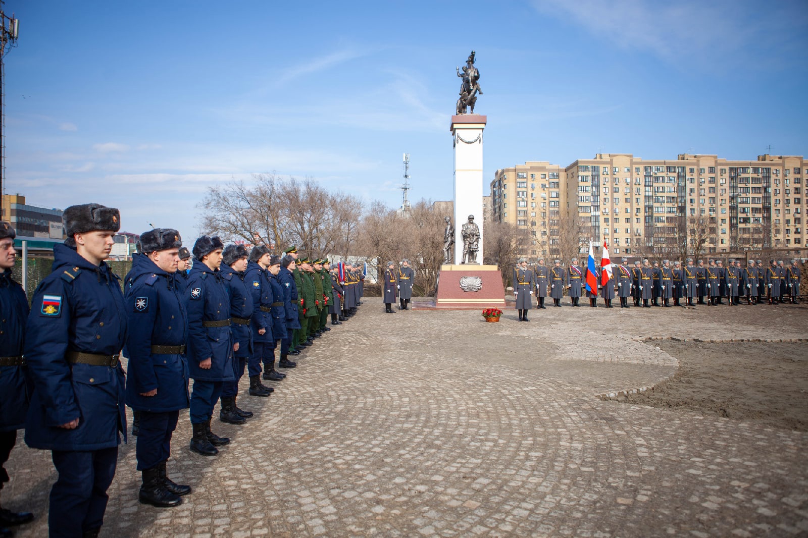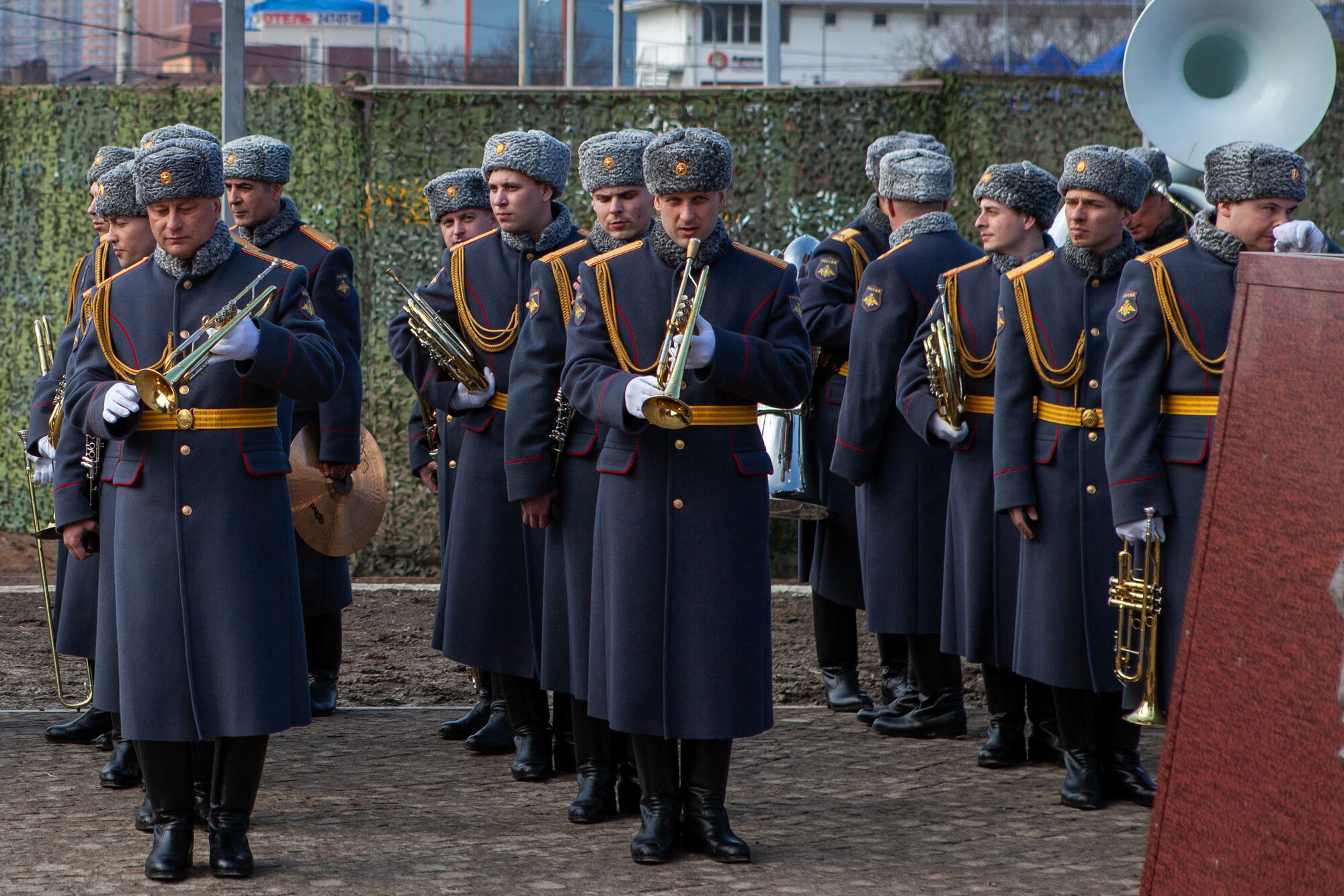 По окончании молебна отец Валерий поздравил в лице собравшихся войска Южного военного округа с Днём защитника Отечества, пожелал крепости, сил и помощи от Господа в высоком и ответственном служении, любви к Богу, Родине и ближним. Торжественную церемонию завершило возложение цветов к памятнику войнам-освободителям.