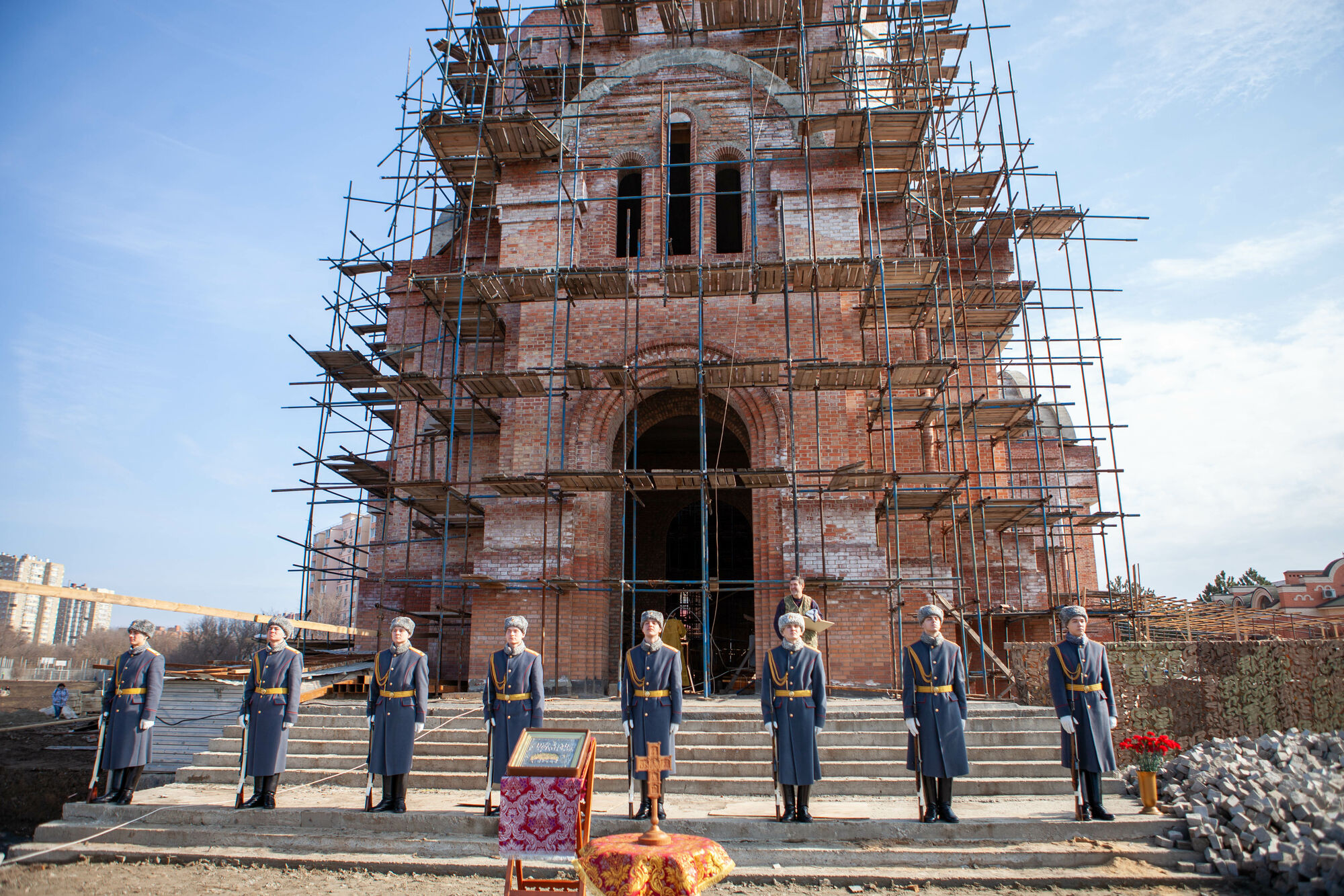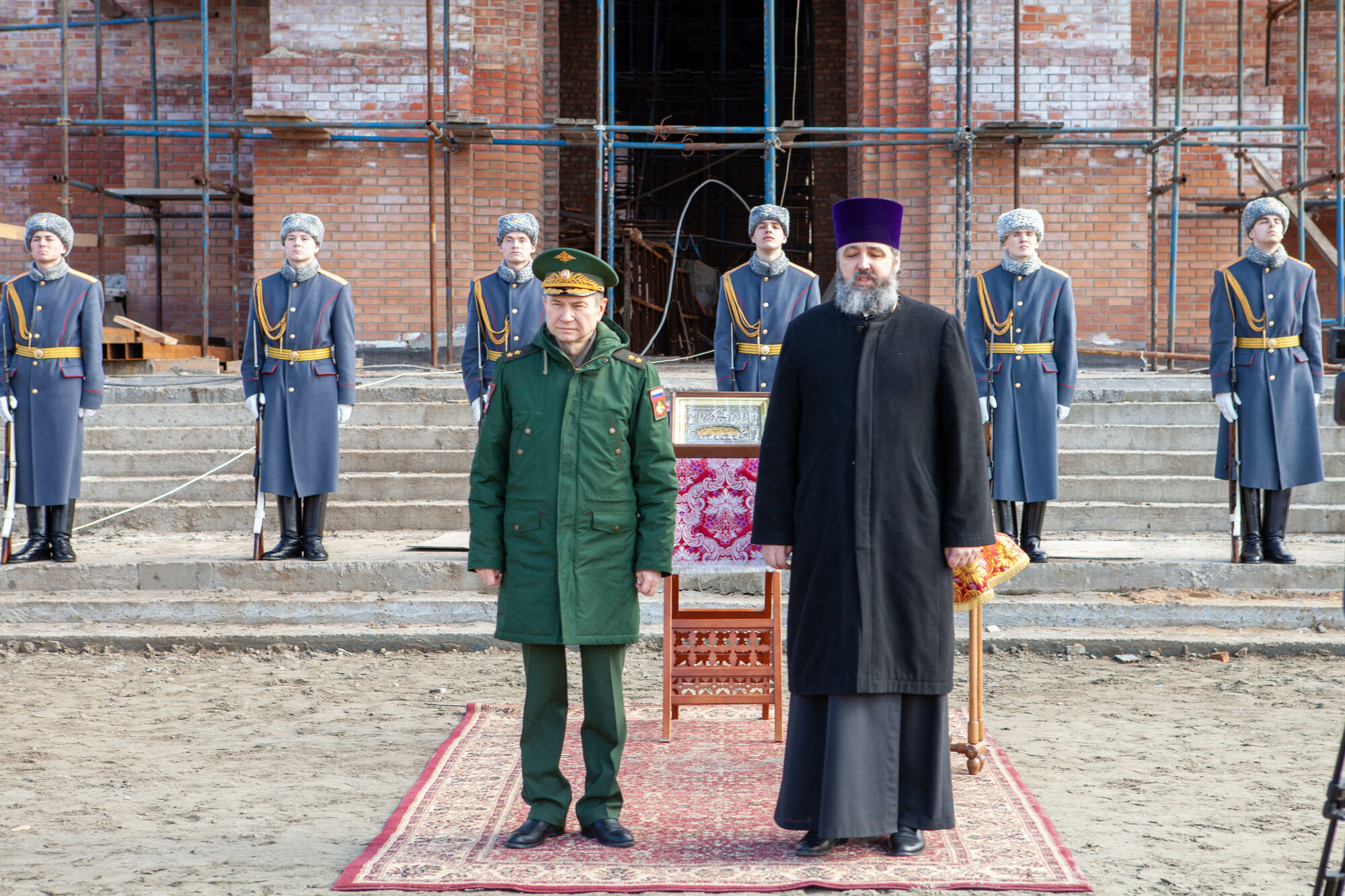 В День защитника Отечества настоятель нашего храма — главного храма Южного военного округа, руководитель отдела по взаимодействию с Вооруженными Силами и правоохранительными органами протоиерей Валерий Волощук вместе с заместителем командующего войсками ЮВО генерал-лейтенантом Алексеем Авдеевым, офицерами и личным составом Ростовского-на-Дону гарнизона совершили молебен об Отечестве и воинстве.