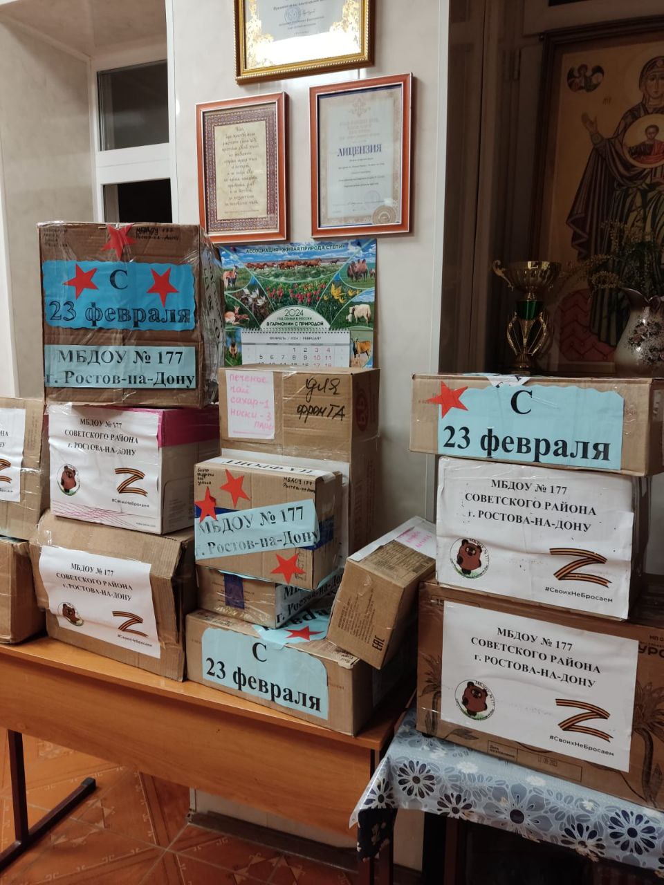 Силами прихода, волонтеров храма святого Пантелеимона г. Нижневартовска, дошкольных образовательных учреждений Советского района, Ростовского технологического техникума сервиса поздравили наших воинов в окормляемых воинских частях и госпитале.