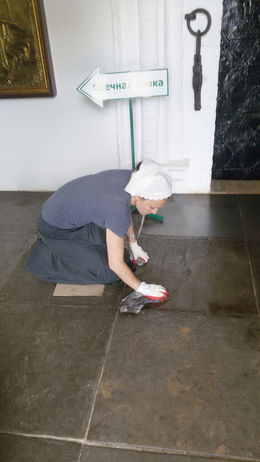 23 июля 2016 года состоялась очередная поездка наших сестер. После дождя покрылись ржавчиной ступени. Пришлось не мало потрудиться чтобы очистить их от ржавчины, смазать их маслом. Также регулярно надо следить за подсвечниками, подметать полы в Храме и на колокольне.