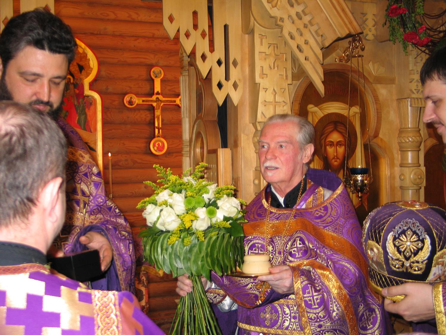 по окончании которой наш приход поздравил штатного священника, митрофорного протоиерея