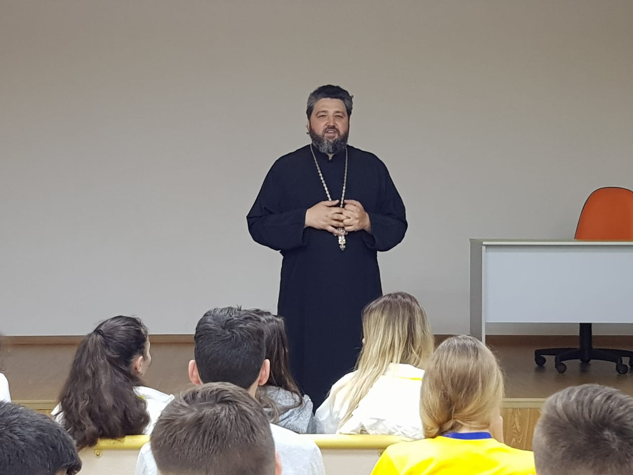 Протоиерей Валерий Волощук выступил в качестве лектора и пообщался с ребятами в живом формате на тему истории России и православия.