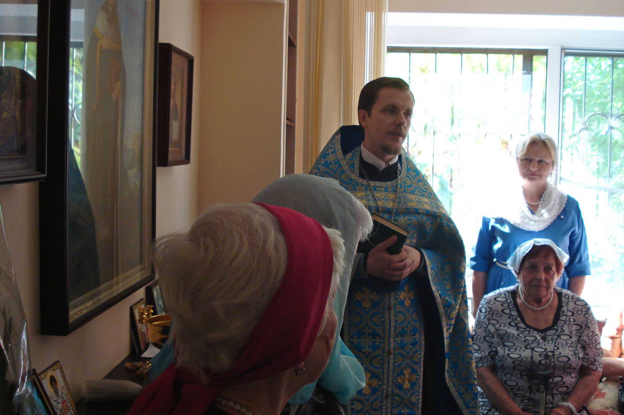 23 сентября 2017 года в рамках регулярной деятельности сестричества нашего Храма, связанной с окормлением ЦСО Советского района г. Ростова-на-Дону, клириком Прихода Святого Георгия Победоносца иереем Романом Зиминым был отслужен молебен. Молебен приурочен к празднованию двунадесятого праздника – Рождества Пресвятой Богородицы. Для посетителей центра чрезвычайно важным и искренне желаемым является посещение священника и участие в молебне. Совместная молитва в молитвенной комнате, освященной в честь Св. Сампсона Странноприимца, происходила в обстановке глубокого проникновения в текст, произносимый священником. Была освящена вода, которой отец Роман окропил присутствовавших пенсионеров и сотрудников ЦСО.
