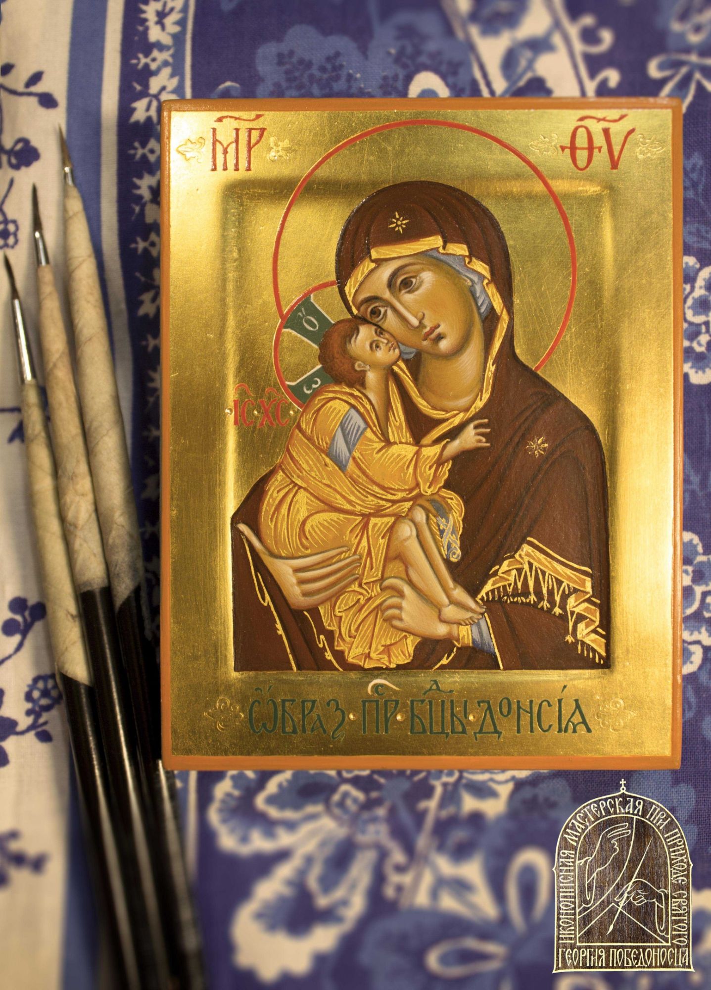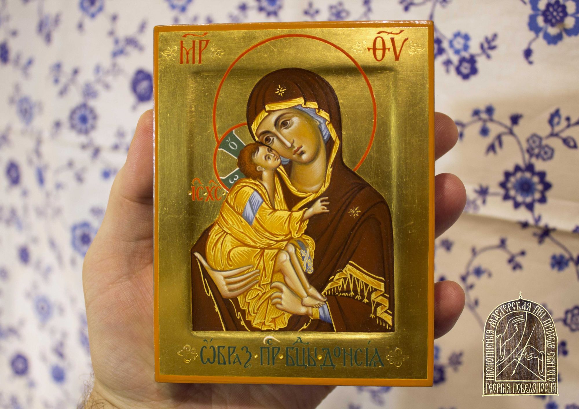 На Донской земле появился ещё один Образ Богородицы Донская! Дмитрий Александрович написал икону в Рождественские праздники. Она настолько маленького размера - 9-12 см, что писать было не просто, особенно золотой асист.