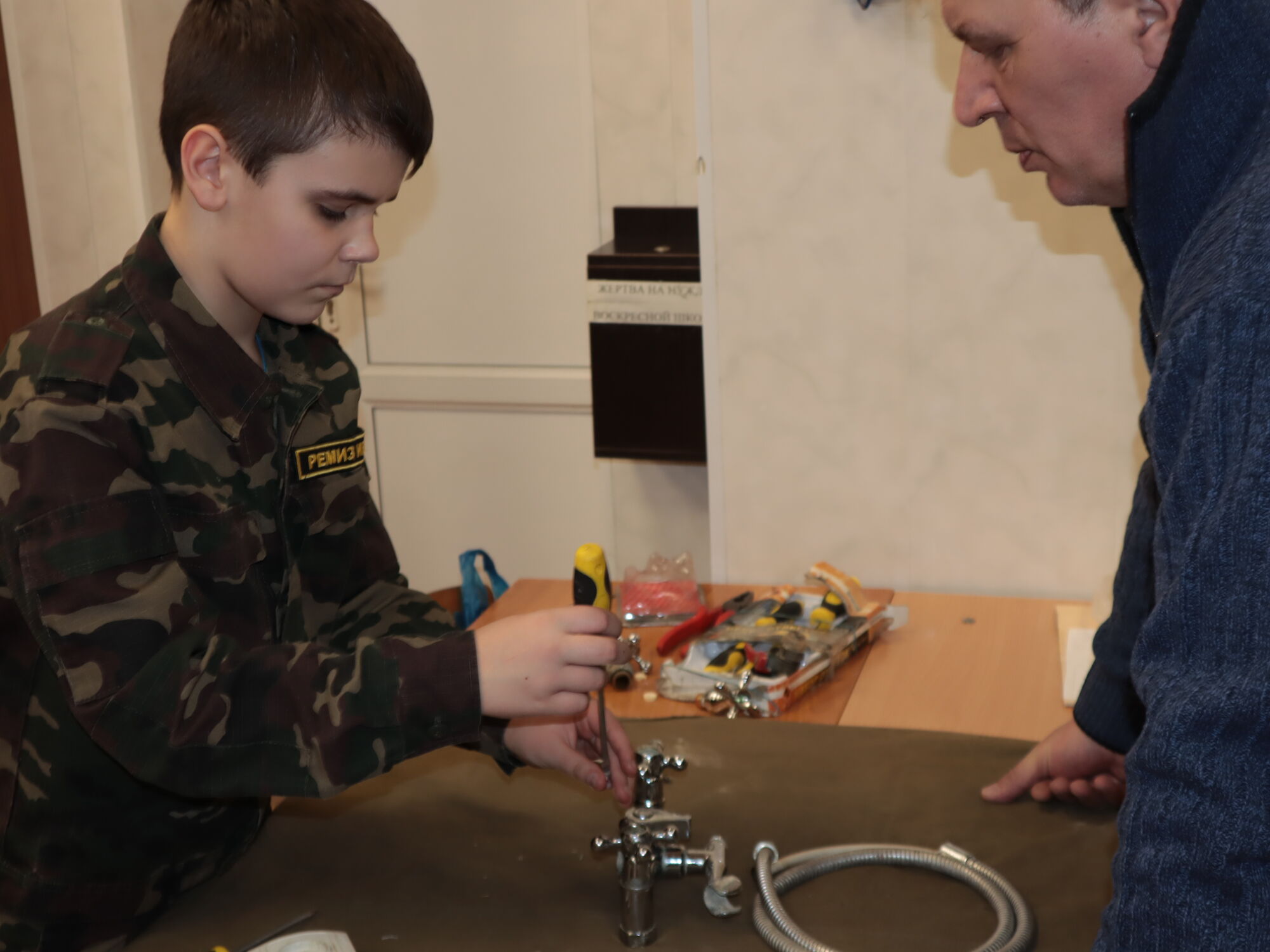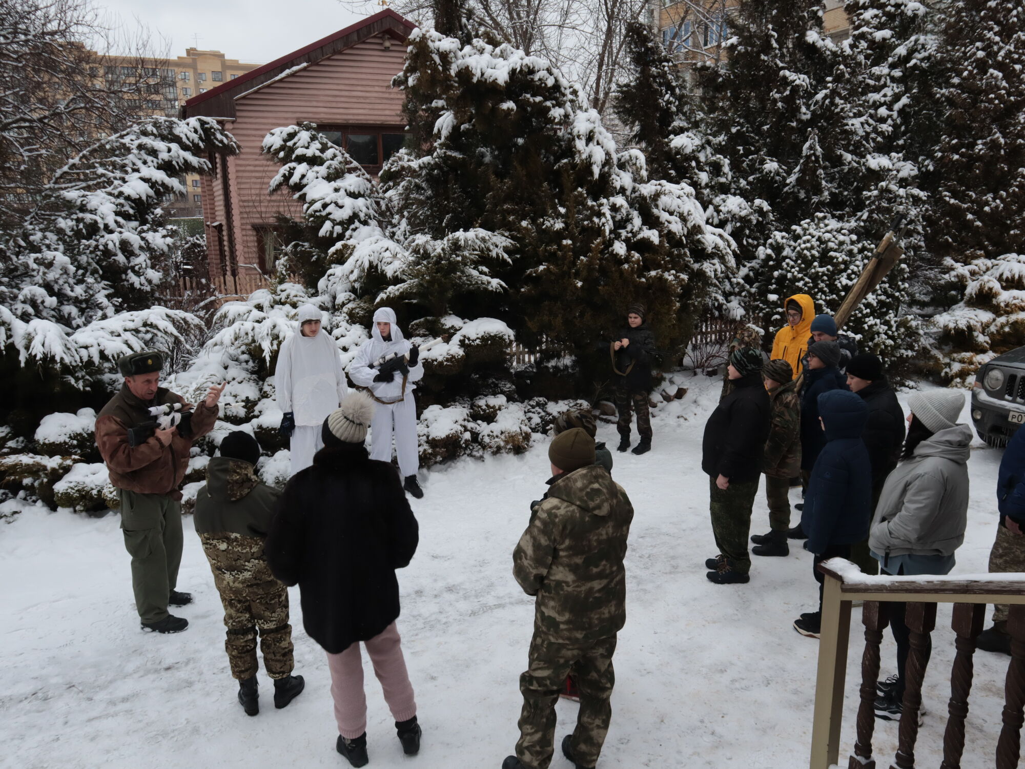 На территории нашего прихода организуются занятия по начальной военной подготовке к службе в Российской армии по программе «Уроки мужества». Выпавший снег 23 января помог в занятиях с использованием средств маскировки. Юные защитники Отечества старшего возраста помогают младшим юнармейцам в получении необходимых знаний и навыков.