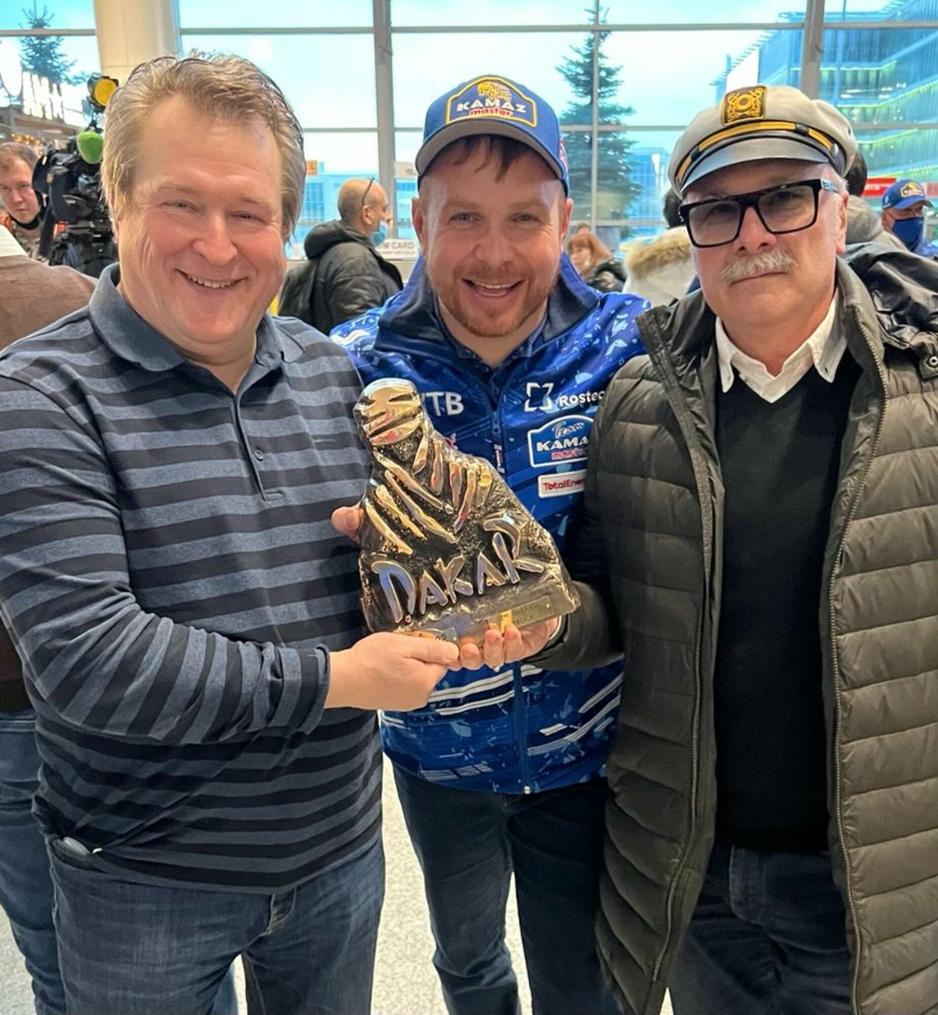 В январе 2022 года в Саудовской Аравии прошел международный ралли марафон «Дакар 2022». 12 этапов более 8000 километров по пескам и дюнам. Все четыре призовых места в зачете грузовиков заняла Российская команда «КАМАЗ мастер» под руководством Владимира Чагина. Представителем команды в Федеральных округах РФ и странах СНГ является член Ростовского духовно-патриотического центра Святого Георгия Победоносца (Главнго храма ЮВО) ветеран вооруженных сил Шашлюк Юрий Алексеевич. Российская команда гонщиков стала чемпионами «Дакара» в девятнадцатый раз. В этом году нашими спортсменами был продемонстрирован пример настоящей дружбы и командного единства. На 11-м этапе «Дакара» увидев застрявший на песчаной дюне КамАЗ Дмитрия Сотникова, Эдуард Николаев на своем грузовике помог товарищу по команде и вытащил его из песчаного плена. Дав ему возможность первому прийти к финишу. Наши гонщики в очередной раз показали всему миру надежность и техническое совершенство грузовиков КАМАЗ, мастерство и силу духа команды «КАМАЗ мастер». Всем победителям был вручен символ победы «Золотой бедуин».