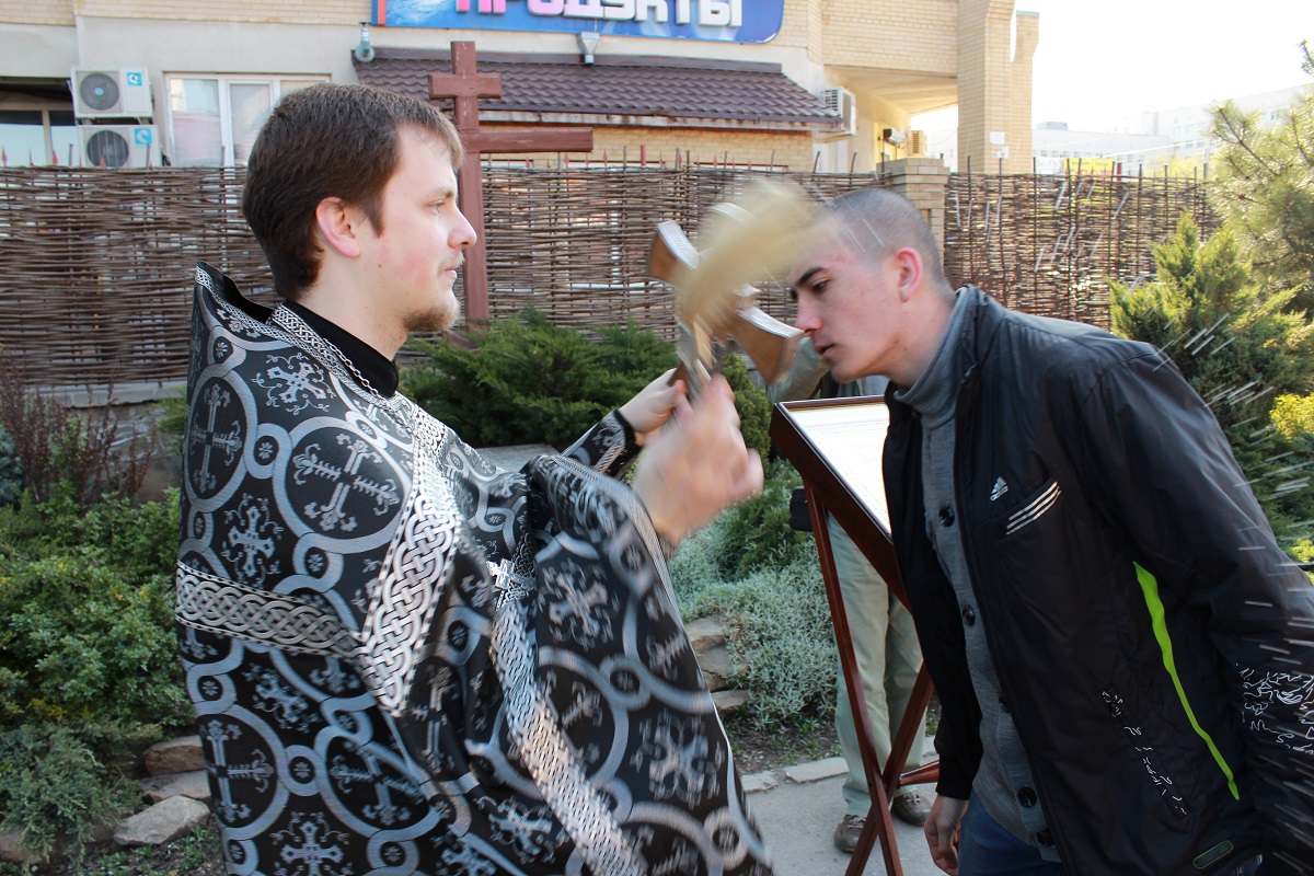24 апреля 2013 года по благословению руководителя Отдела по взаимоотношениям Церкви и общества Ростовской-на-Дону епархии, настоятеля прихода святого Георгия Победоносца г. Ростова-на-Дону протоиерея Валерия Волощука, клирик прихода иерей Роман Зимин совершил молебен для представителей поискового объединения "Миус-фронт". Поисковики посетили храм святого Иоанна Воина перед началом поисковых работ в Зерноградском районе Ростовской области.