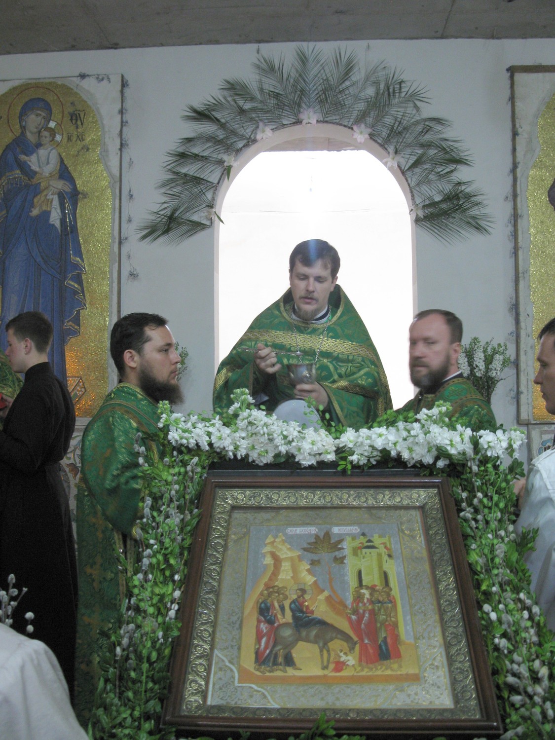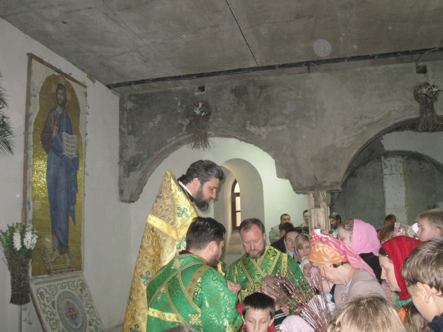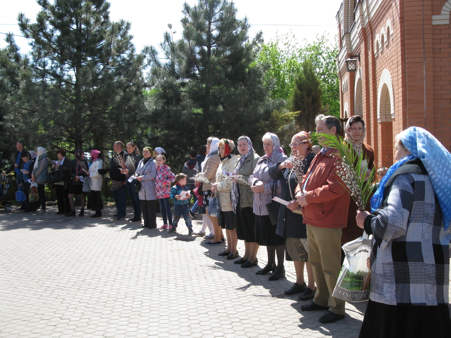 Сегодня, 24 апреля 2016 года, мы праздновали Вход Господень в Иерусалим (Вербное воскресенье, Неделя Ваий). В нижнем храме в честь Сорока Севастийских мучеников совершили Божественную Литургию, которую возглавил настоятель храма, протоиерей Валерий Волощук. Прихожане с вербочками и листьями пальм полностью заполнили храм, даже в дверях было тесно.