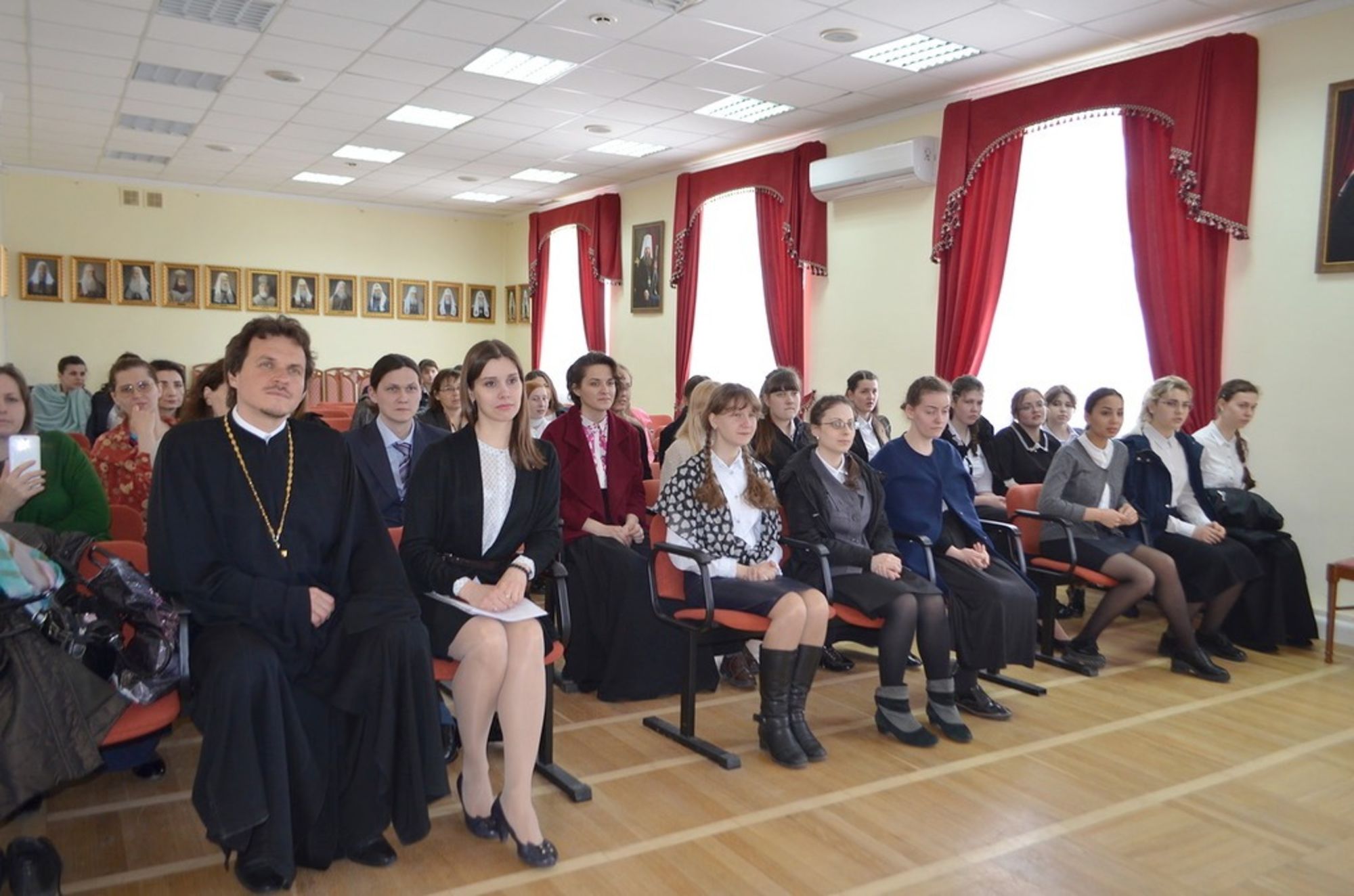 24 апреля 2017 года преподаватель нашей воскресной школы, руководитель хора мальчиков Марченко Кирилл Владимирович принял участие в семинаре "Методика организации и развития детских коллективов воскресных школ", который проходил в стенах Донской Духовной Семинарии. В семинаре помимо нашей школы также приняли участие хормейстеры и регенты храмов: св. прв. Иоакима и Анны, иконы Божией Матери "Целительница", Казанской иконы Божией Матери. Семинар открылся приветственным словом руководителя регентско-певческого отделения ДДС, протоиерея Владимира Георгиевича Хайрова. Далее с воспитанниками регентского отделения семинарии провела мастер- класс профессор Ростовской государственной консерватории им. С. В. Рахманинова Галина Васильевна Хорошайло. В лёгкой и непринуждённой форме Галина Васильевна ознакомила учащихся с методами и принципами работы с детским хором, а также поделилась своим богатым опытом по данному вопросу.