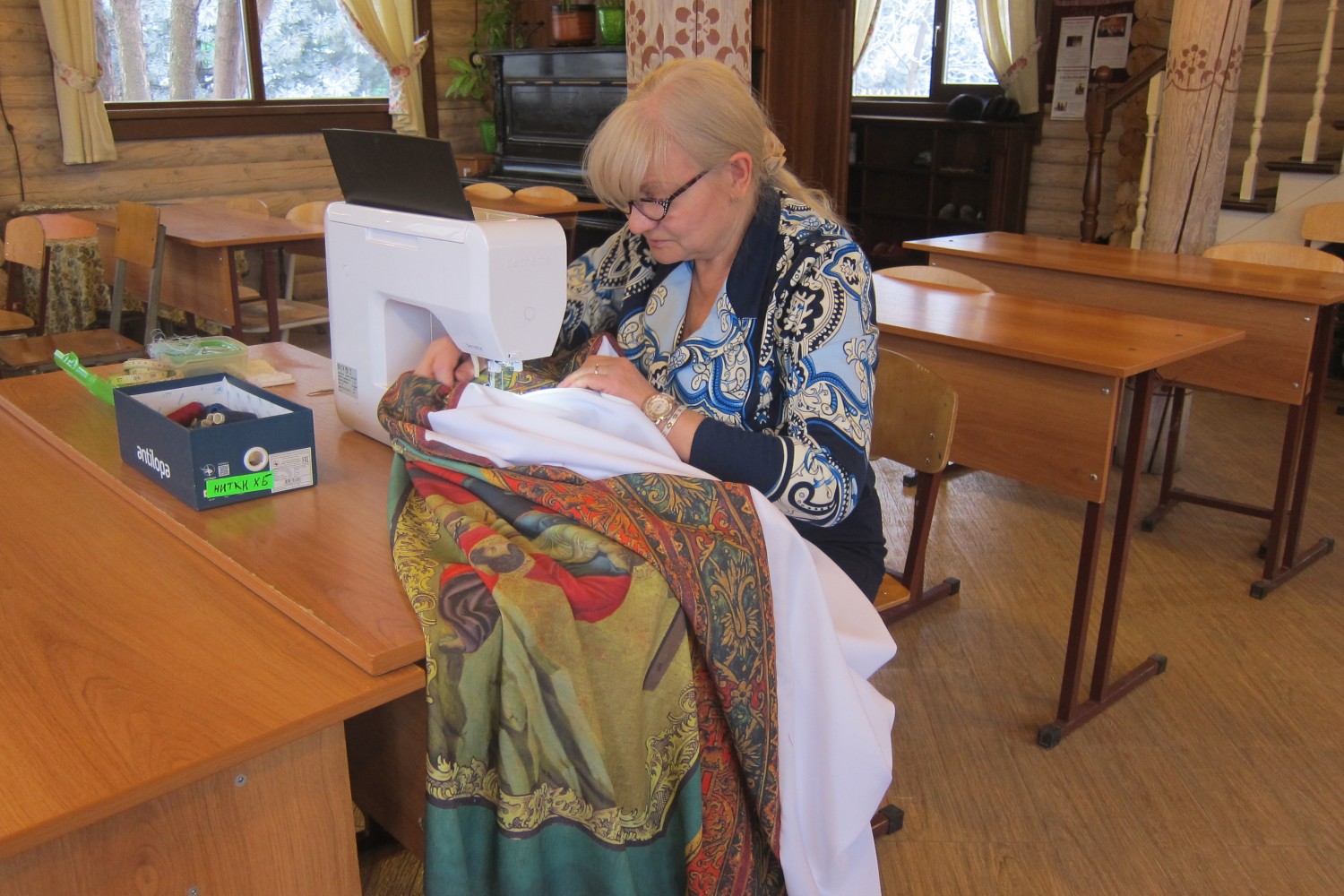 В золотошвейной мастерской имени св. прав. Тавифы прихода св. Георгия Победоносца накануне праздника св. Спиридона Тримифунтского и архиерейской службы в Войсковом Соборе г. Старочеркасска прошла сборка индитии для этого Собора. Индития символизирует собой одеяние царственной Славы Христа Спасителя как Сына Божия, которая была присуща Ему до Творения мира, но не была очевидна окружающим Воплотившегося Бога людям. И лишь Преображение Христа на горе Фавор приоткрывает Его ученикам суть этой царственной Славы.