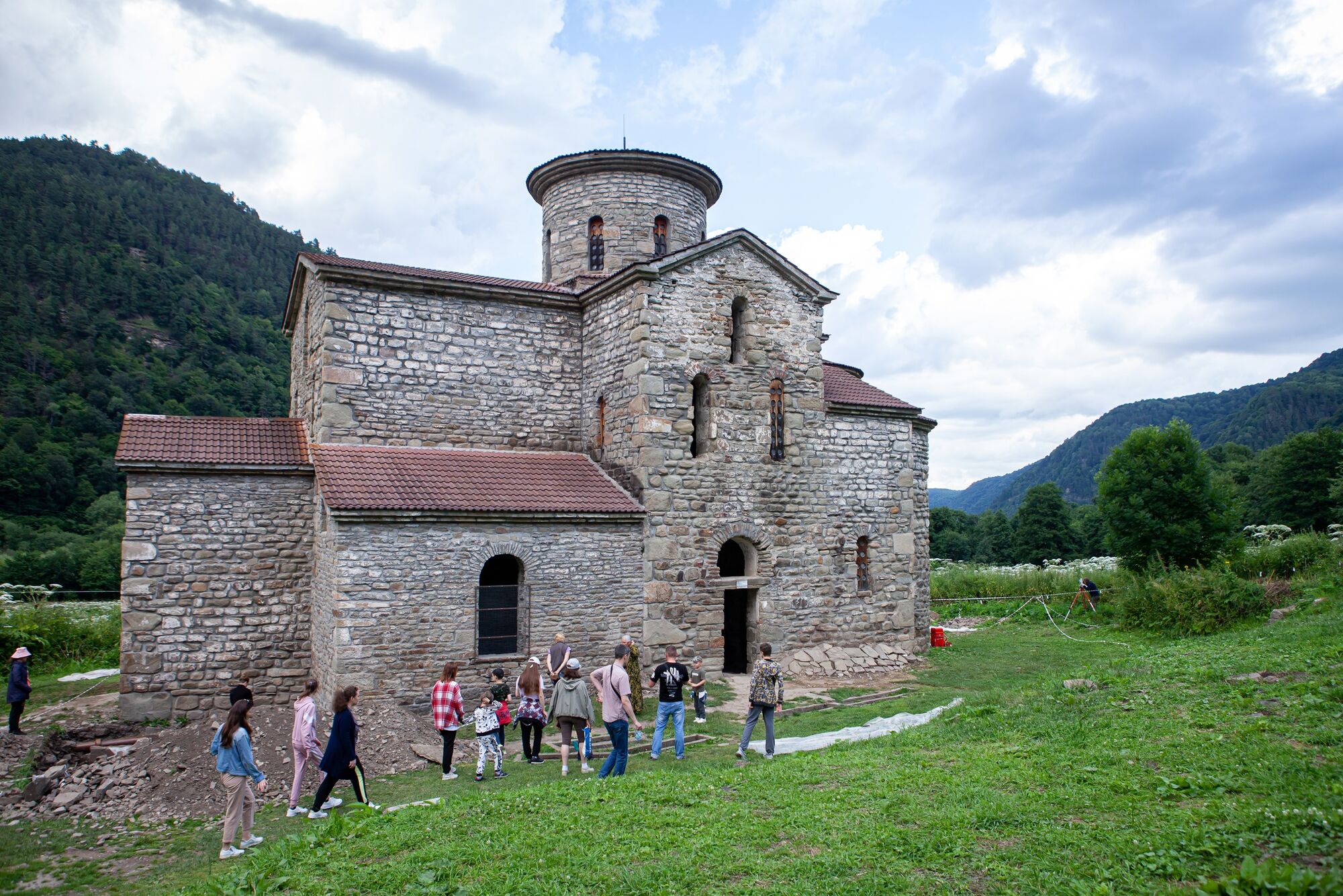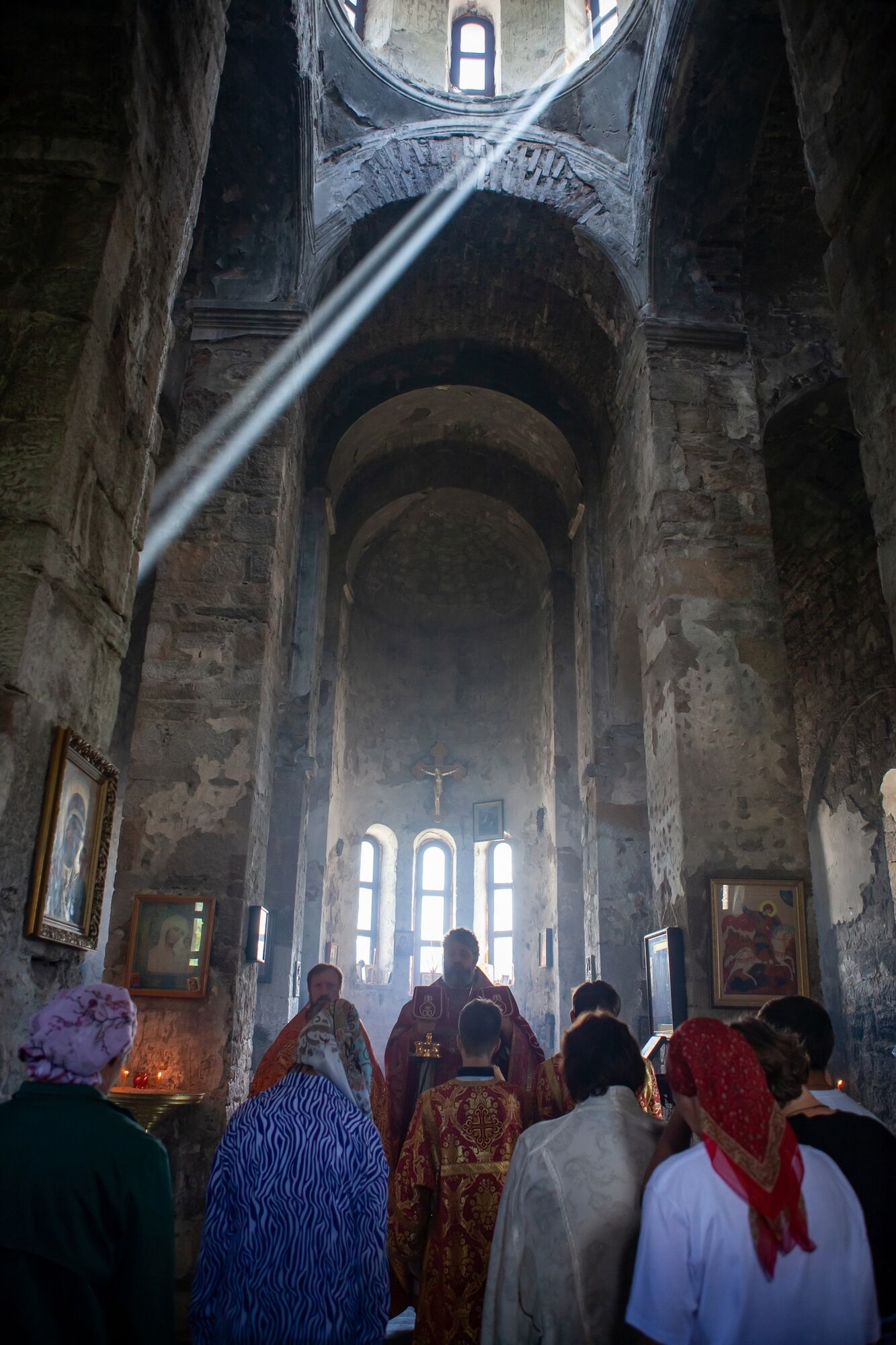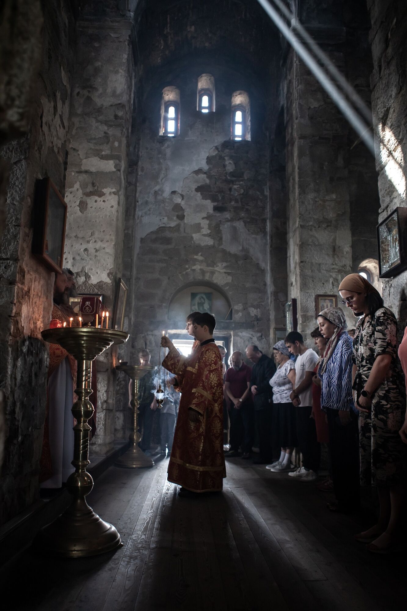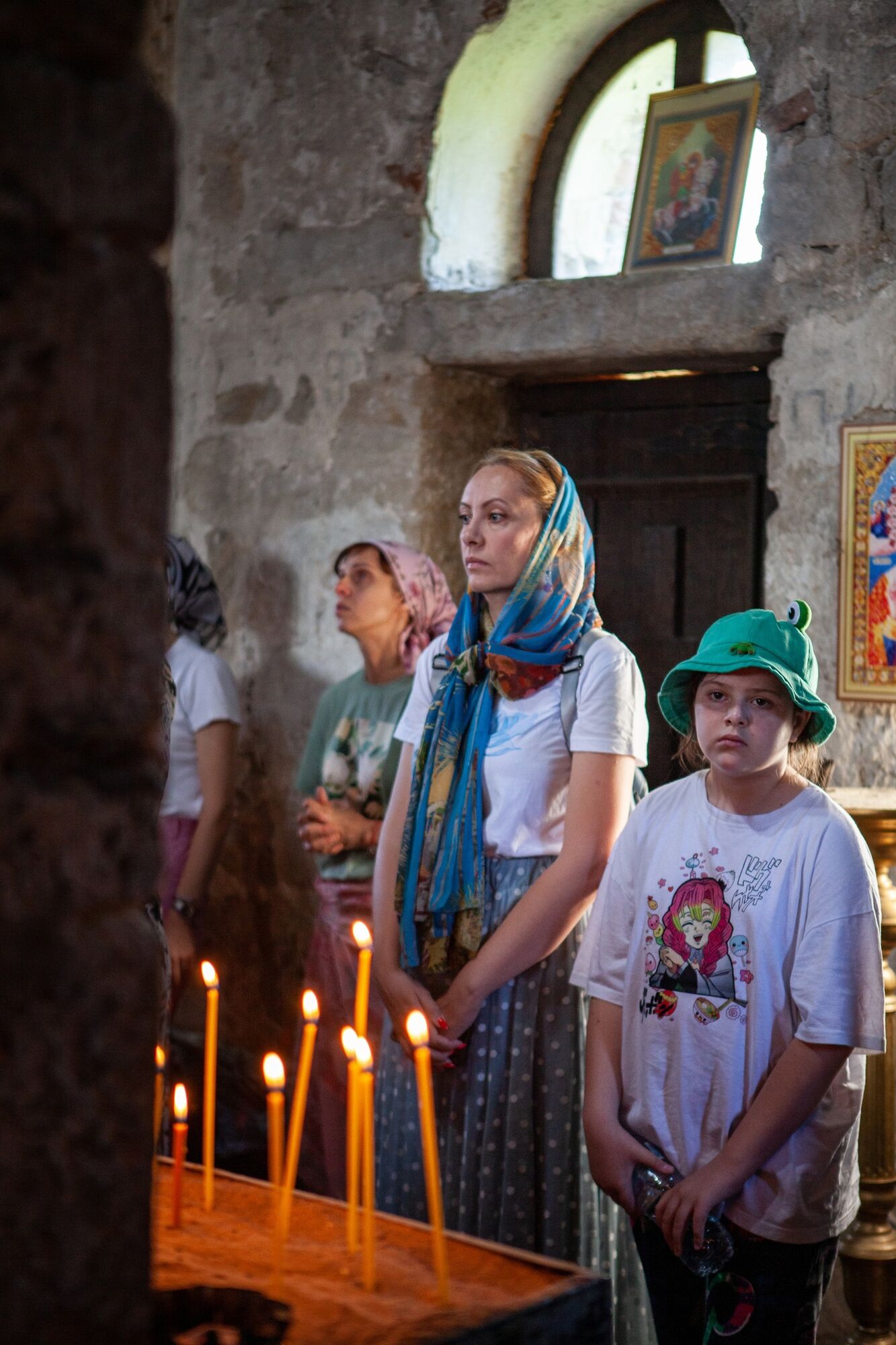 Центральным событием поездки стала Божественная литургия в Георгиевском (Шоанском) храме X века. Ранним утром в день памяти преподобного Сергия Радонежского и преподобномученицы великой княгини Елисаветы паломники отправились на гору Шоан у села Коста Хетагуров. Богослужение возглавил протоиерей Валерий Волощук в сослужении иерея Сергия Кропивницкого, песнопения литургии исполнил девичий хор «Русь» под управлением матушки Ксении Волощук. Счастье совместной молитвы в таком удивительном месте переполняло сердца всех паломников. Особое чувство единения вызывало то, что на момент начала богослужения мы были единственными молитвенниками в храме. Радовались мы вдохновленным лицам туристов, которые не ожидали оказаться на богослужении и слышать проникновенные слова молитв и песнопений.
