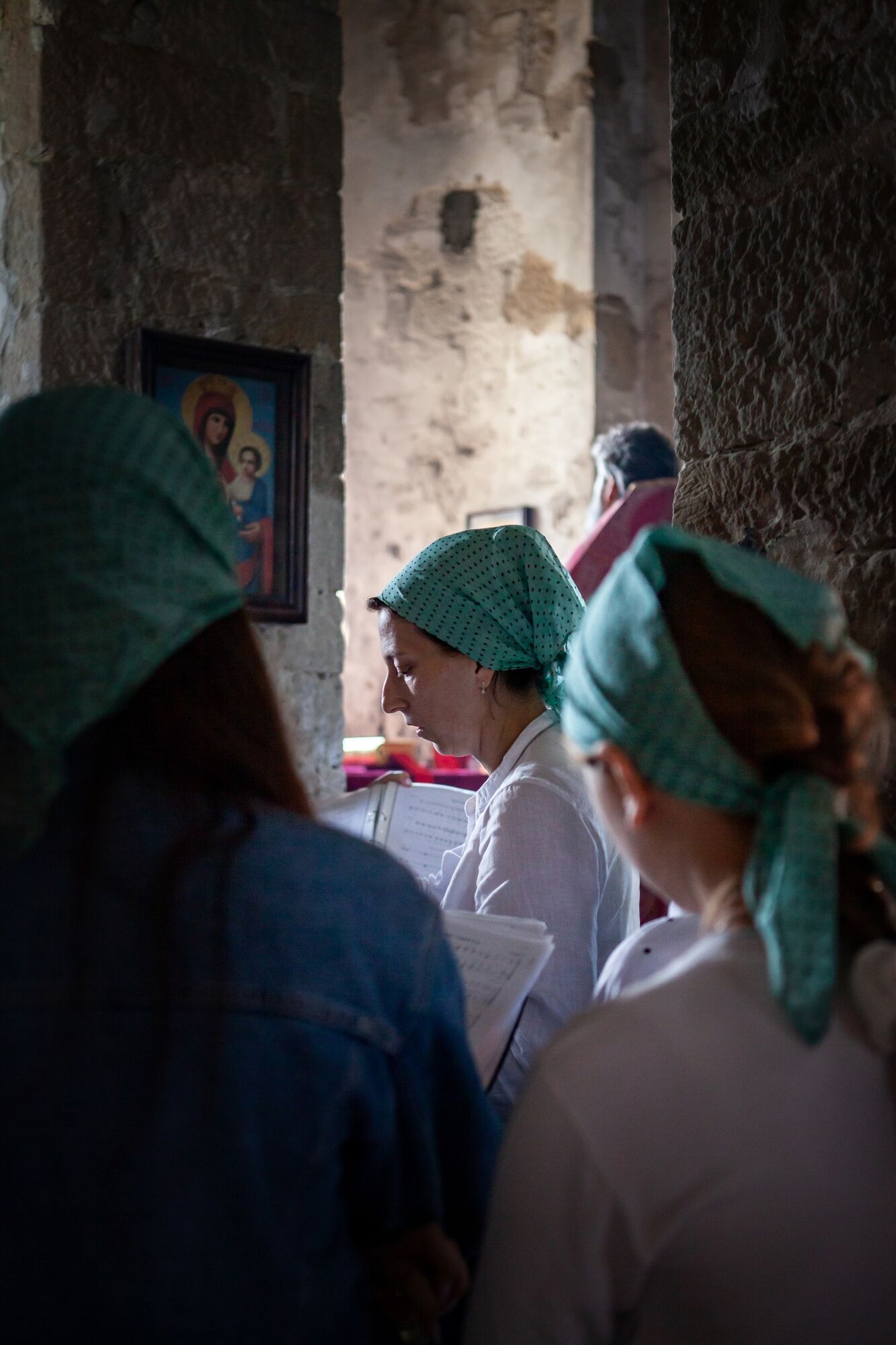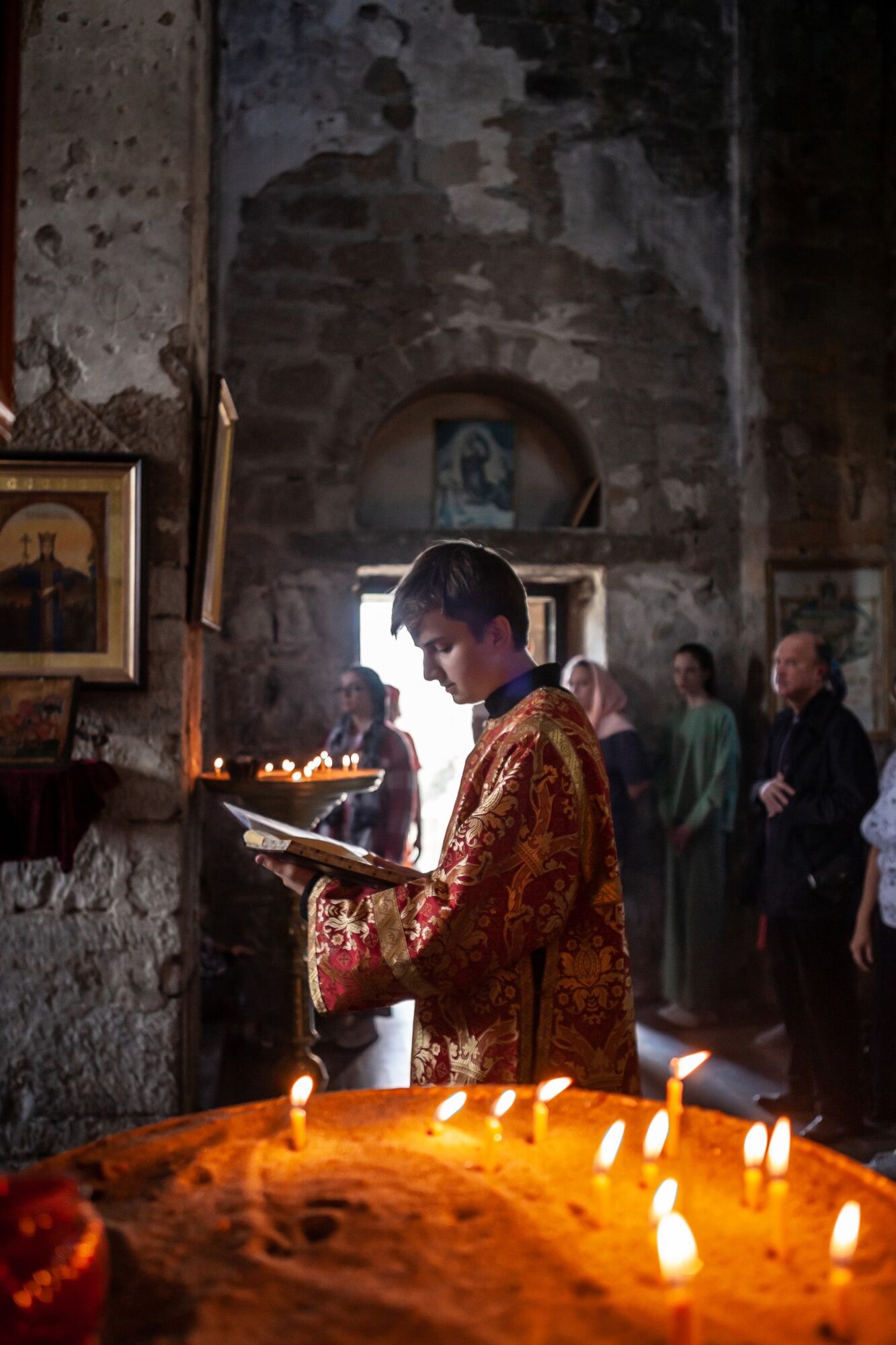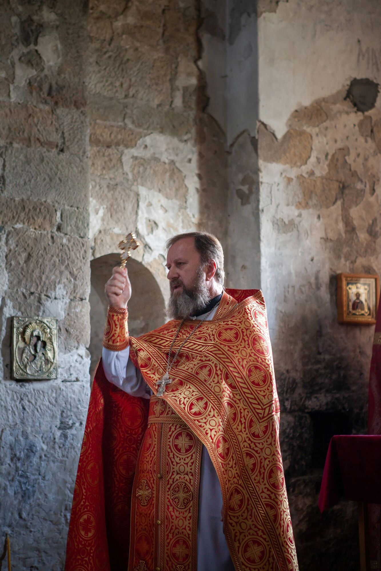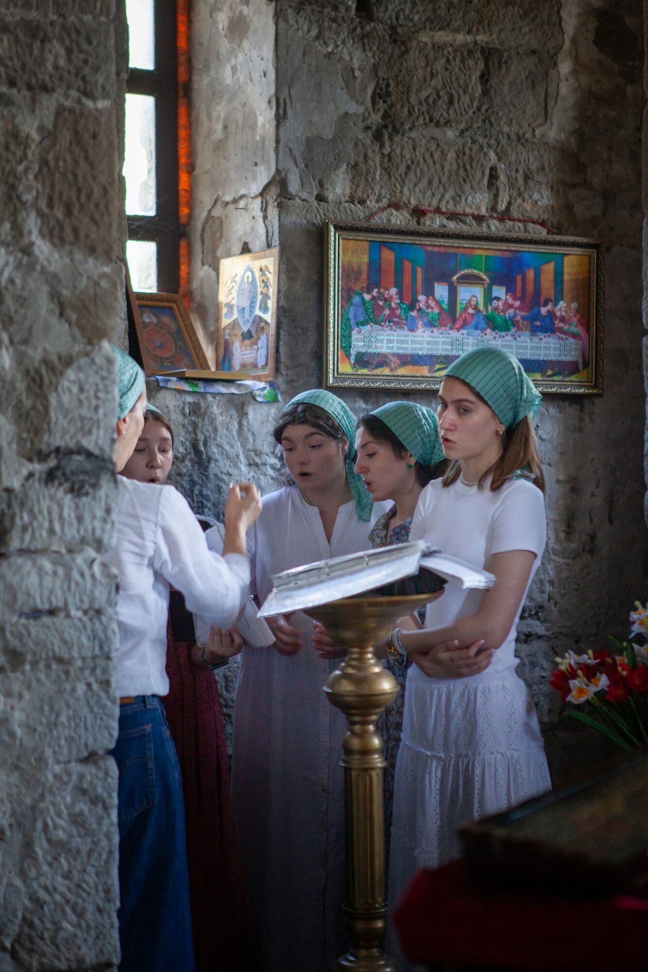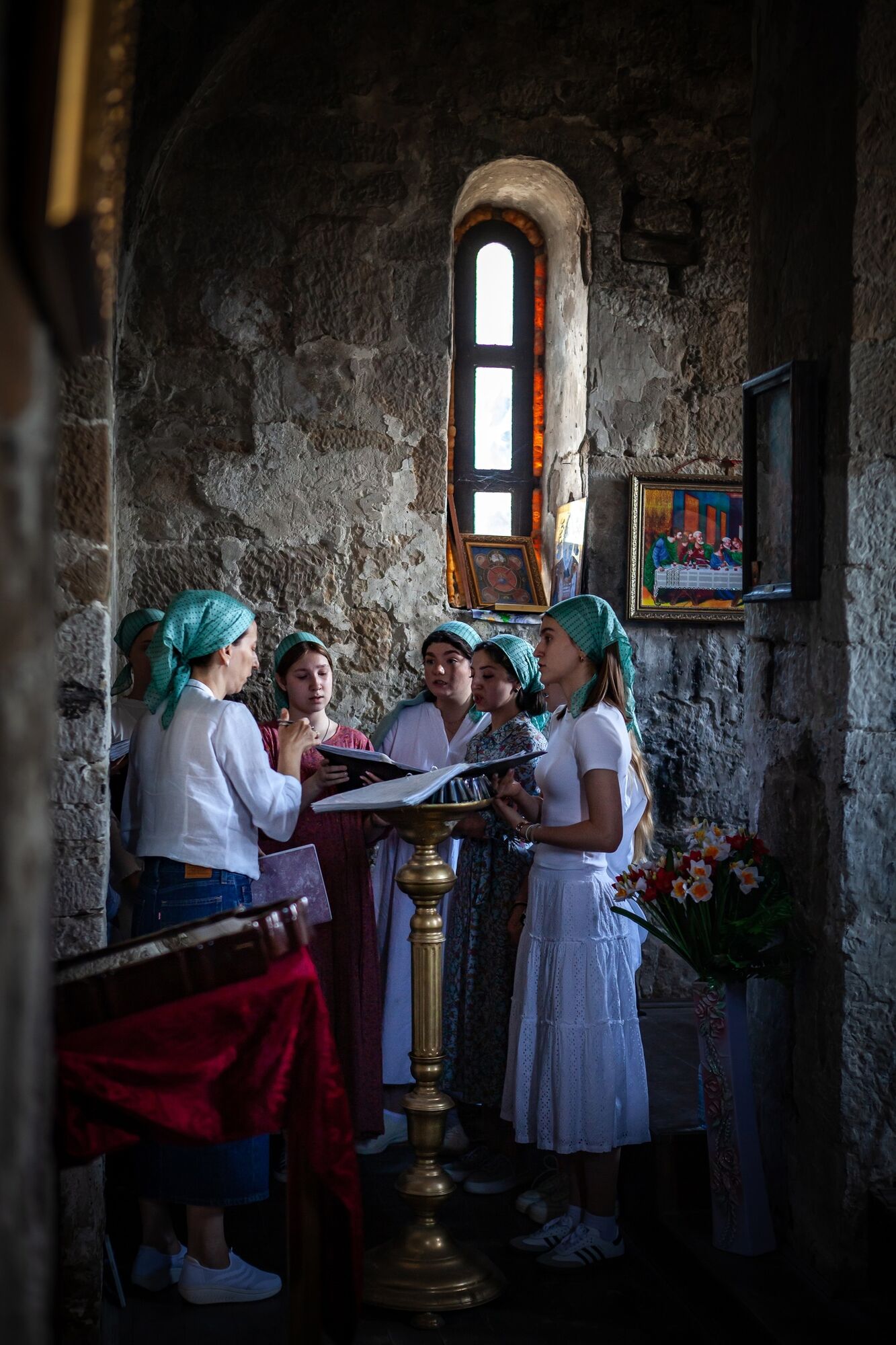 Центральным событием поездки стала Божественная литургия в Георгиевском (Шоанском) храме X века. Ранним утром в день памяти преподобного Сергия Радонежского и преподобномученицы великой княгини Елисаветы паломники отправились на гору Шоан у села Коста Хетагуров. Богослужение возглавил протоиерей Валерий Волощук в сослужении иерея Сергия Кропивницкого, песнопения литургии исполнил девичий хор «Русь» под управлением матушки Ксении Волощук. Счастье совместной молитвы в таком удивительном месте переполняло сердца всех паломников. Особое чувство единения вызывало то, что на момент начала богослужения мы были единственными молитвенниками в храме. Радовались мы вдохновленным лицам туристов, которые не ожидали оказаться на богослужении и слышать проникновенные слова молитв и песнопений.