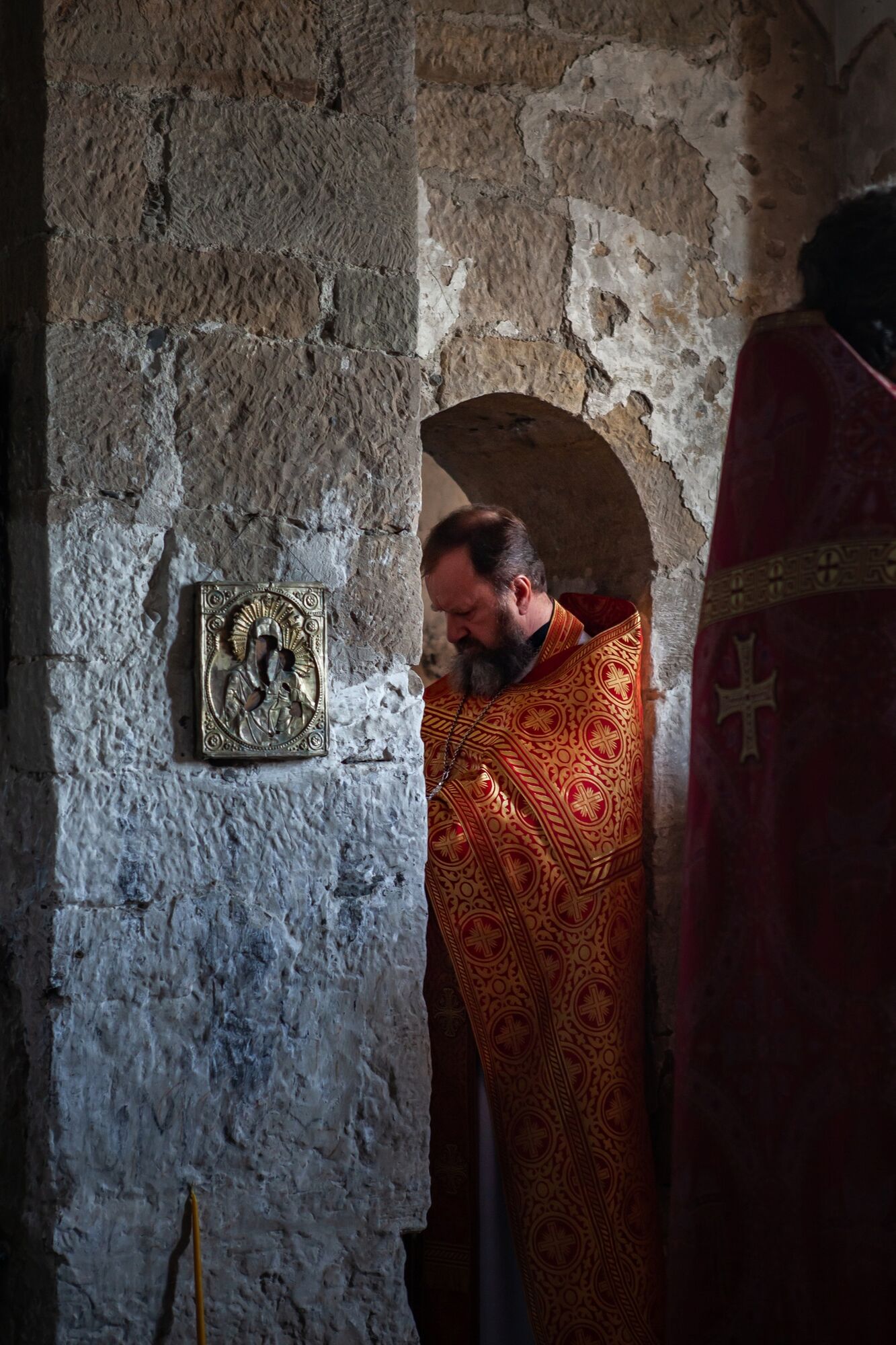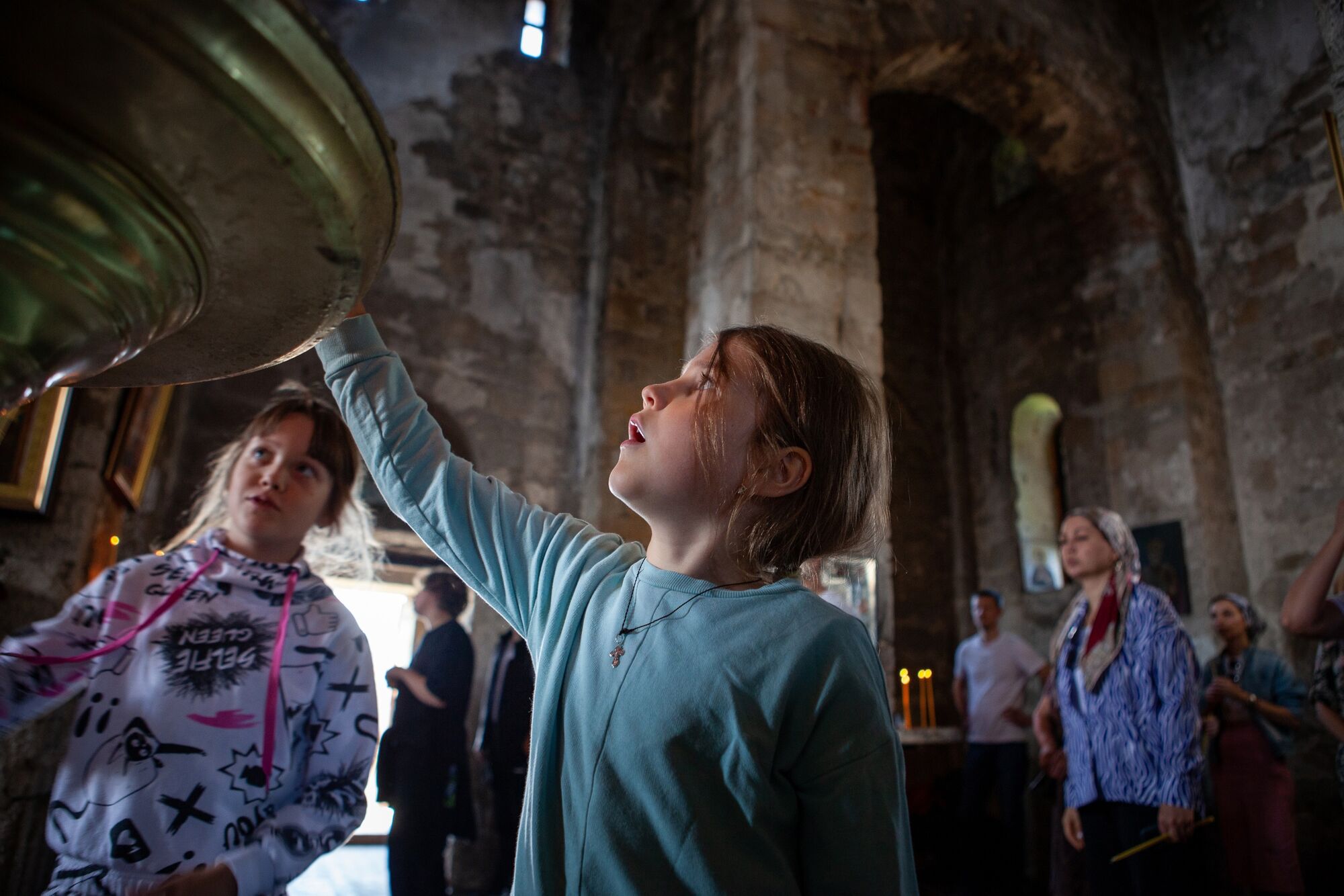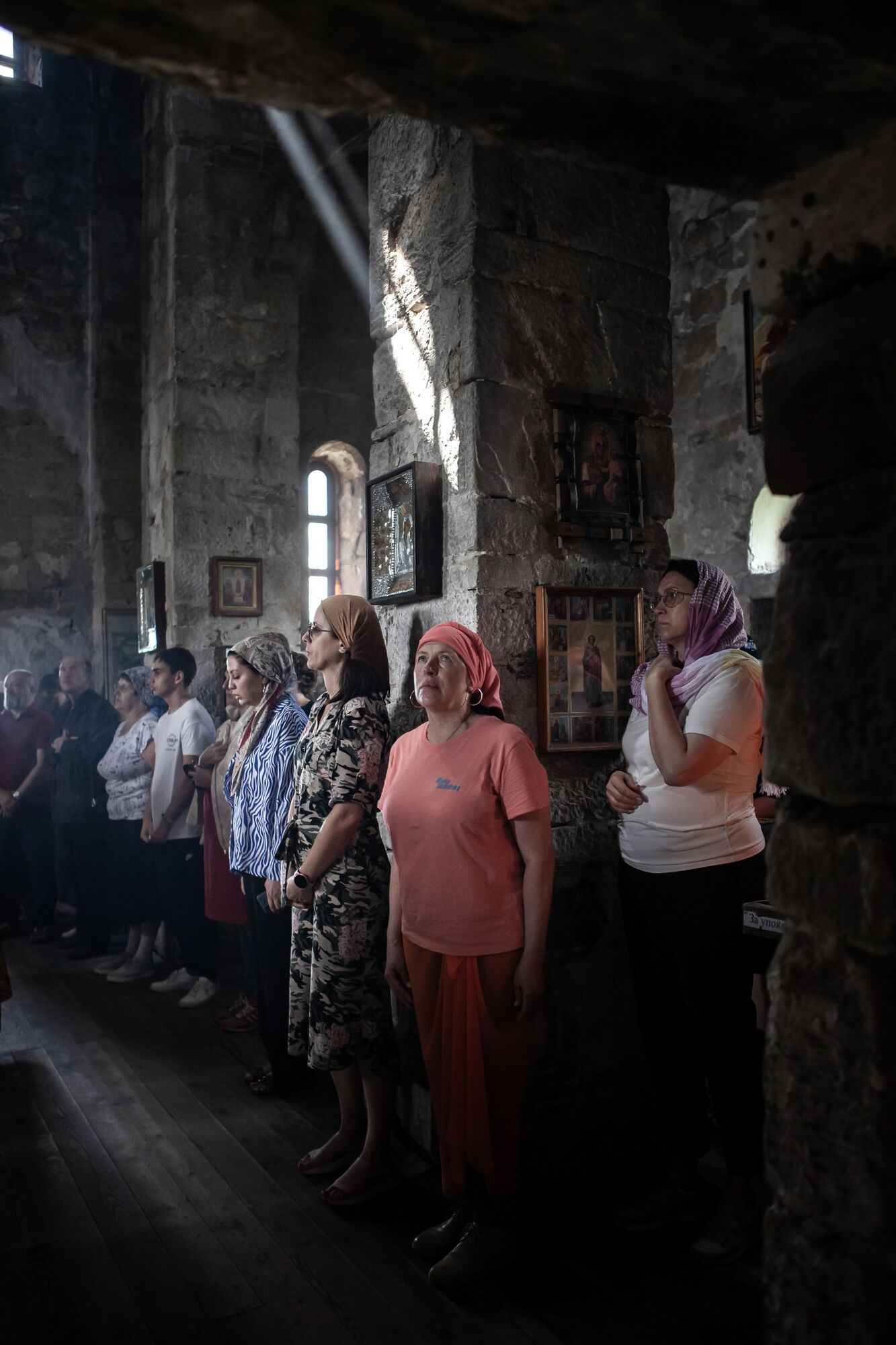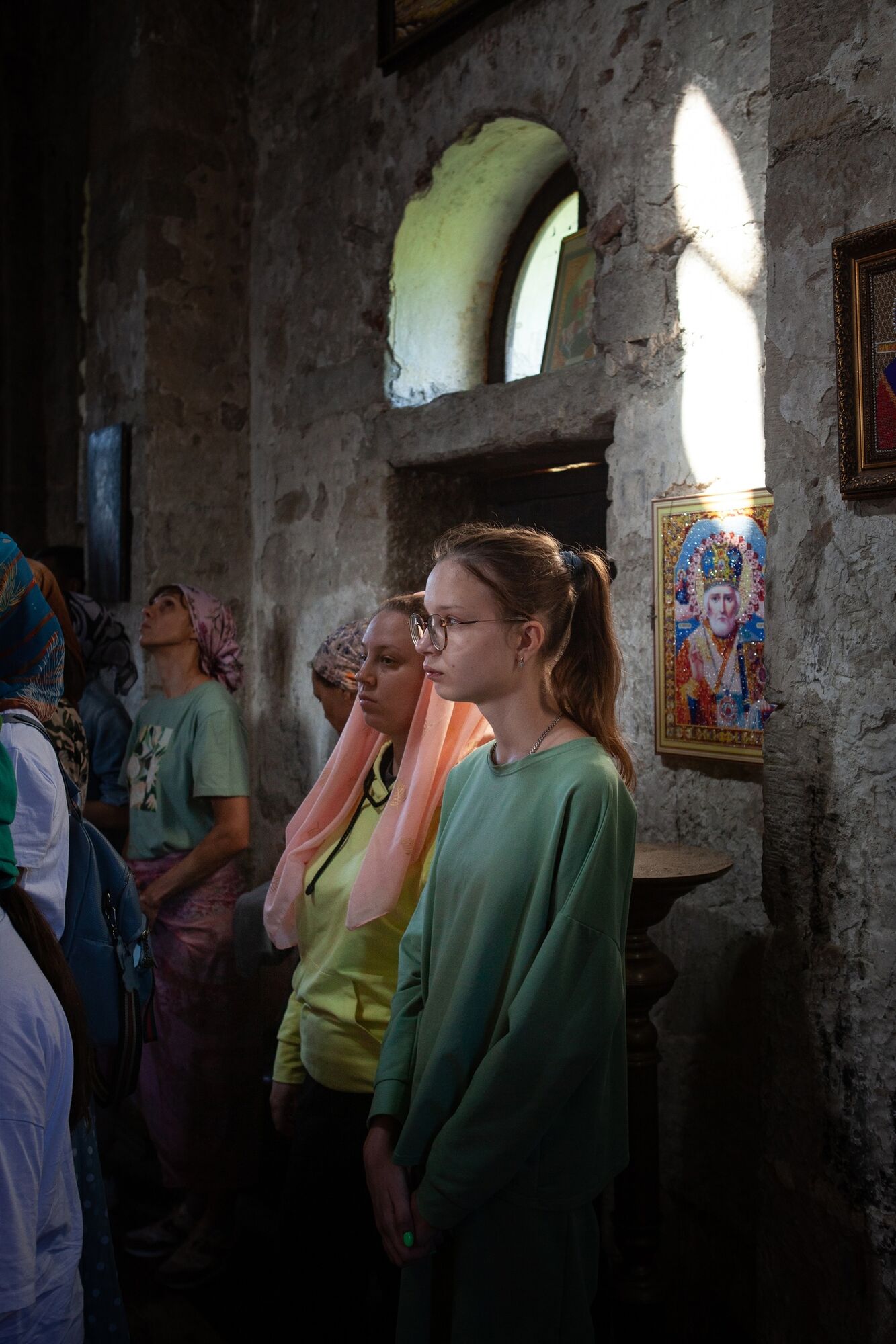 Центральным событием поездки стала Божественная литургия в Георгиевском (Шоанском) храме X века. Ранним утром в день памяти преподобного Сергия Радонежского и преподобномученицы великой княгини Елисаветы паломники отправились на гору Шоан у села Коста Хетагуров. Богослужение возглавил протоиерей Валерий Волощук в сослужении иерея Сергия Кропивницкого, песнопения литургии исполнил девичий хор «Русь» под управлением матушки Ксении Волощук. Счастье совместной молитвы в таком удивительном месте переполняло сердца всех паломников. Особое чувство единения вызывало то, что на момент начала богослужения мы были единственными молитвенниками в храме. Радовались мы вдохновленным лицам туристов, которые не ожидали оказаться на богослужении и слышать проникновенные слова молитв и песнопений.