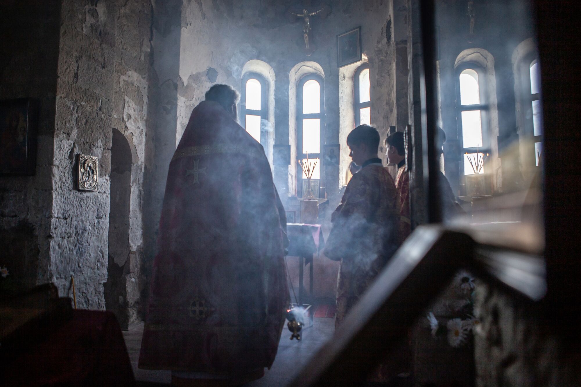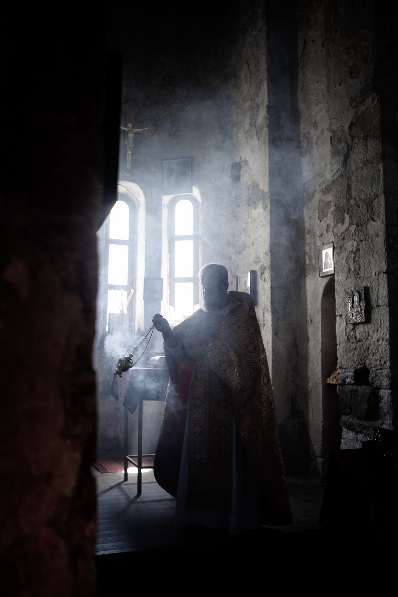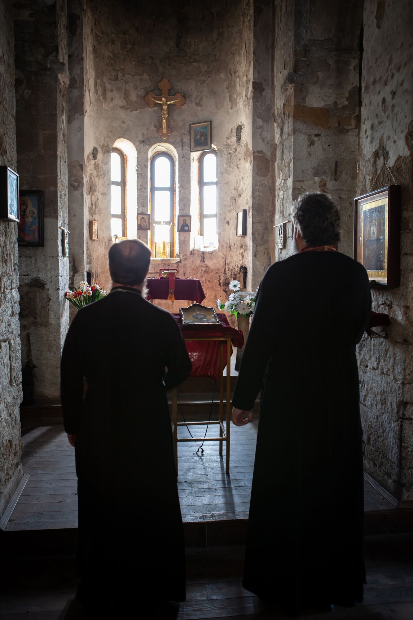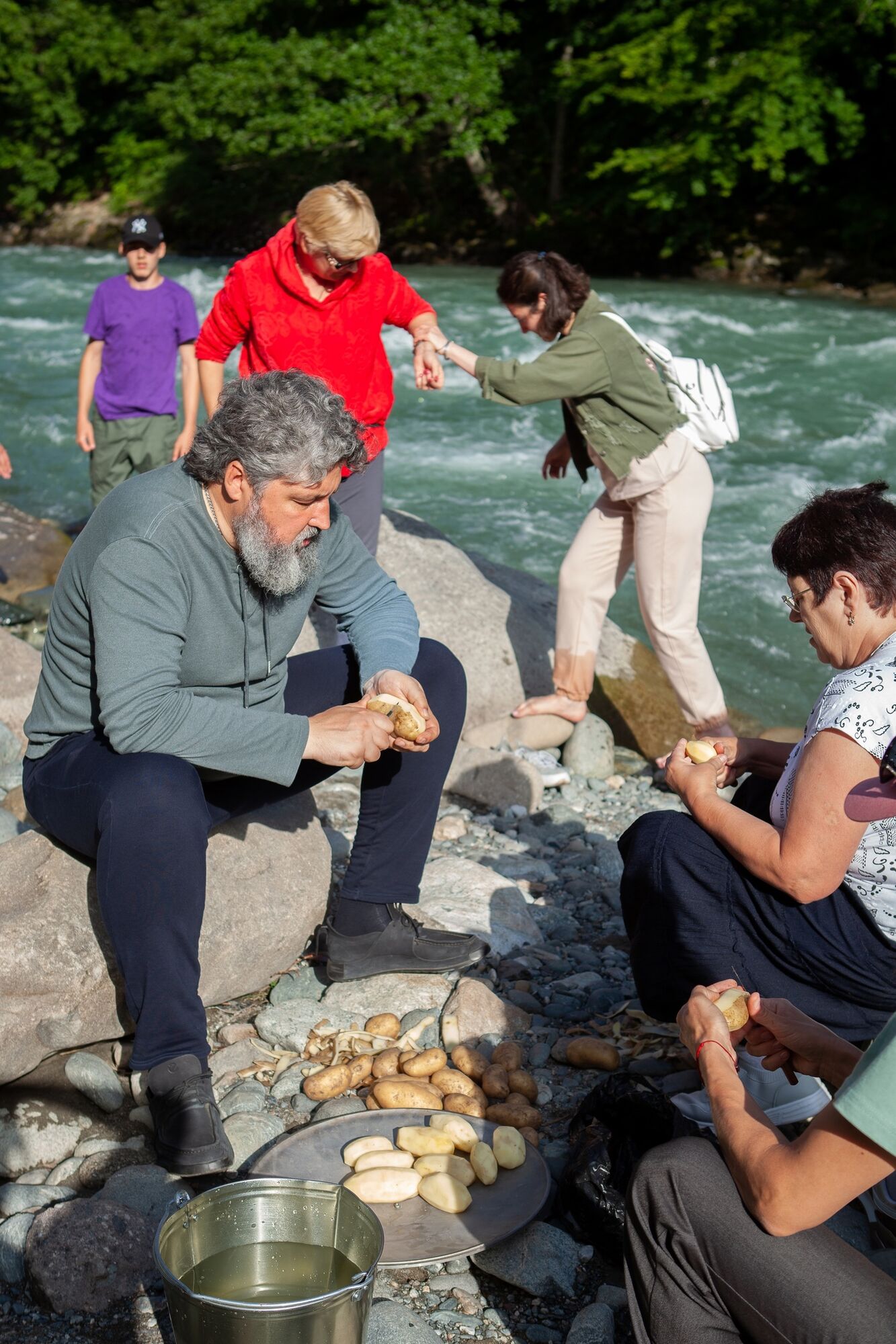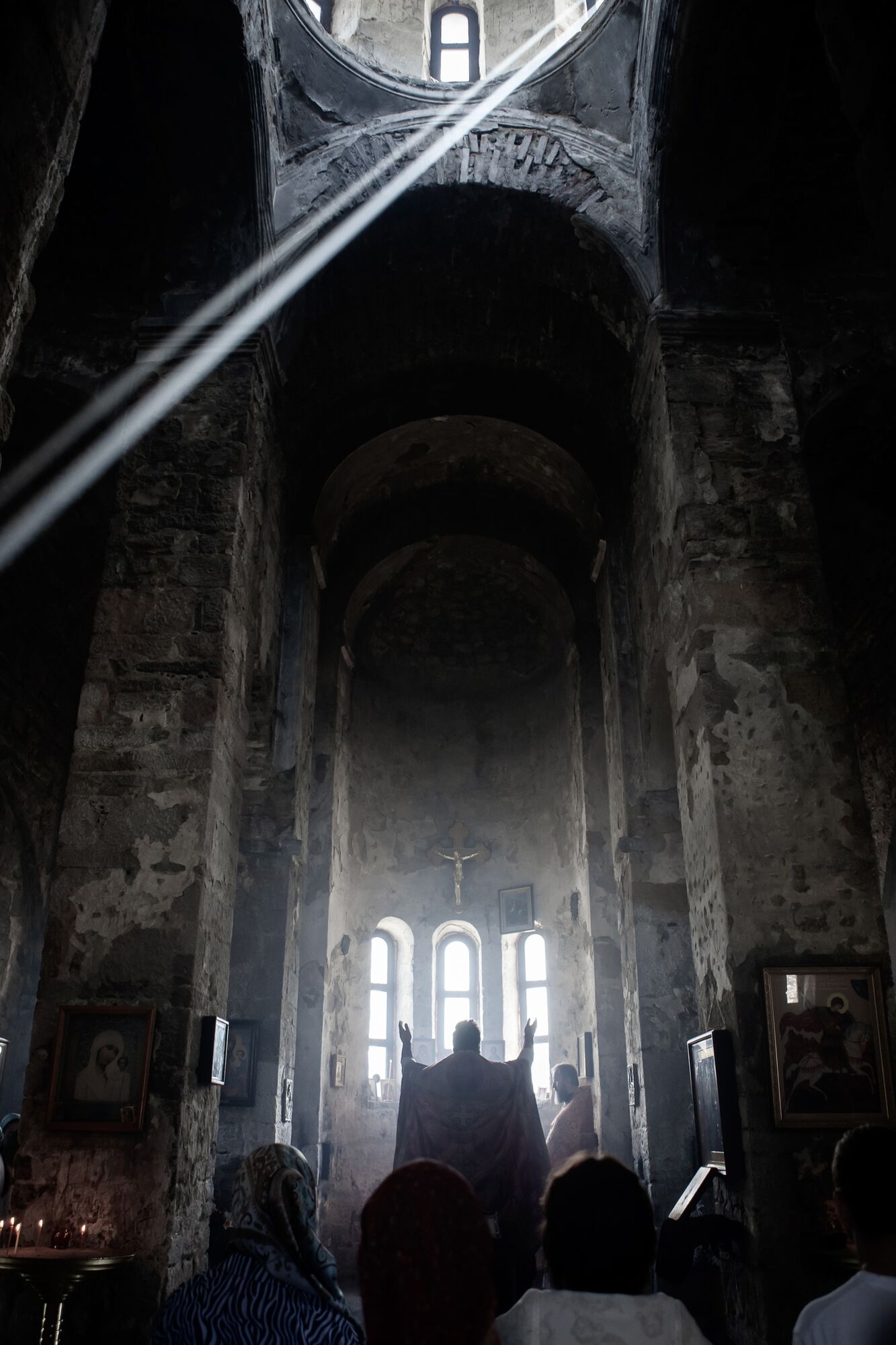 Центральным событием поездки стала Божественная литургия в Георгиевском (Шоанском) храме X века. Ранним утром в день памяти преподобного Сергия Радонежского и преподобномученицы великой княгини Елисаветы паломники отправились на гору Шоан у села Коста Хетагуров. Богослужение возглавил протоиерей Валерий Волощук в сослужении иерея Сергия Кропивницкого, песнопения литургии исполнил девичий хор «Русь» под управлением матушки Ксении Волощук. Счастье совместной молитвы в таком удивительном месте переполняло сердца всех паломников. Особое чувство единения вызывало то, что на момент начала богослужения мы были единственными молитвенниками в храме. Радовались мы вдохновленным лицам туристов, которые не ожидали оказаться на богослужении и слышать проникновенные слова молитв и песнопений.