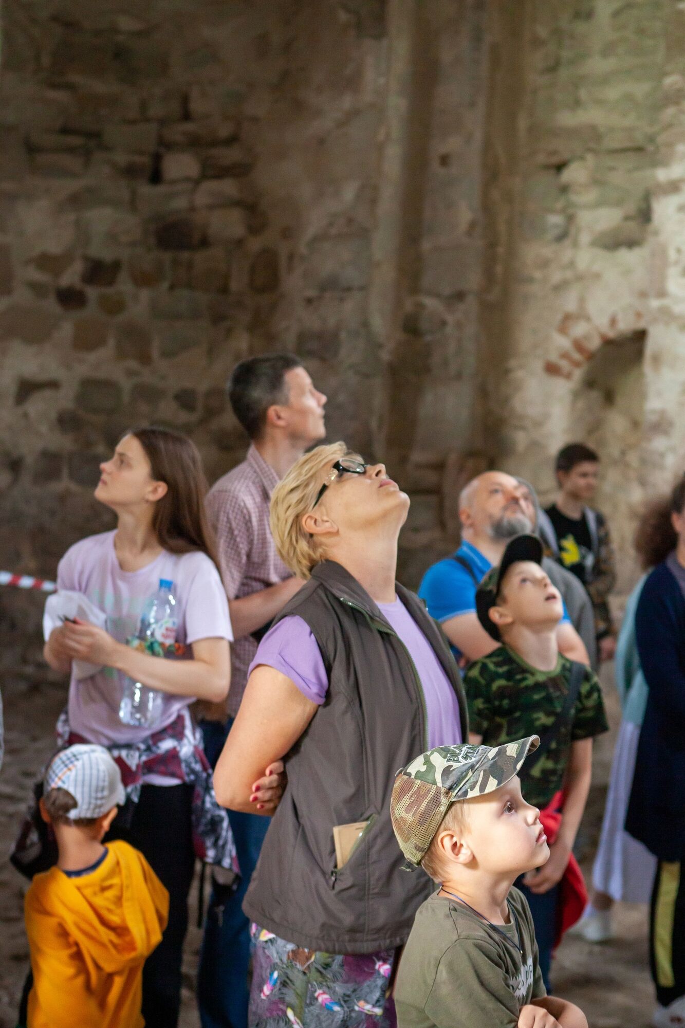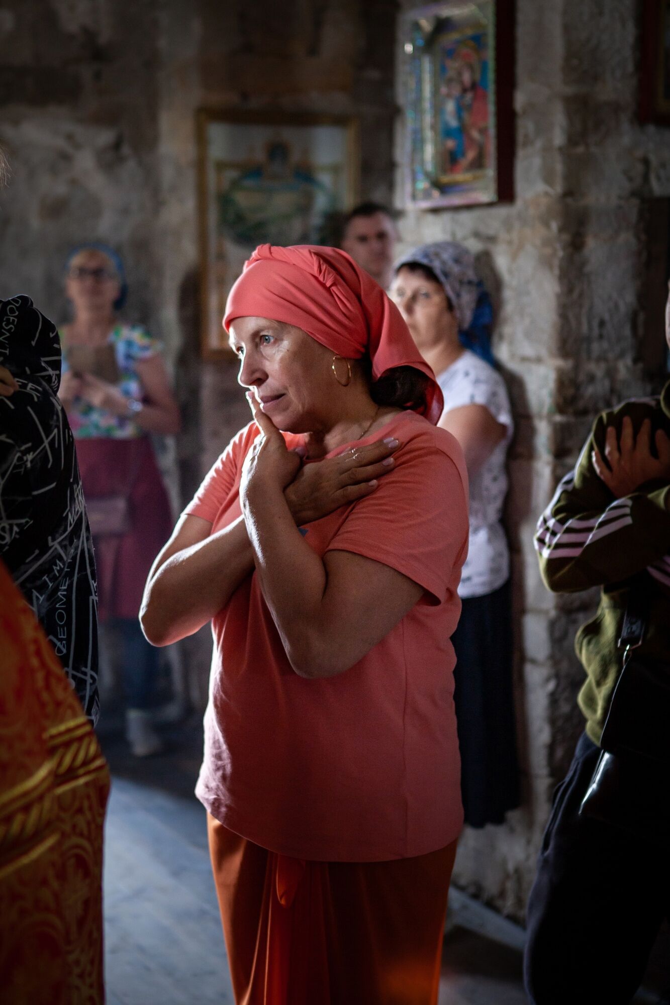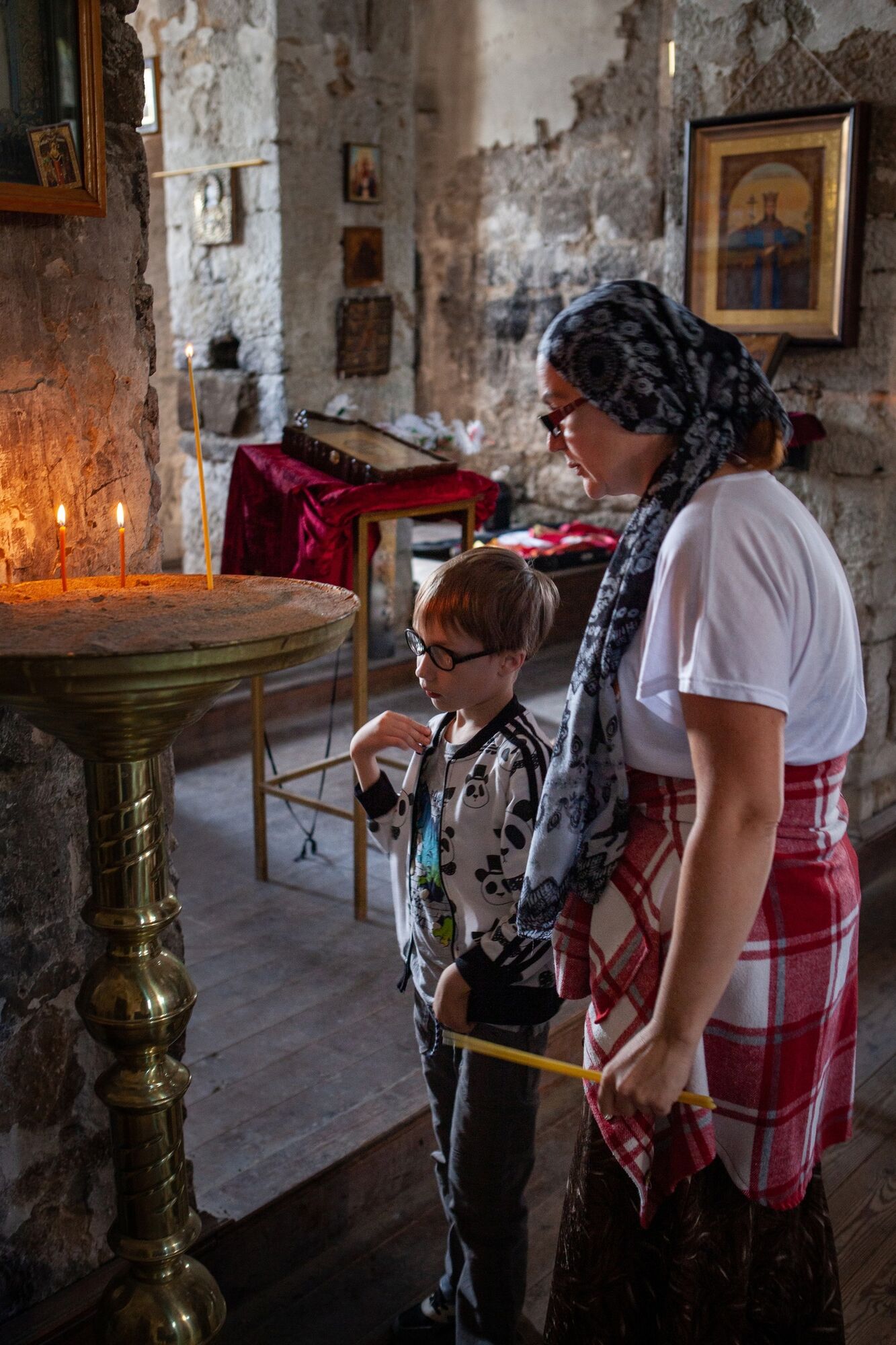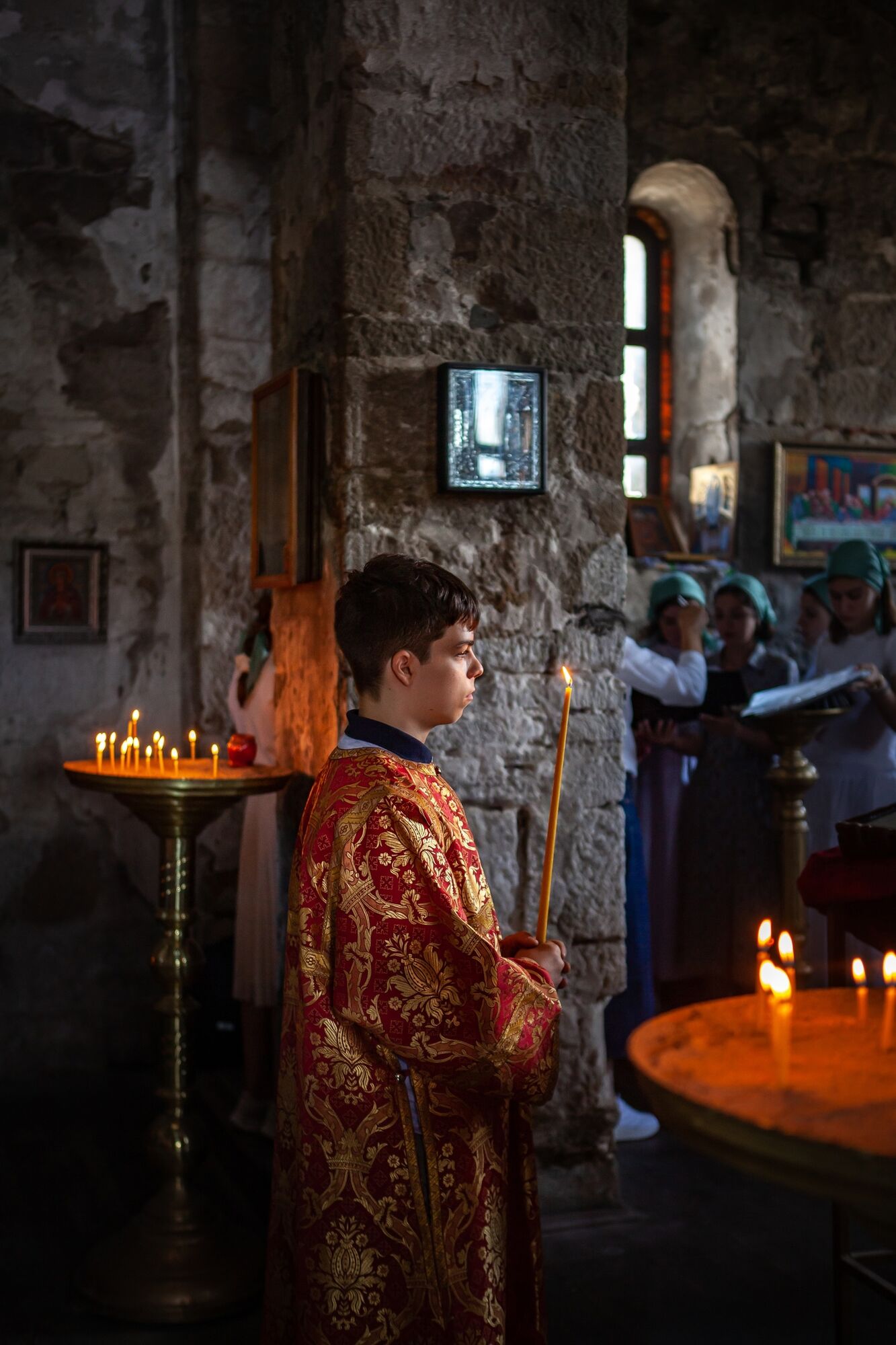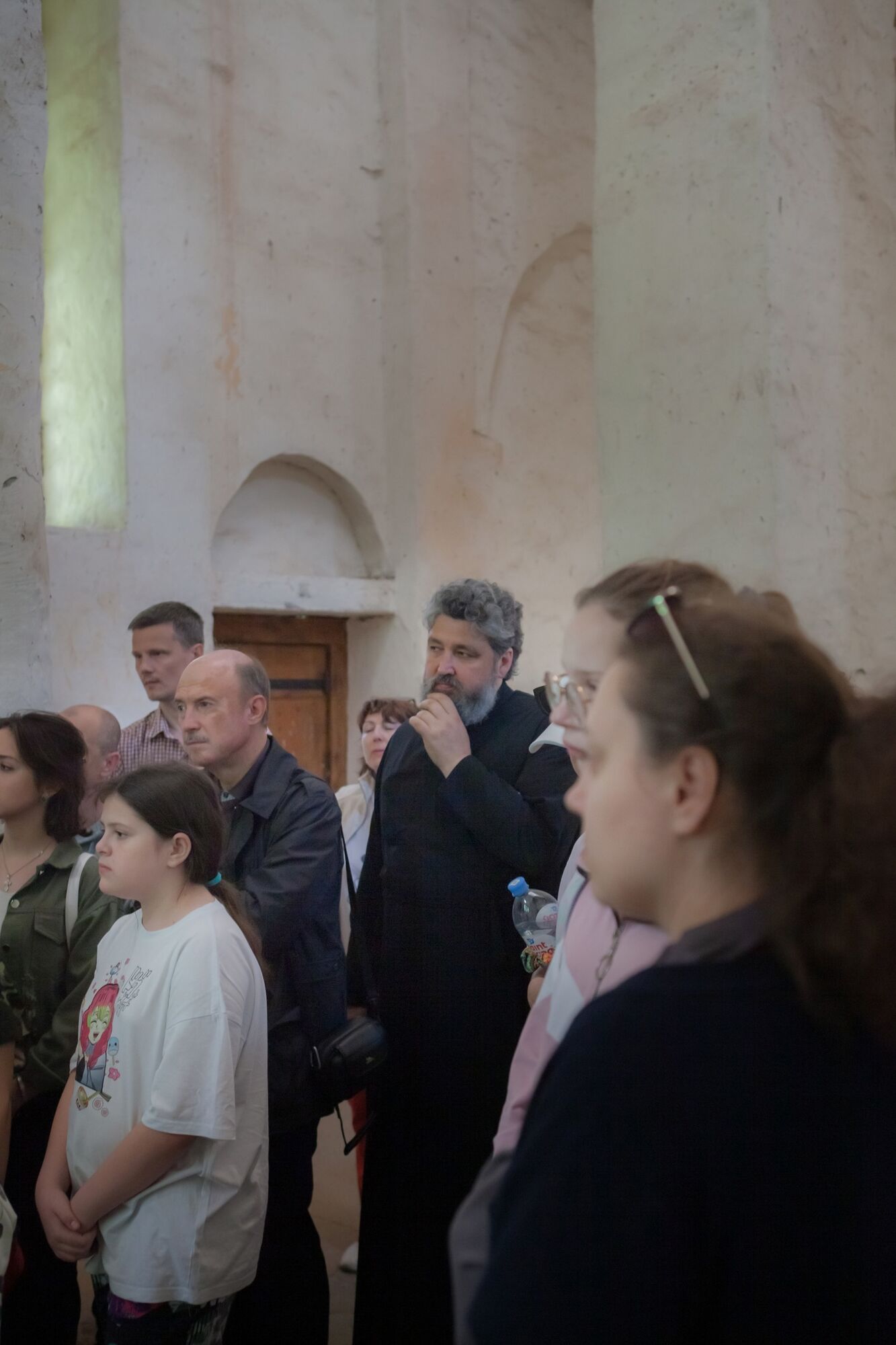 Следующим мы посетили средний Троицкий храм. Там сейчас работают археологи, а в праздник Святой Троицы божественную литургию возглавляет архиерей при участии многочисленных паломников.
