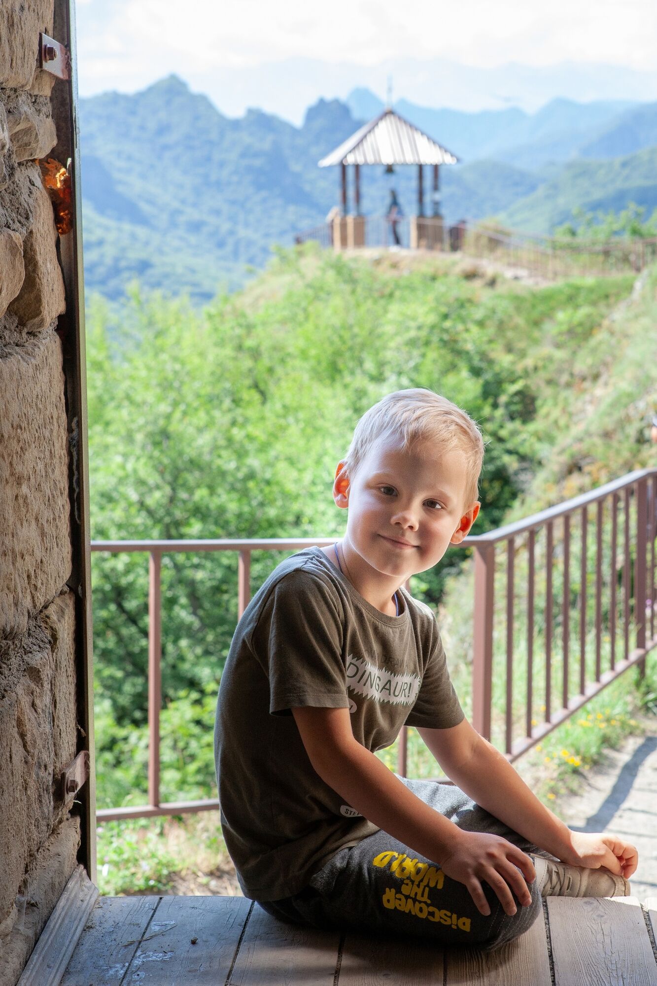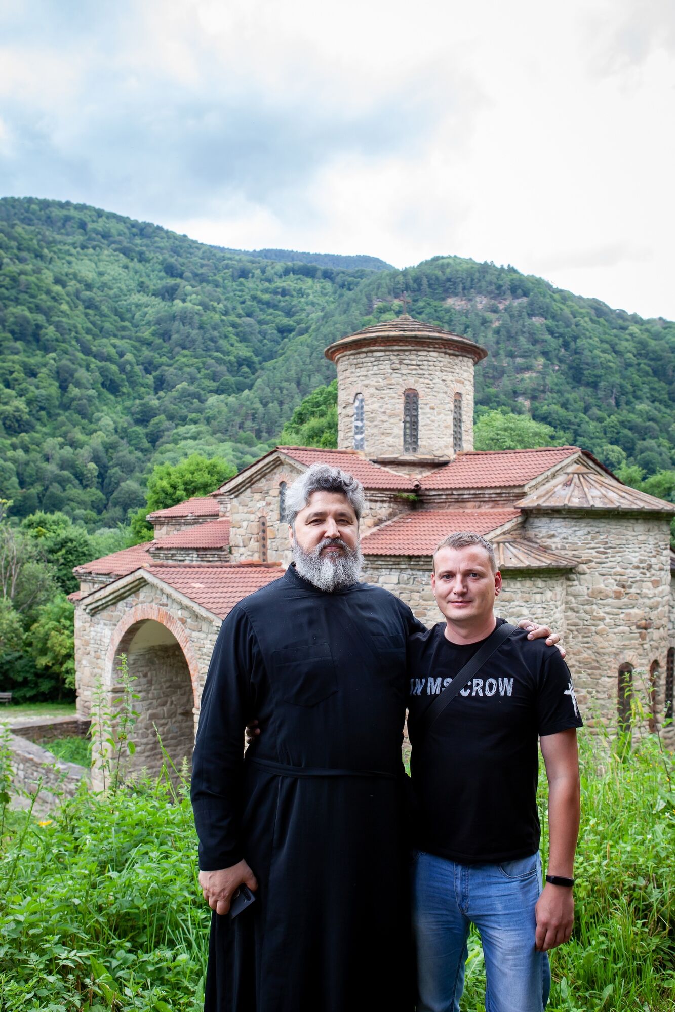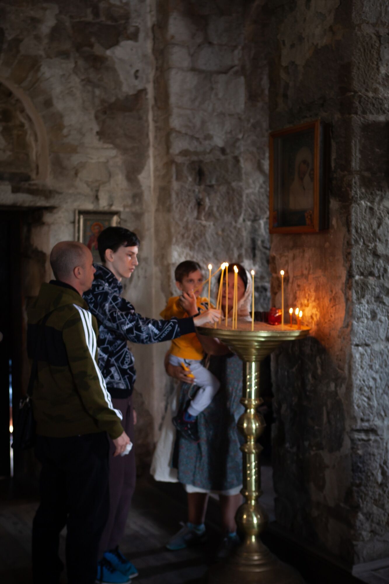По окончании богослужения мы поздравили с днем тезоименитства отца Сергия и нашего повара Сергея Чепурко, а также с пятилетием самого маленького паломника Вячеслава. Провожали нас с горы Шоан орлы, которые парили над храмом и, казалось, тоже были рады встрече.