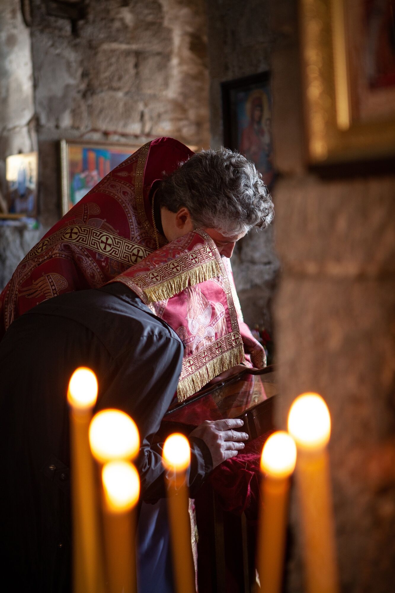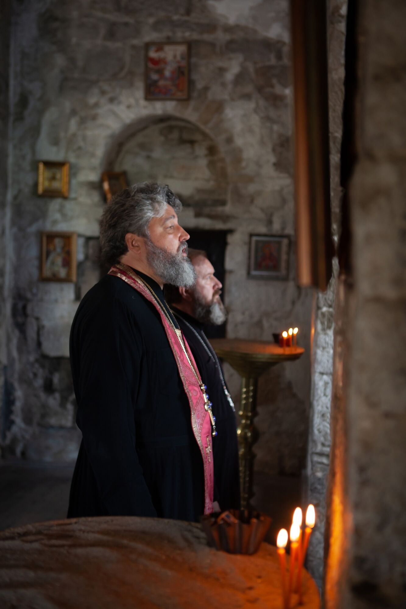 Перед тем как отправиться в обратный путь, под пение Иисусовой молитвы мы поднялись на один склонов хребта Мыцешта и помолились о нашей приходской общине у наскального лика Христа Спасителя.