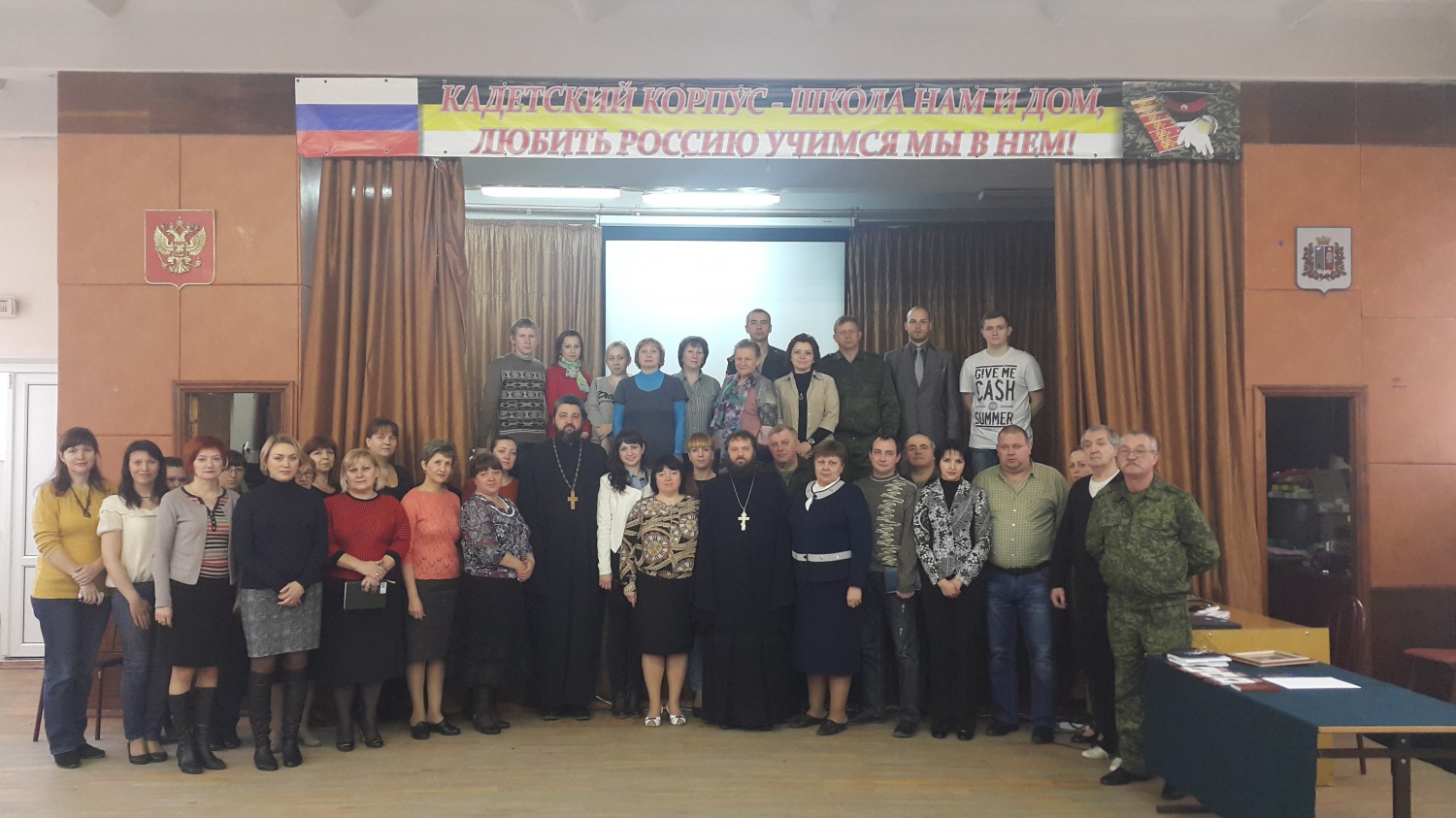 24 марта 2016 года во Втором Донском Императора Николая II Кадетском корпусе прошла встреча духовенства прихода Святого Георгия Победоносца с преподавателями, воспитателями и офицерами. О великом посте рассказывали настоятель храма протоиерей Валерий Волощук и иерей Александр Орешин.