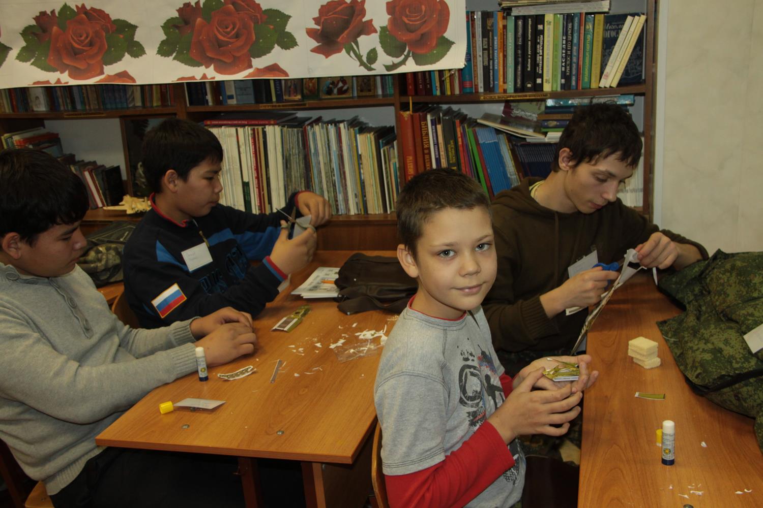 Преподаватель рассказал детям о принципах изготовления моделей военной техники и стрелкового вооружения современной армии и времен Великой Отечественной Войны. В ходе проведения занятия вместе с воспитанниками была начата работа по изготовлению модели танка Т-34, а некоторые учащиеся принесли на занятие уже собранные ими дома модели современной военной техники (самолета СУ-47 «Беркут»), за что были награждены сладким призом в виде конфет и печенья, которыми они с радостью поделились со своими товарищами.
