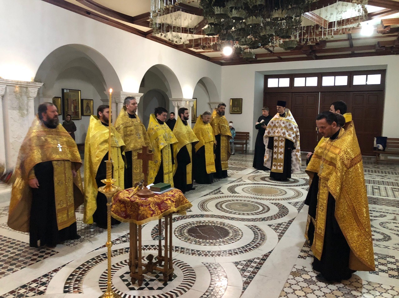 24 ноября 2019 года в нашем храме 40-ка Севастийских мучеников состоялся благодарственный молебен Господу Иисусу Христу по случаю окончания реставрации кафедрального собора Рождества Пресвятой Богородицы. Возглавил молебен благочинный Западного округа иерей Александр Литвиненко, а сослужили ему клирики благочиния, в числе которых были настоятель нашего прихода протоиерей Валерий Волощук и клирики иерей Роман Зимин и иерей Сергий Кропивницкий.