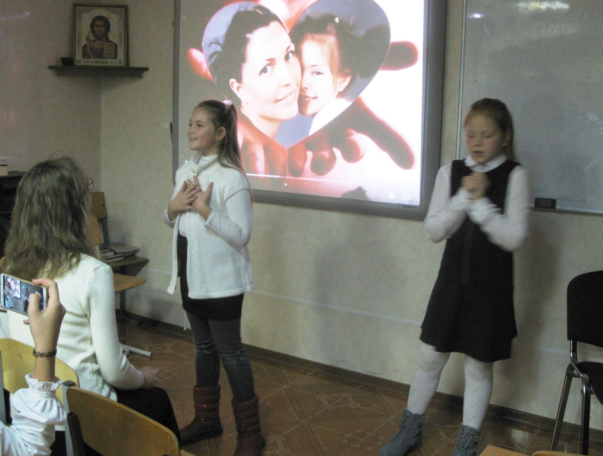 Конечно и дети не остались в стороне и подготовили своим мамам в подарок стихи, песни, а самая младшая группа нашей воскресной школы нарисовала портреты своих мам.