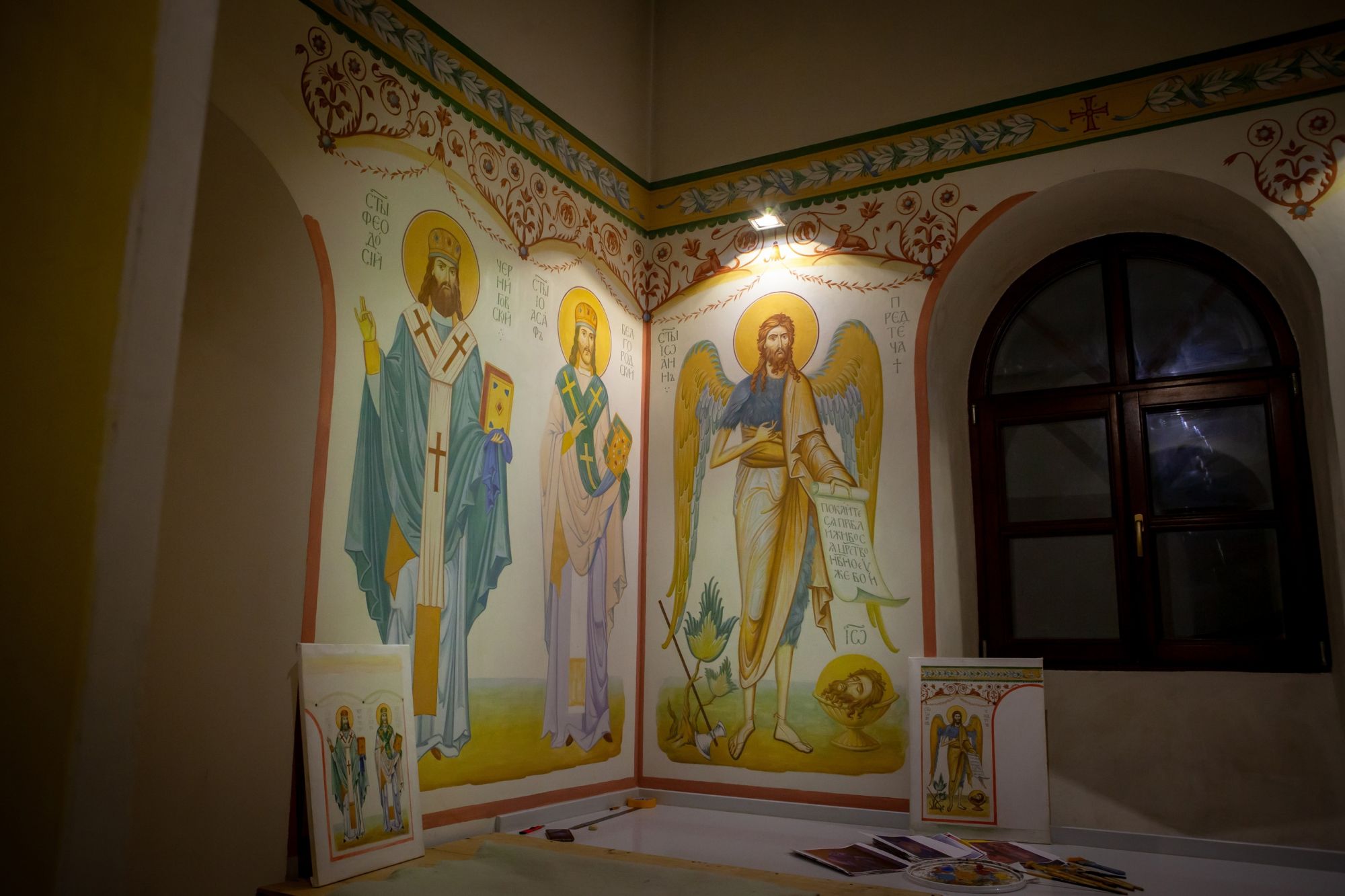 Роспись диаконника* в алтаре криптового храма Сорока мучеников Севастийских. Уже готов образ святого Иоанна Предтечи, в процессе образы святителей Феодосия Черниговского, Иоасафа Белгородского, Власия Севастийского.