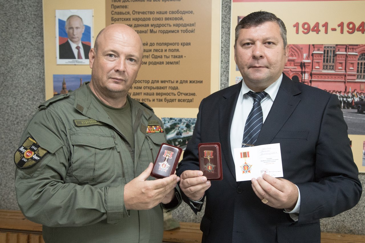 24 сентября 2016 года в Доме Офицеров гарнизона Южного военного округа представителей Ростовского Духовно-Патриотического центра святого Георгия Победоносца - руководителей Поискового Объединения «Миус-Фронт» Владимира Ивановича Афанасенко и Андрея Юрьевича Кудрякова наградили Орденом Доблести. Также среди награждённых ростовчан был наш товарищ, ветеран Российской Армии, десантник Николай Александрович Щербина. Вручал награды ветеран спецназа, разведки генерал-майор Владимир Николаевич Чернобылов. Среди собравшихся на награждение были ветераны Великой Отечественной Войны, а также ветераны Вооруженных Сил Российской Федерации.