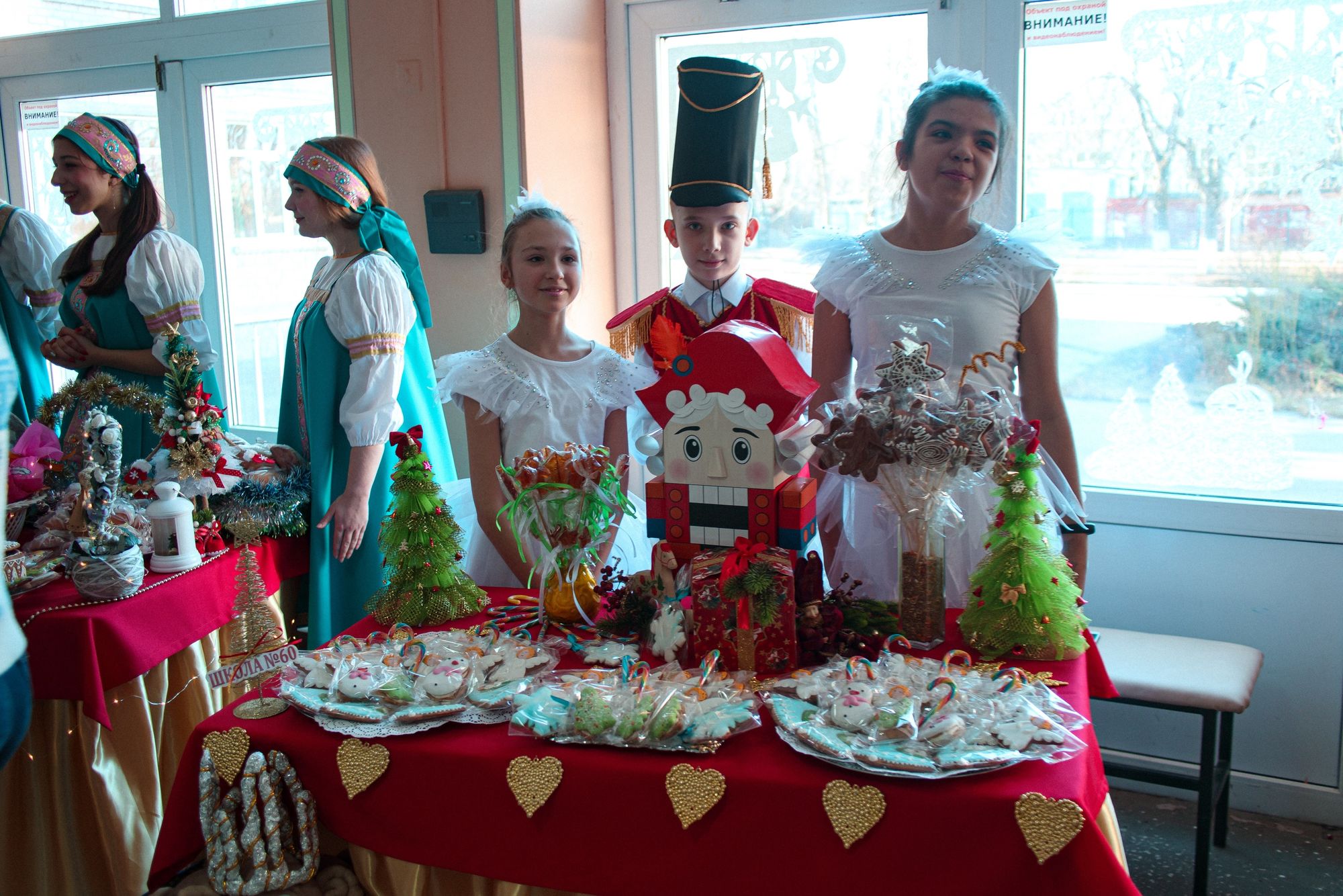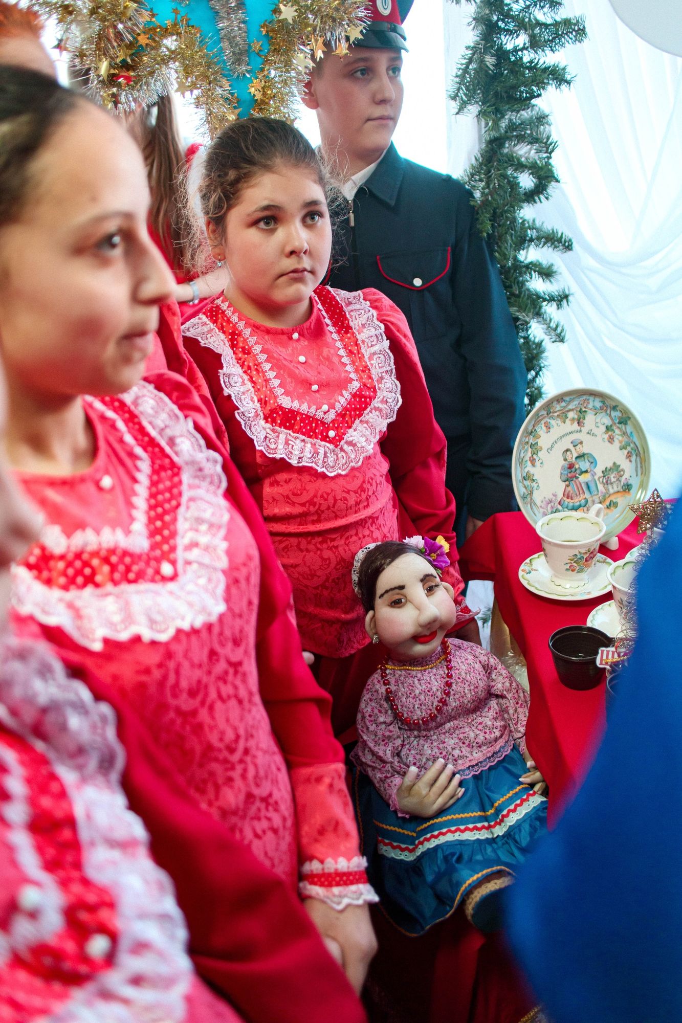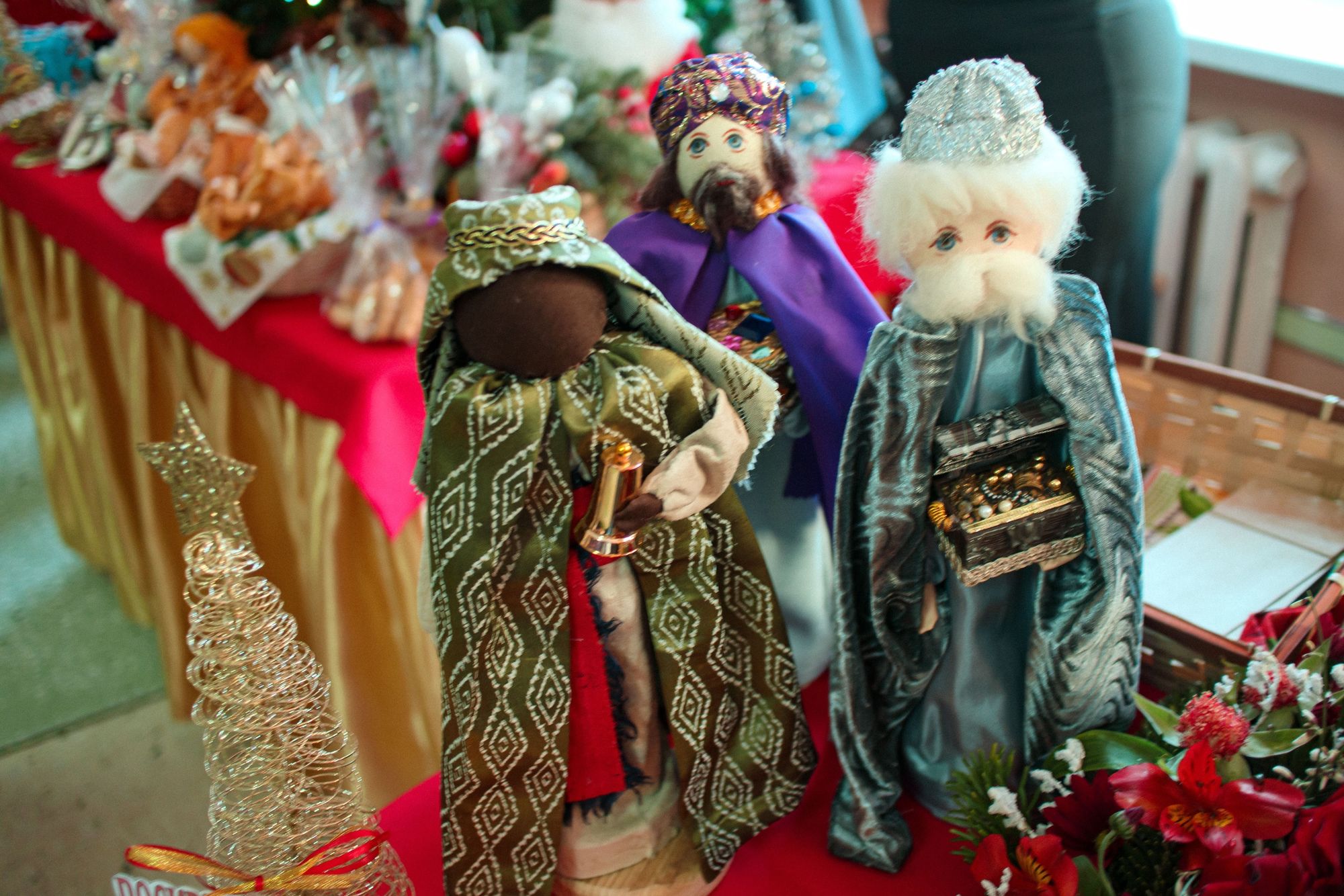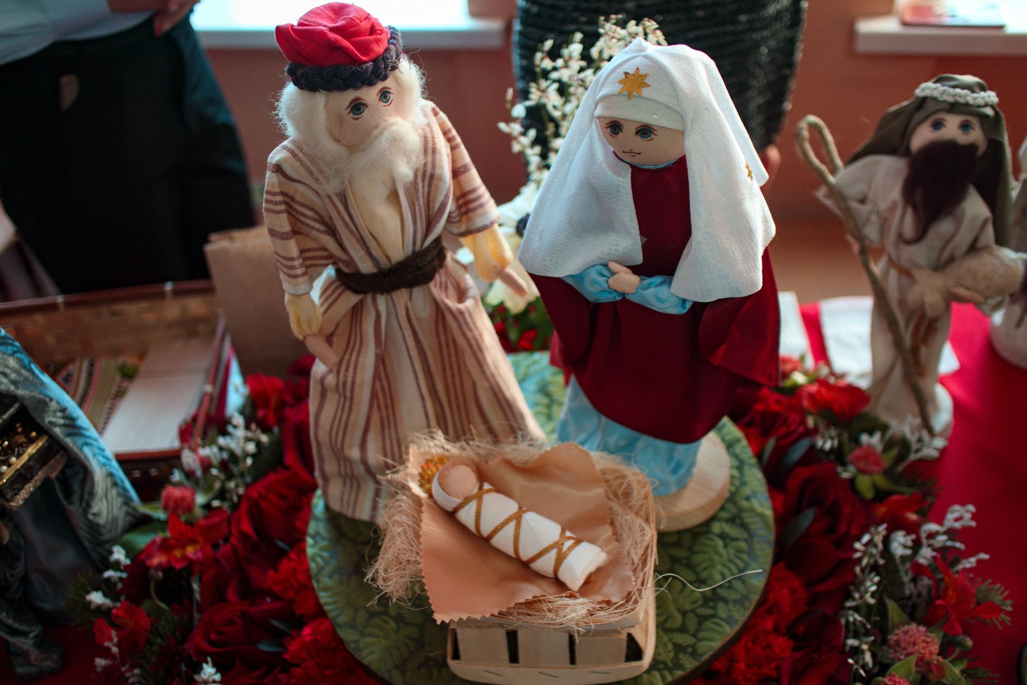 По традиции, фестиваль открыла шумная ярмарка, где гостей угощали сладкими подарками, пели колядки и демонстрировали свои рождественские поделки. Наша воскресная школа совместно с руководителем флористической мастерской В.В. Букиной представила рождественскую композицию с участием рукодельных кукол из вертепа, изготовленных руками художественного руководителя приходского кукольного театра «Пуговки» В.А. Шабеко, руководителя мастерской традиционной тряпичной куклы Н.П. Матвеевой и родителей.