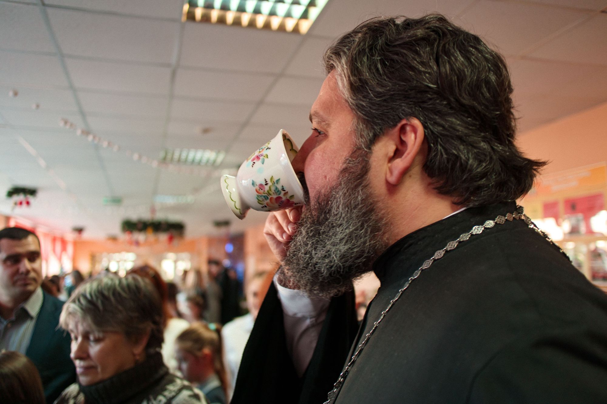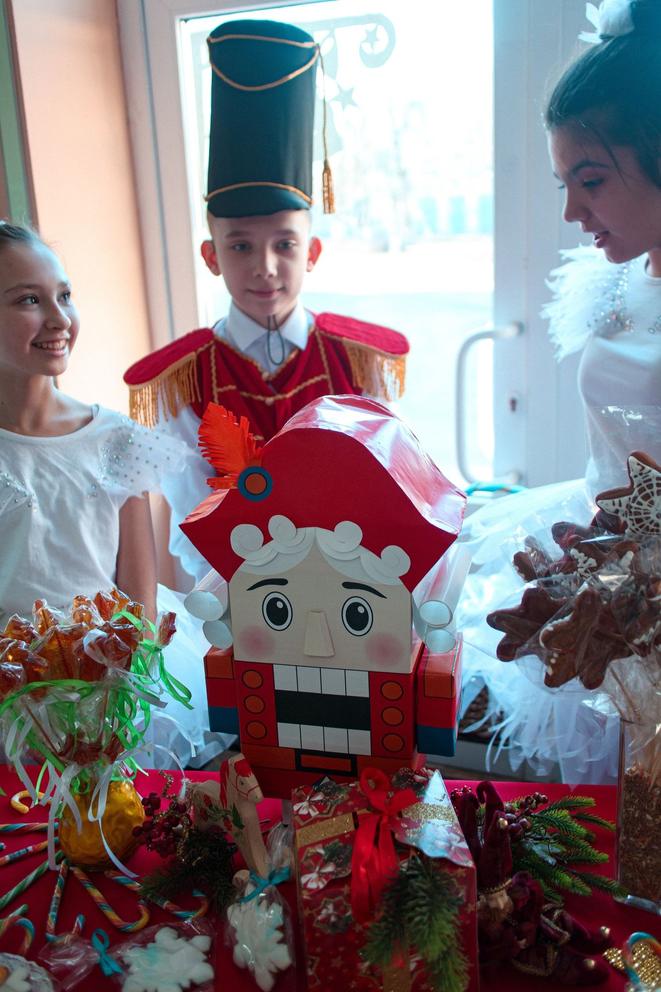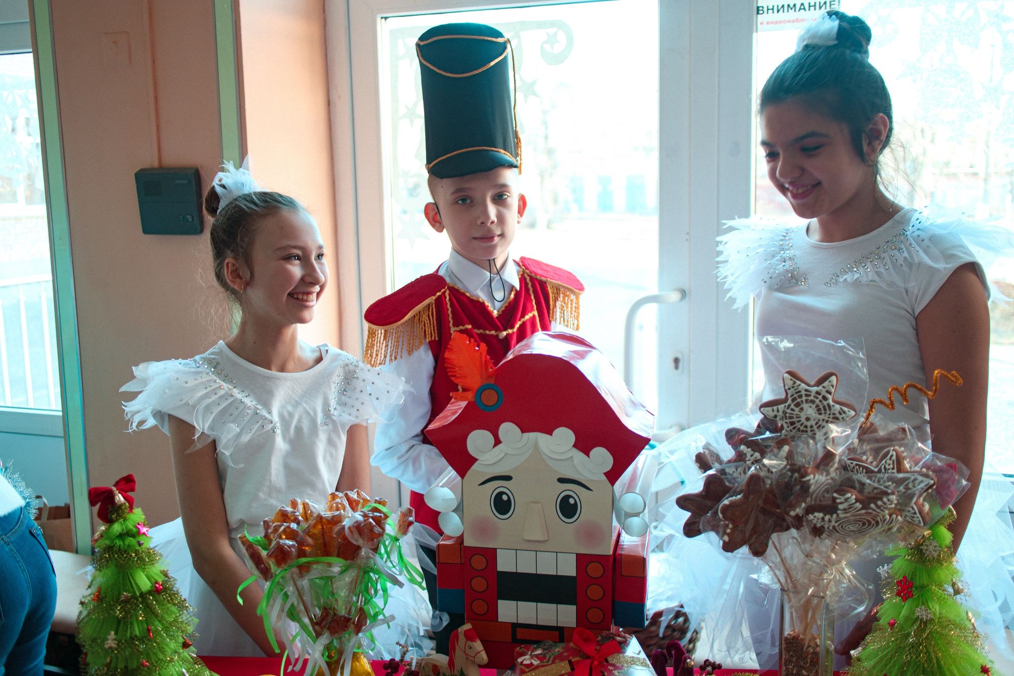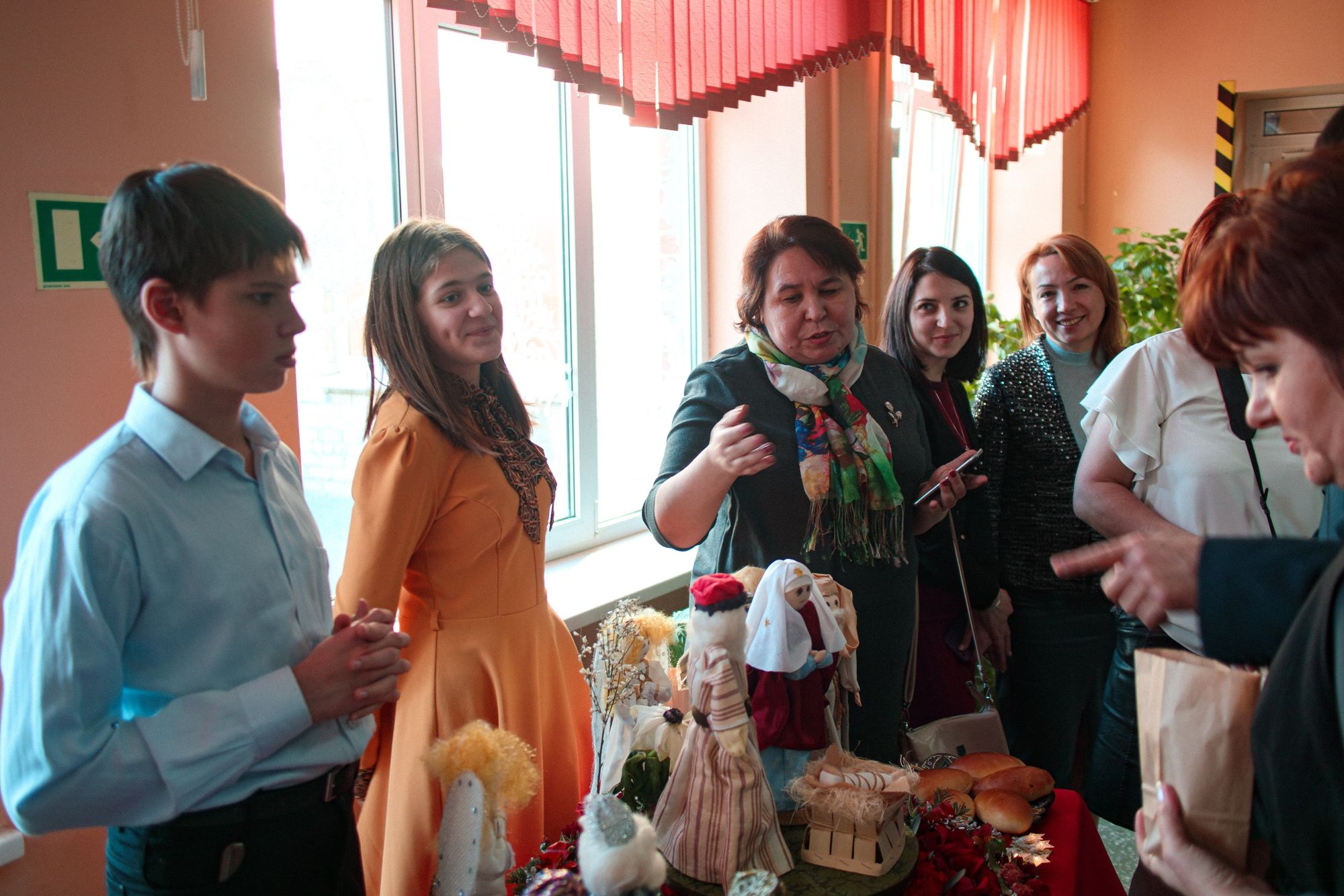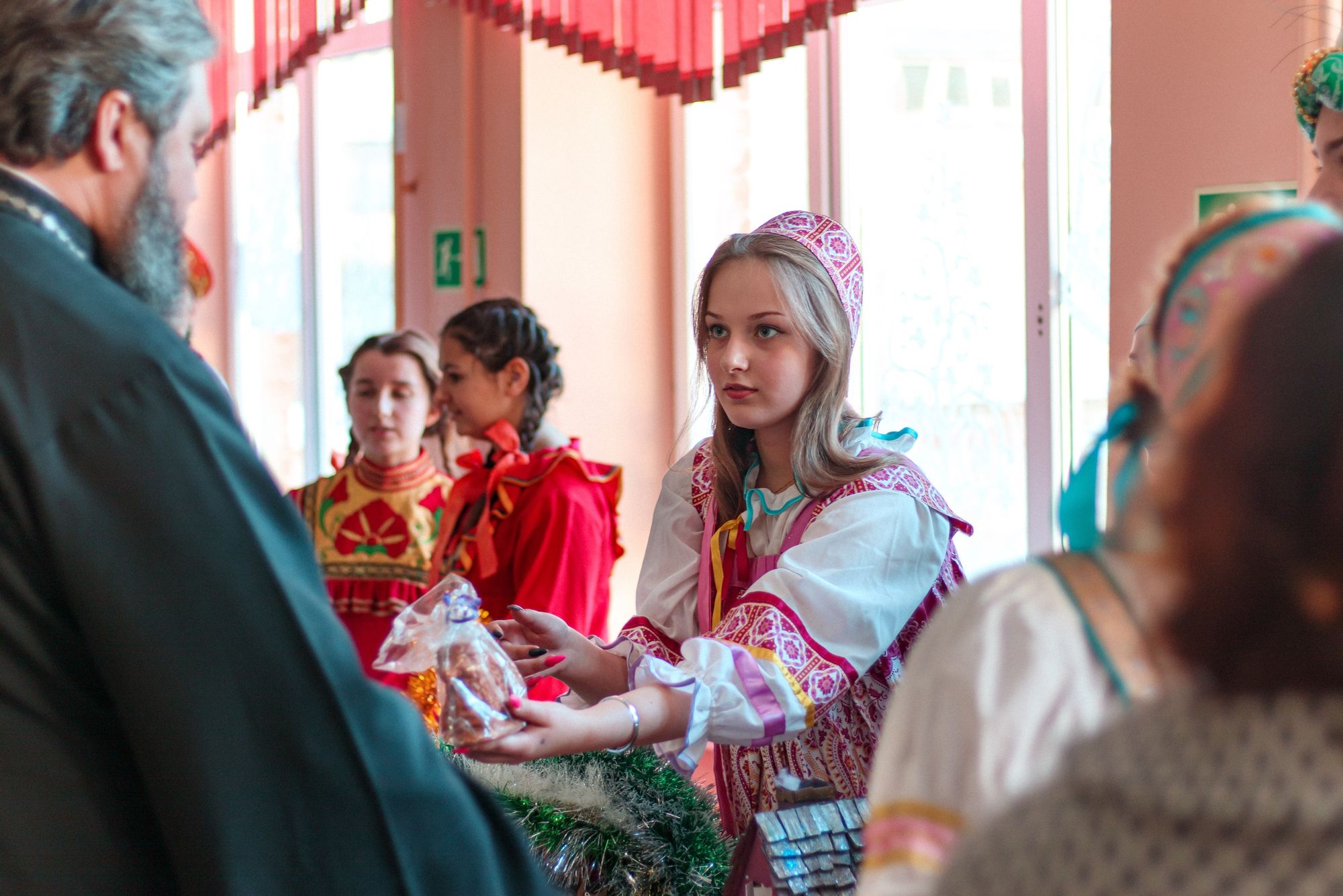 По традиции, фестиваль открыла шумная ярмарка, где гостей угощали сладкими подарками, пели колядки и демонстрировали свои рождественские поделки. Наша воскресная школа совместно с руководителем флористической мастерской В.В. Букиной представила рождественскую композицию с участием рукодельных кукол из вертепа, изготовленных руками художественного руководителя приходского кукольного театра «Пуговки» В.А. Шабеко, руководителя мастерской традиционной тряпичной куклы Н.П. Матвеевой и родителей.