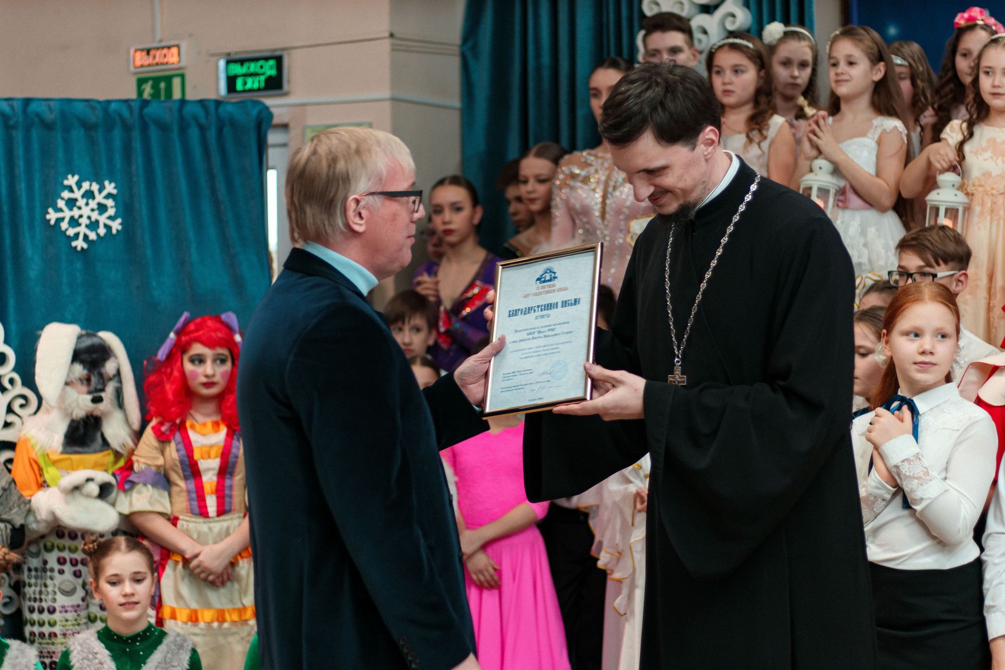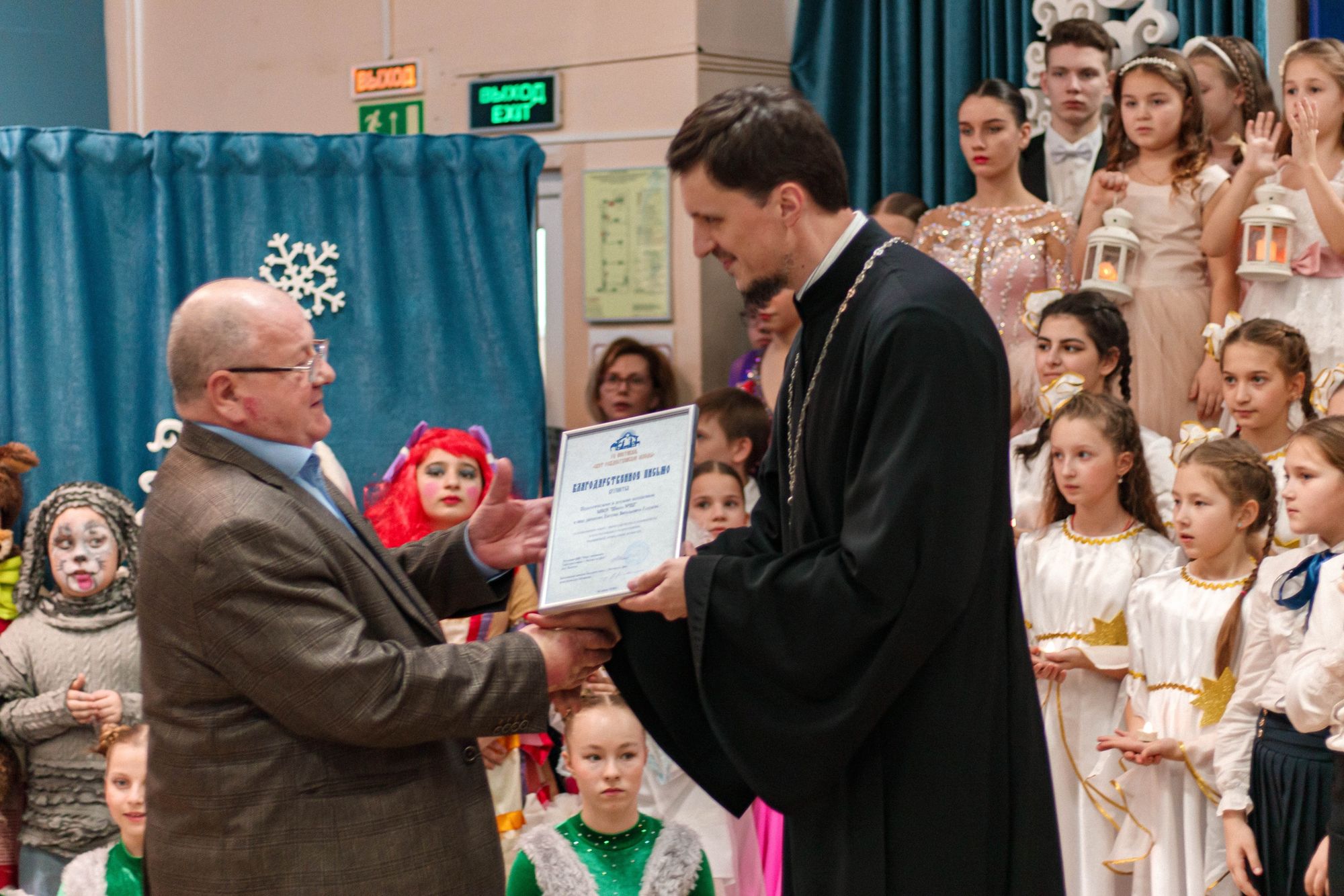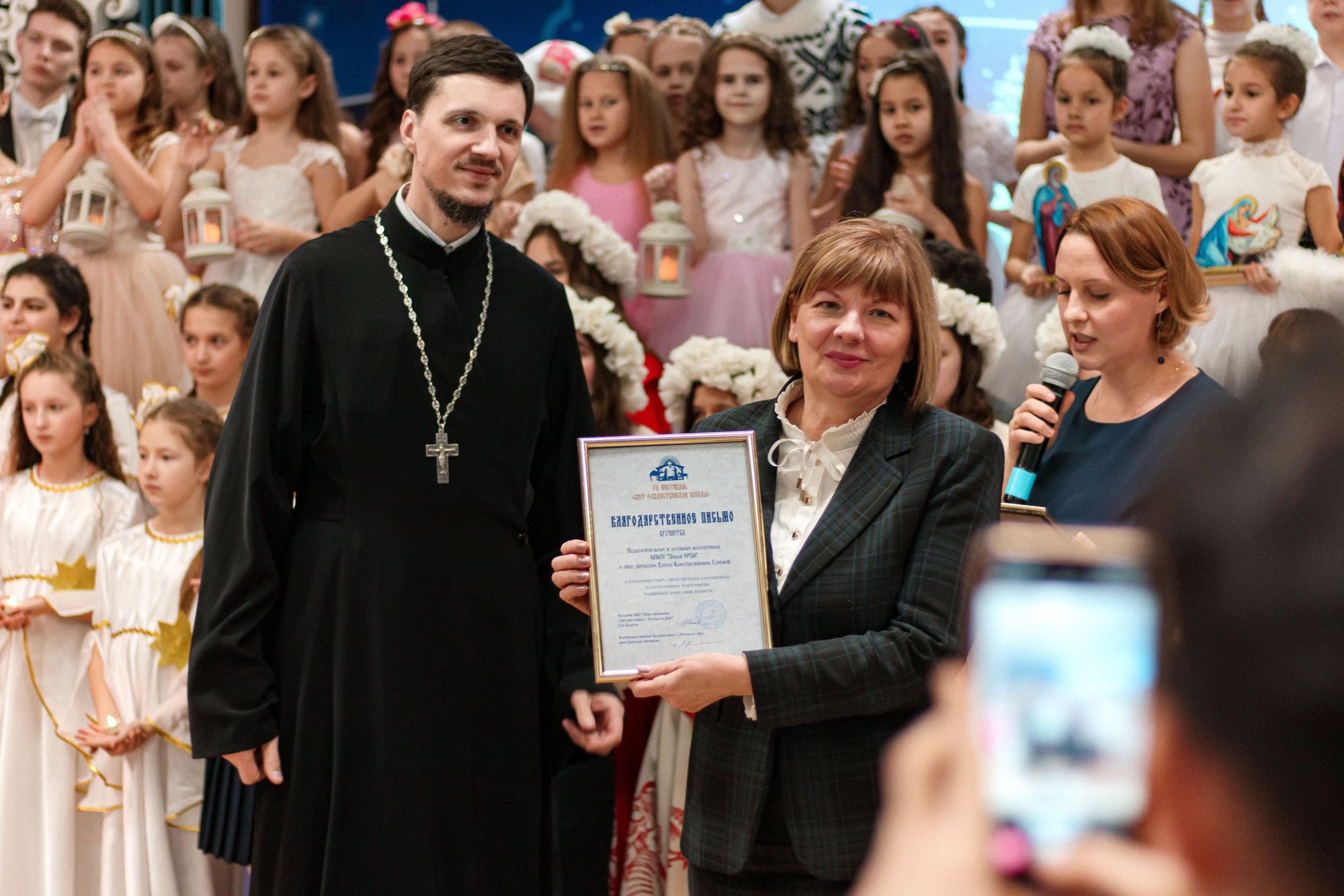 В финале праздника звучали слова благодарности и признательности в адрес организаторов и участников. Благочинный приходов Западного округа иерей Александр Литвиненко вручил благодарственные письма руководителям образовательных учреждений за плодотворную работу педагогических и детских коллективов, в том числе и руководителю нашей воскресной школы К.В.Волощук.