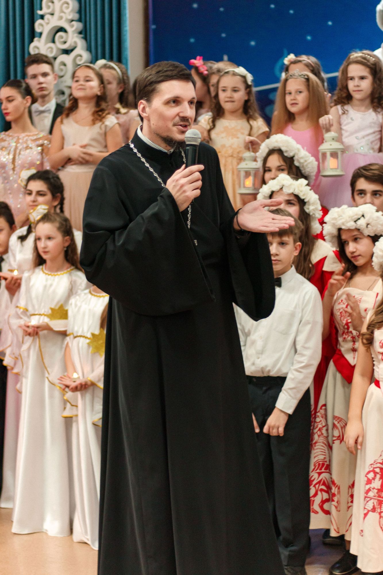 Праздник продолжил концерт, который объединил более двухсот участников. Все вместе мы еще раз пережили события Рождества Христова, прославили пришедшего в мир Спасителя, вспомнили, что самые приятные подарки для Богомладенца – это доброта, радость, милосердие и любовь! Сводный хор нашей воскресной школы под управлением Д.В. Середы и В.А. Калашниковой исполнили песню «Светлый праздник Рождества» и стал самым массовым коллективом, выступившим на празднике.
