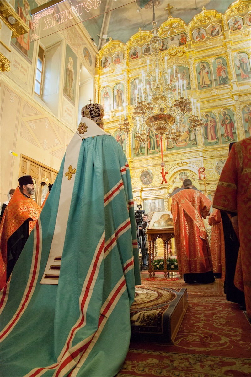 Митрополит Меркурий отмечал, что почитание Богородицы в Ее Донском образе становится свидетельством возвращения к истокам – истории, культуры и духовности». «Сегодня по благословению Святейшего Патриарха Кирилла мы совершаем освящение точного списка с чудотворного Донского образа Божией Матери, я хотел бы передать всем вам, дорогие братья и сестры, благословение Предстоятеля нашей Церкви, который благословил создание этого списка в ответ на просьбу жителей Дона и губернатора нашего края. В течение двух лет благословением Его Святейшества этот список создавался». «Мы чувствовали присутствие Божие Матери, Её благословение в этом благом деле». «Начиная со времен святого великого князя Димитрия Донского, со времен Куликовской битвы, когда по преданию жители Донской земли преподнесли этот образ великому князю, он неоднократно являл русскому народу и первопрестольному нашему граду особые милости. Так было и на поле Куликовом. Так было во время покорения Казани. Так было при осаде первопрестольного града войсками хана Гирея. Так было на протяжении многих веков. И вот, сегодня совершается историческое событие — спустя 635 лет мы освящаем точный список чудотворного образа для того, чтобы перенести его на южные пределы нашего Отечества, в сердце Донской земли — город Ростов-на-Дону, чтобы поставить там этот образ в духовном сердце нашего города и края — в кафедральном соборе, с молитвенным упованием на то, что Пречистая Матерь будет сохранять Своим благодатным Покровом южные рубежи нашего Отечества, собирать под Своим Покровом казаков Великого войска Донского, станет Матерью и Покровительницей всем, кто к этому образу будет приходить с молитвой и упованием». «Знаменательно то, что этот список освящается при двух великих наших святынях — в присутствии Владимирской иконы Божией Матери и подлинной чудотворной Донской иконы, — сказал иерарх. — Молимся и верим, что благодать Пречистой Богоматери, на всех образах явленная, неотступно будет пребывать и с этим списком в пределах Донского края. Об этом сейчас и вознесем свои молитвы». От имени Святейшего Патриарха Кирилла митрополит Меркурий выразил благодарность Министерству культуры, сотрудникам Государственной Третьяковской галереи, благодетелям и всем тем, кто принимал участие в создании этого дивного образа. По окончании богослужения губернатор Ростовской области Василий Голубев от имени жителей Донской земли преподнес иконе драгоценный оклад, который является точной копией исторического, но некогда утраченного оклада. «Дорогой Владыка, я хотел бы высказать слова искренней благодарности за Вашу деятельность, за то, что Вы делаете для духовного возрождения и воспитания на Донской земле, за ту идею, которую мы с Вами обсуждали и формировали два года назад — о создании точной копии иконы Донской Божией Матери, — сказал губернатор Ростовской области. — Мне бы хотелось сегодня в этот торжественный момент, в преддверии Великой Победы в Отечественной войне, преподнести воссозданный оклад иконы Донской Божией Матери. Уверен, что находясь на Донской земле, икона будет её охранять, будет укреплять духом людей, будет способствовать нашим новым победам на благо Великой России и всех людей, живущих на нашей земле».