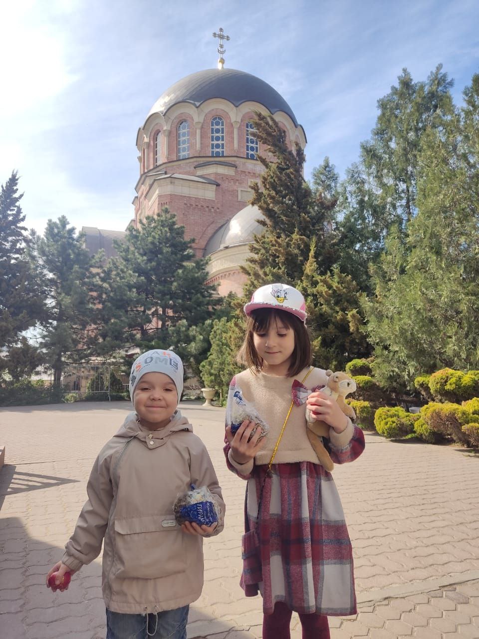 Детки из многодетных семей получили сладости и пасхальные куличи.