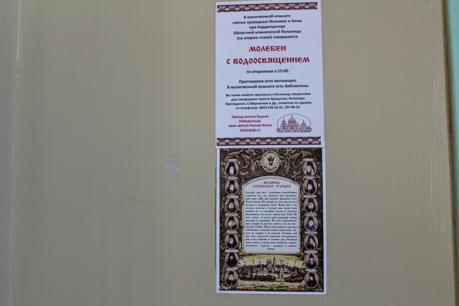 25 августа 2015 года в часовне кардиологического центра Областной клинической больницы состоялся молебен о здравии с водосвятием. По благословению настоятеля протоиерея Валерия Волощука такие молебны проходят тут каждую неделю по вторникам в 15.00. Сама часовня открыта для больных и их родственников каждый день и в любое время можно поставить свечи у икон, подать записочки, а также почитать духовную литературу.