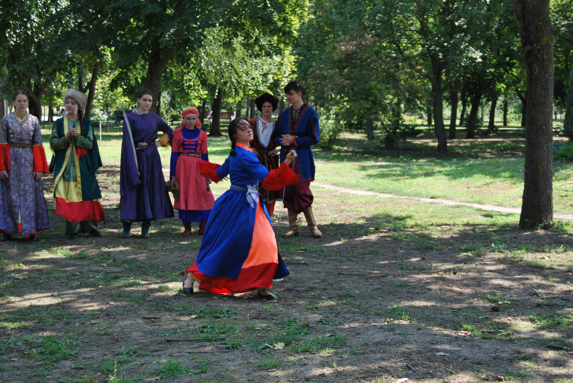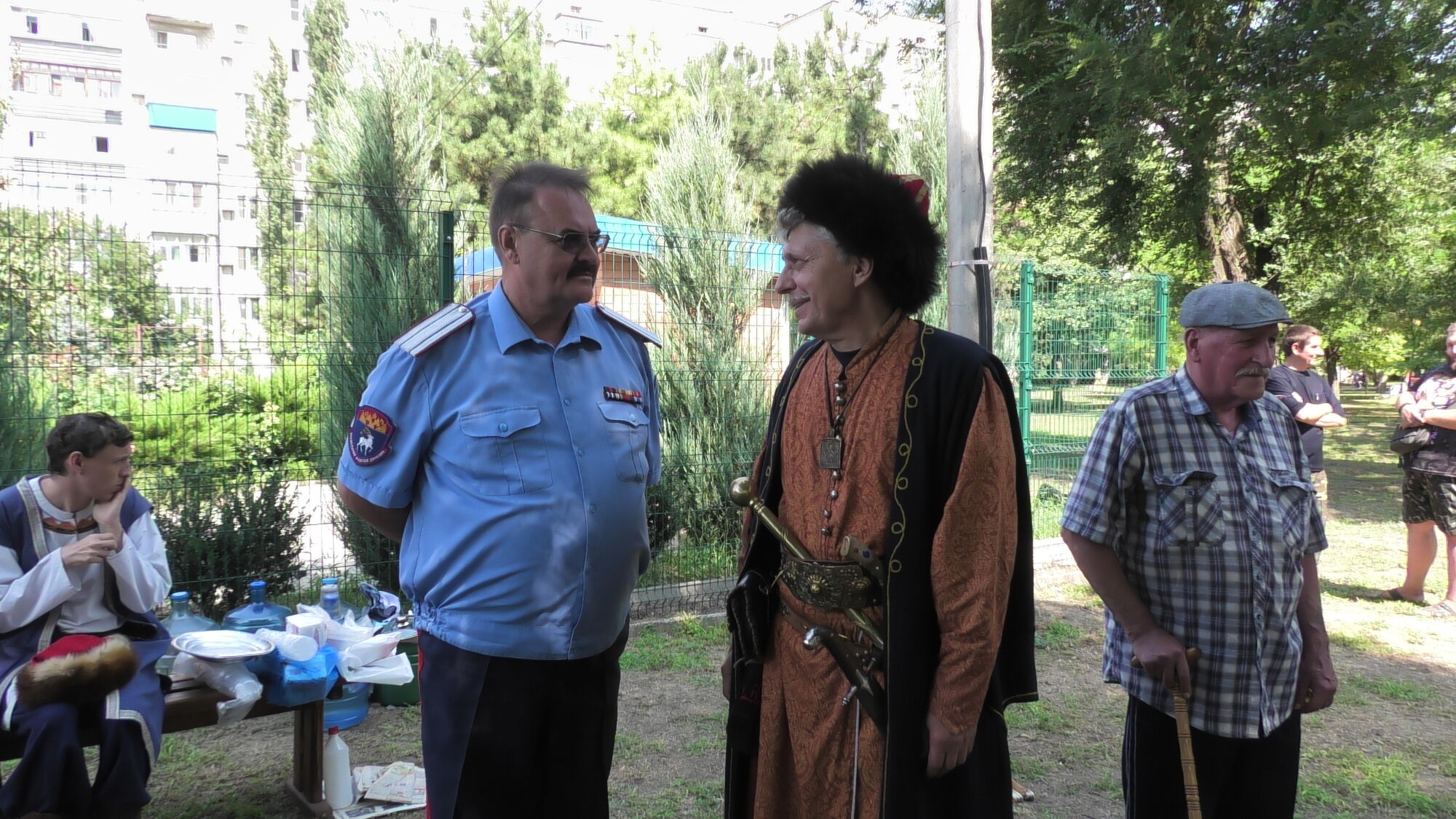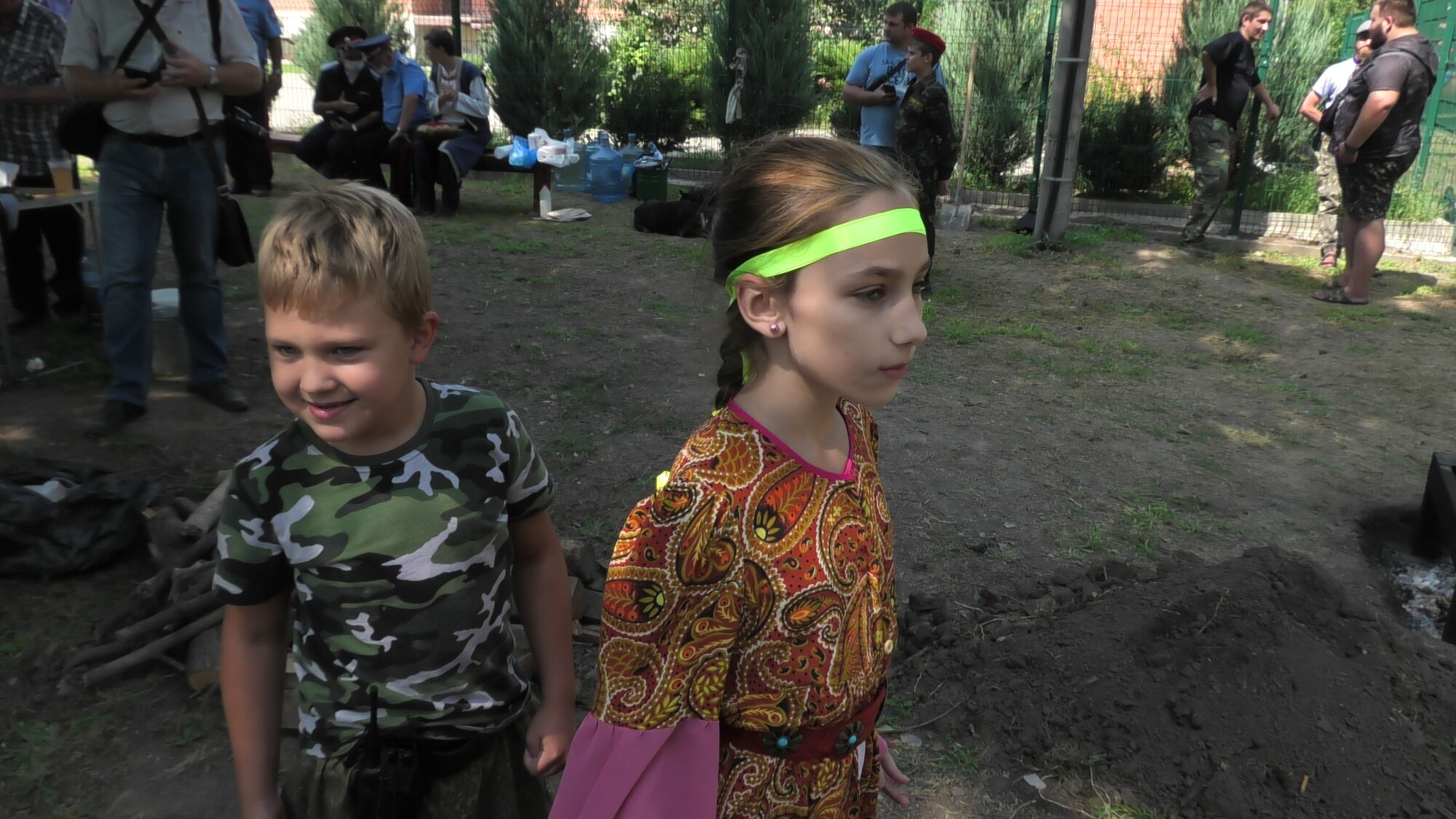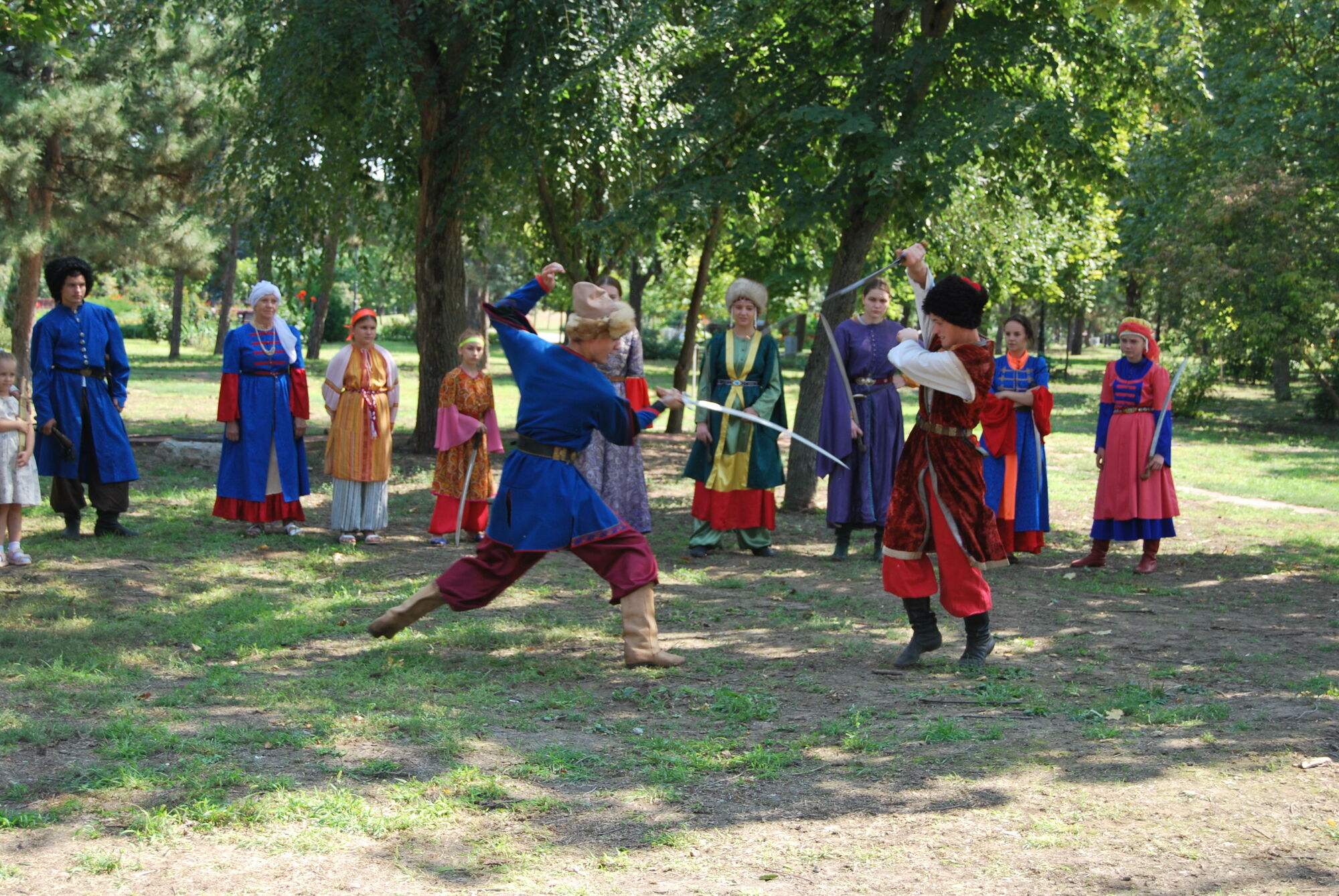 На подворье Храма нас встречал руководитель военно-исторического клуба «Казачья Слава» со своим коллективом подъесаул Саманев С.Г. Казаки и казачки клуба провели мастер-класс по приготовлению традиционных казачьих блюд в полевых условиях (донской ухи, шулюма, сладостей, прохладительных напитков), а также костюмированный мастер-класс по фланкировке казачьей шашкой, упражнения с кинжалом и кинжальный бой! Особенно понравилось нашим воспитанникам участие в подвижных казачьих играх «Третий лишний», «Платочек», «Веселые палочки». Конники конного взвода города преподали нашим воспитанникам азы верховой езды на лошадях.