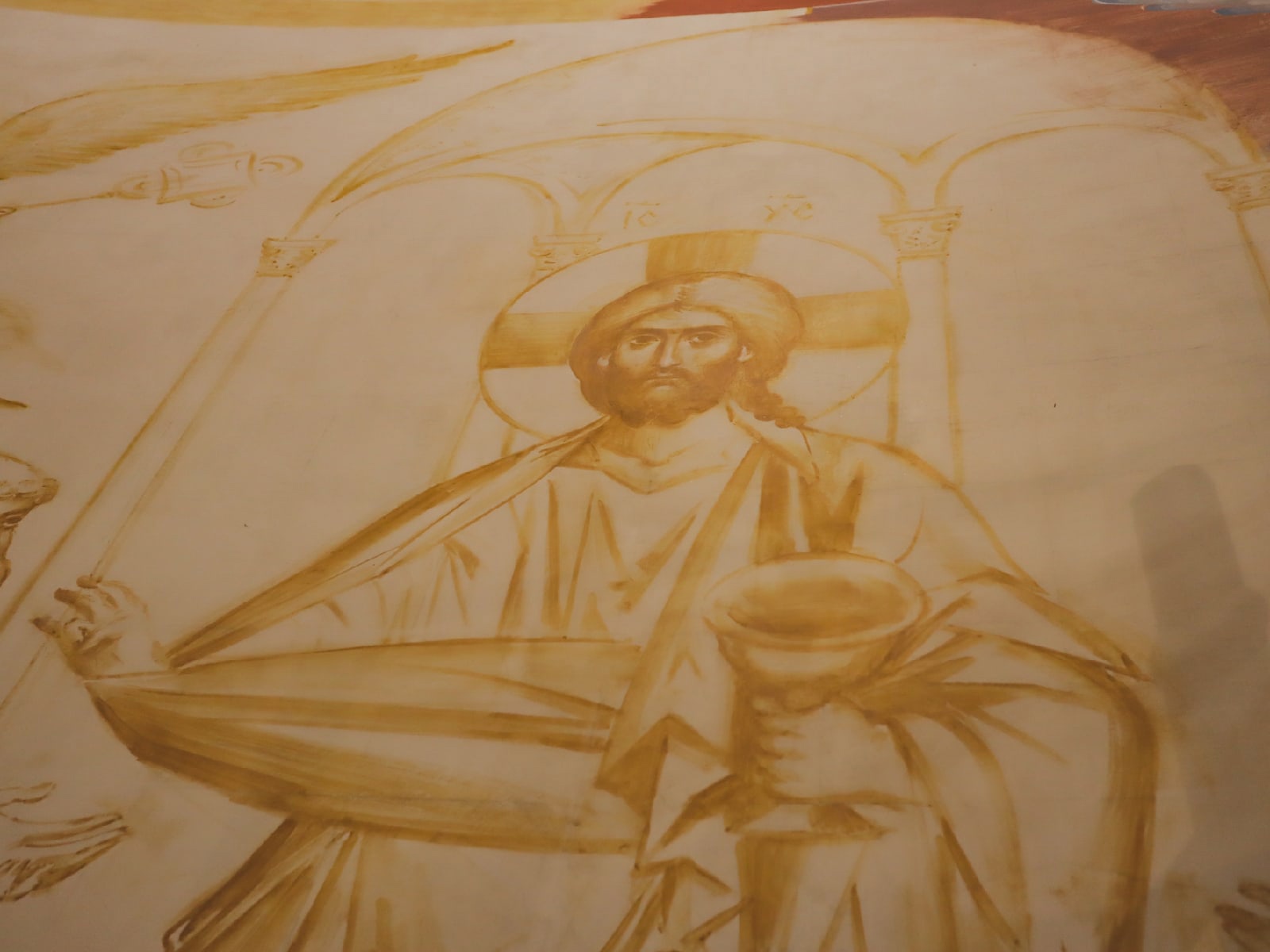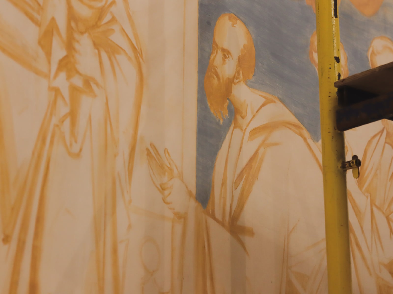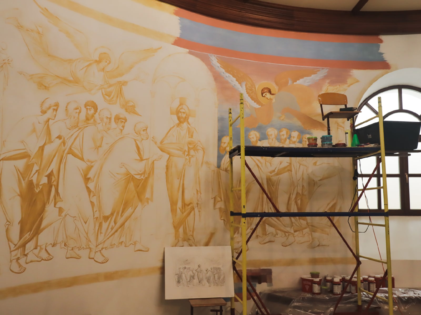 Над росписью трудится Алёшин Анатолий Валерьевич - один из ведущих специалистов в области фресковой росписи, преподаватель иконописного факультета Московской духовной академии.