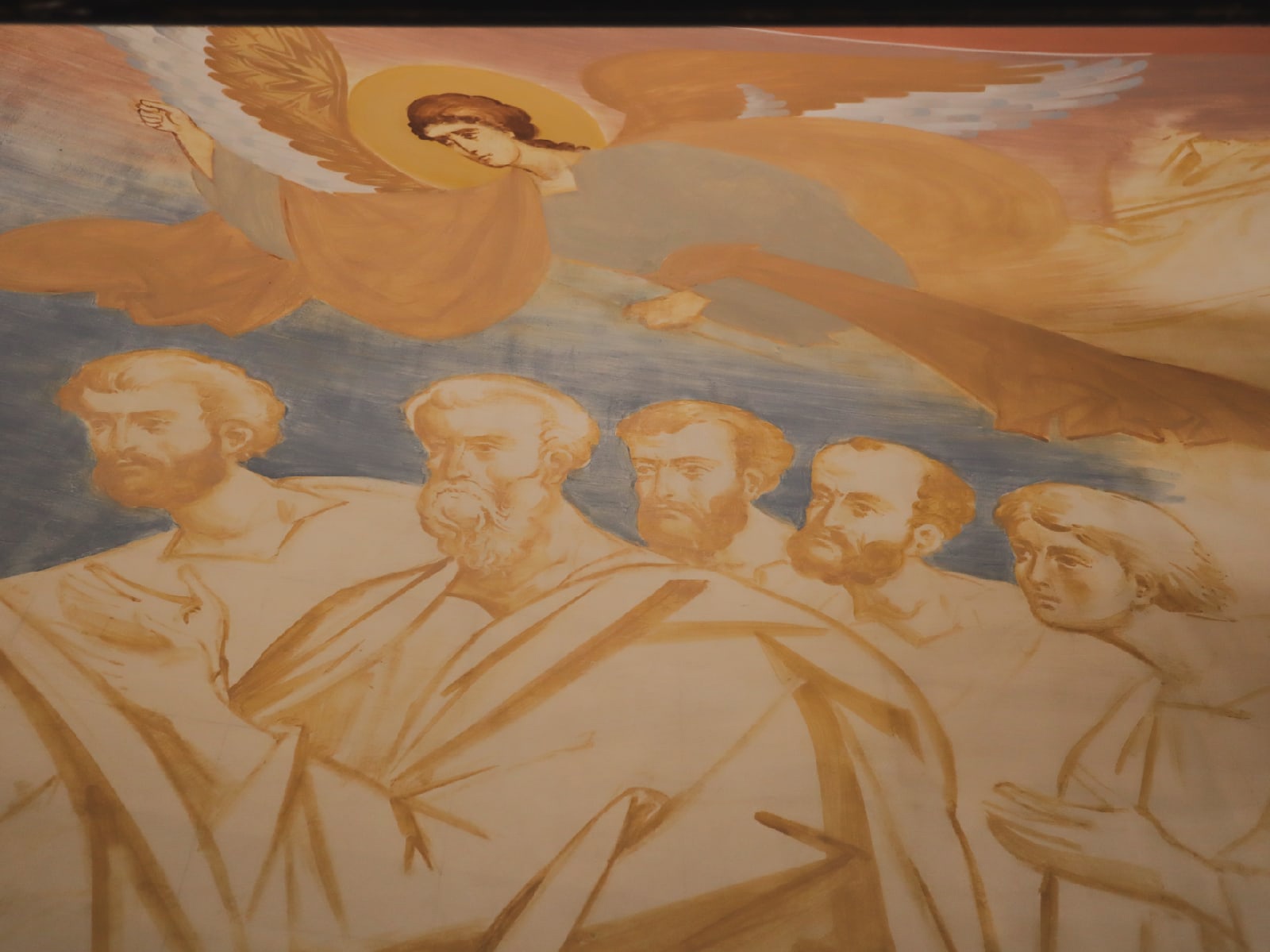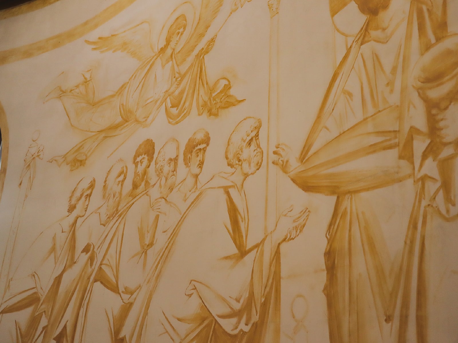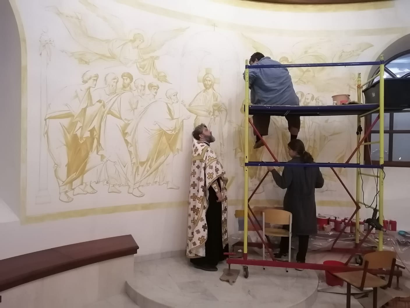 Над росписью трудится Алёшин Анатолий Валерьевич - один из ведущих специалистов в области фресковой росписи, преподаватель иконописного факультета Московской духовной академии.