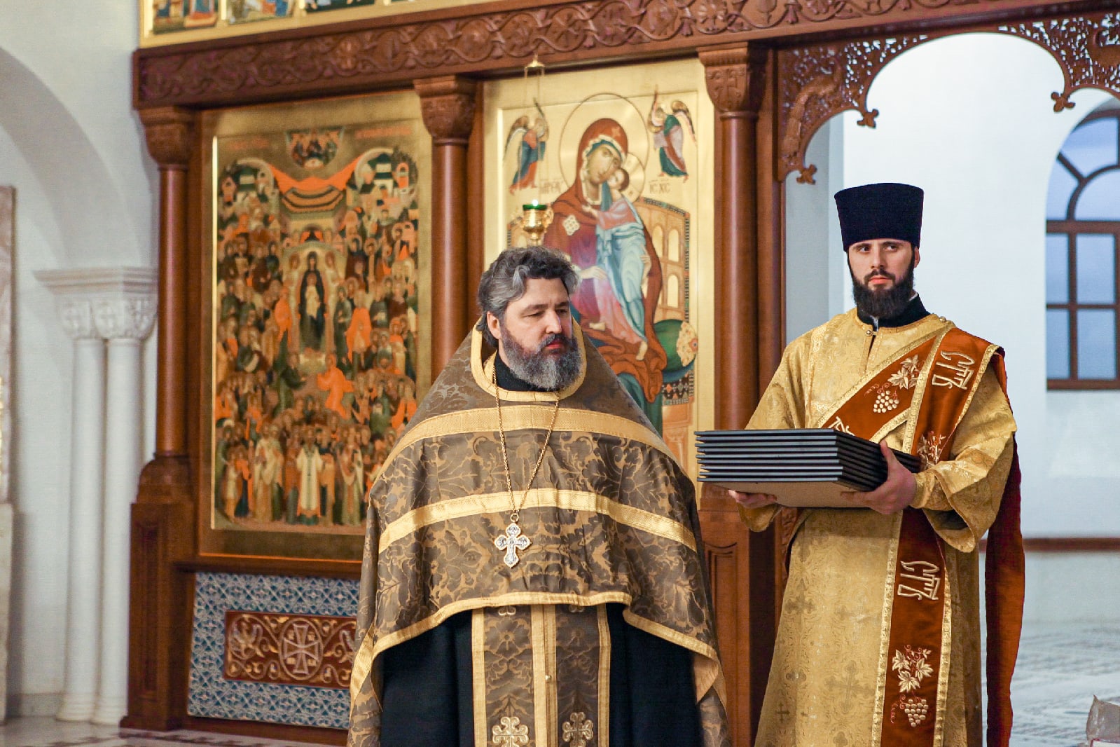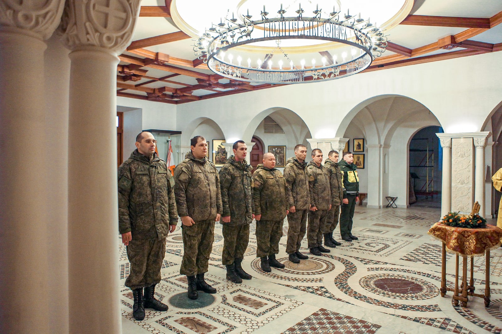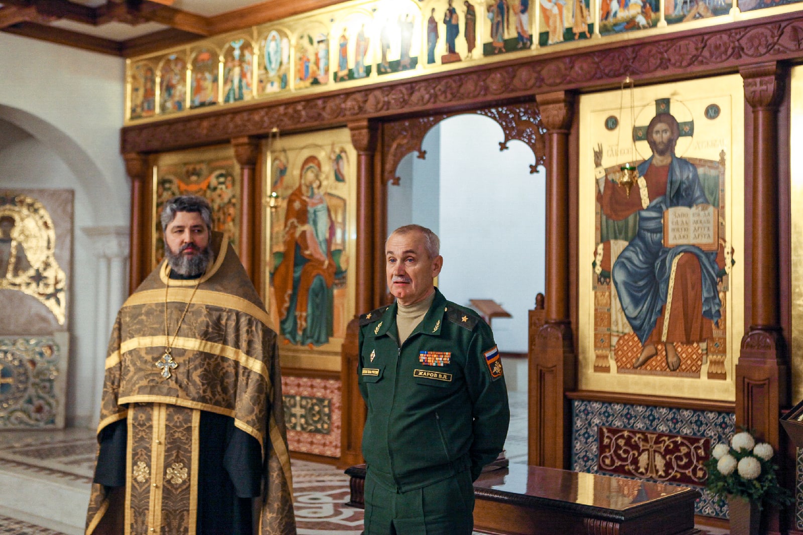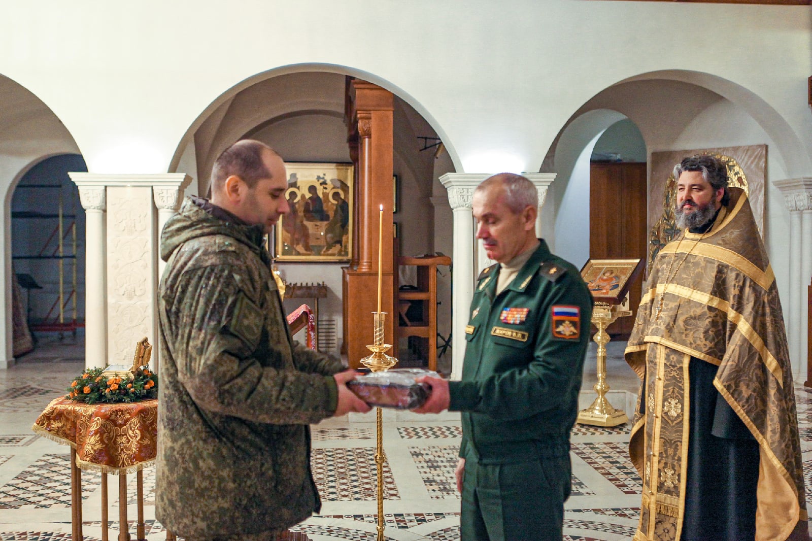 Вместе с командирами частей и офицерами, принимавшими активное участие в созидании храма святого Георгия Победоносца - главного храма Южного военного округа, помолились Господу Иисусу Христу и поблагодарили Его за радость совместных трудов, милость и помощь в благоустроении нашего общего храма и приходской территории. По окончании молебна настоятель прихода, руководитель отдела по взаимодействию с Вооруженными Силами и правоохранительными органами Ростовской-на-Дону епархии протоиерей Валерий Волощук вручил грамоты и святые образа в благодарность за труды. От лица командования Южного военного округа заместитель командующего по военно-политической работе генерал-майор Владимир Левонтьевич Жаров наградил военнослужащих памятными подарками.