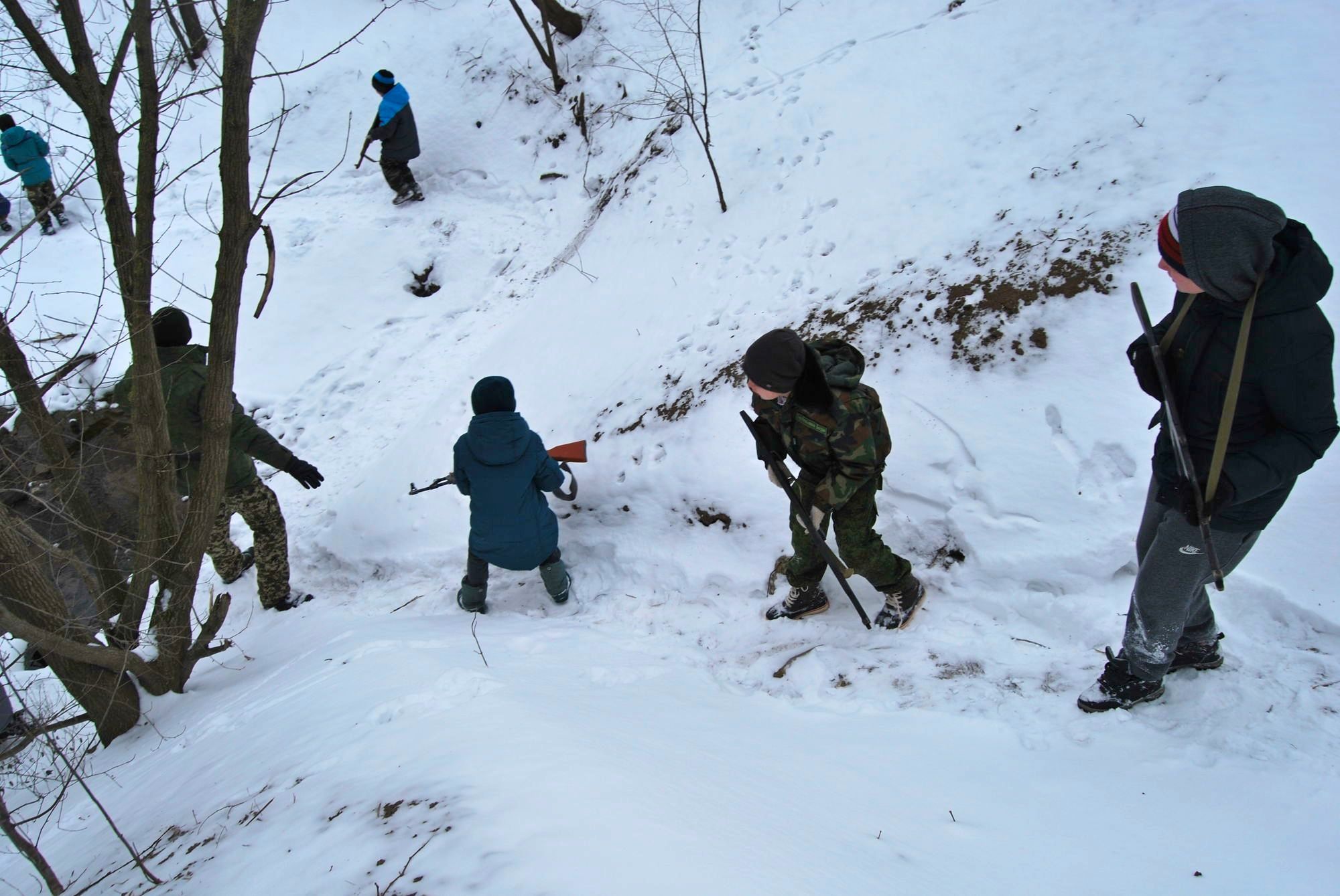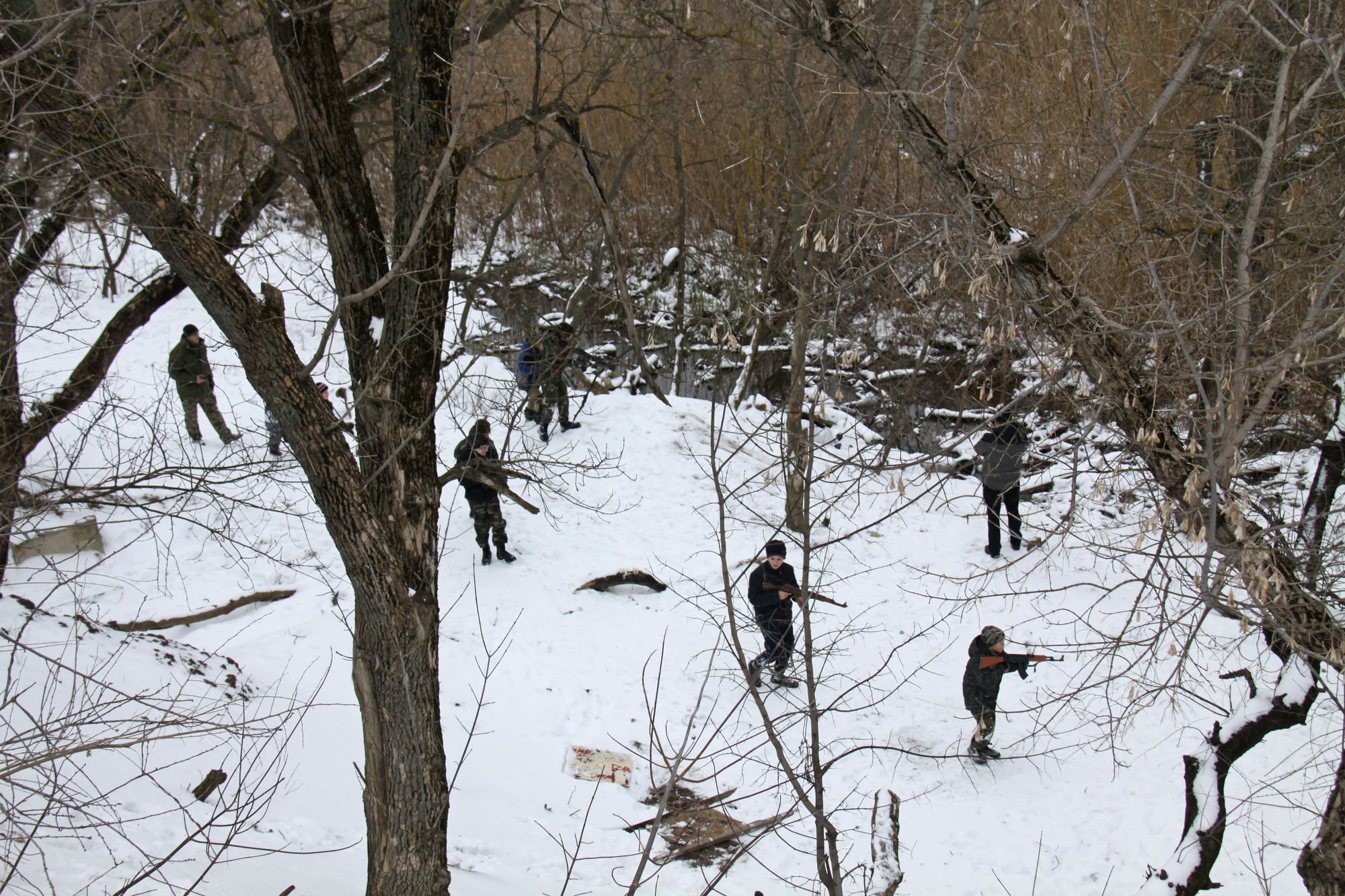 Из числа юнармейцев были сформированы четыре развед-группы, которые выполняли поставленные задачи в условной горно-лесистой местности в балке Рябинина, прилегающей к территории храма. Небольшая группа учащихся была одета в белые маскировочные костюмы с целью обнаружения и противодействия выполнению заданий развед-групп условного противника. При проведении занятий использовались деревянные макеты автоматов Калашникова и переносные средства связи.