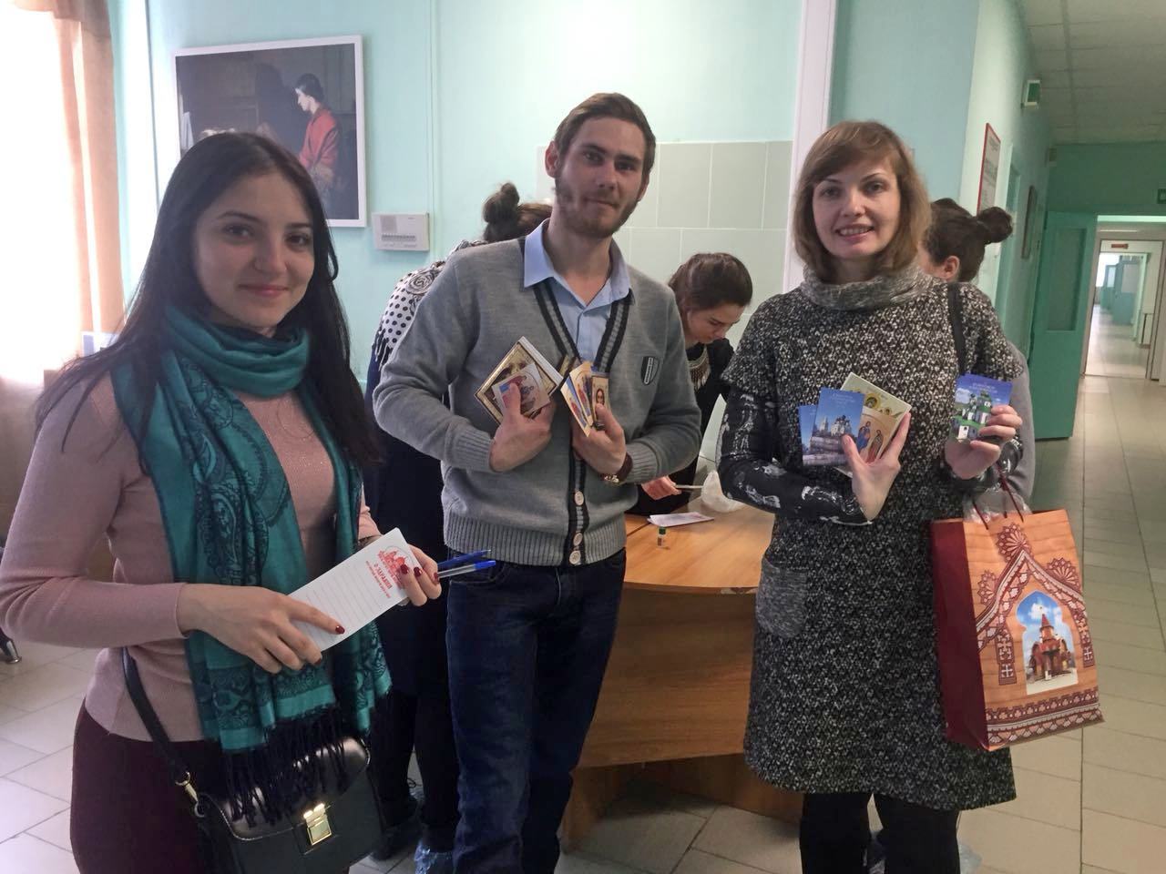 По благословению настоятеля протоиерея Валерия Волощука была проведена благотворительная акция по раздачи церковной утвари. Сестры прошли по палатам и рассказали всем присутствующим о происхождении праздника. Ребята писали записочки о здравии, раздавали иконки, молитвословы, отвечали на вопросы. Также они проведали отца Георгия (папу нашего настоятеля), который в настоящий момент находится на лечении в этом центре. Пожелаем ему скорейшего выздоровления и поддержим соборной молитвой о его здравии!!!