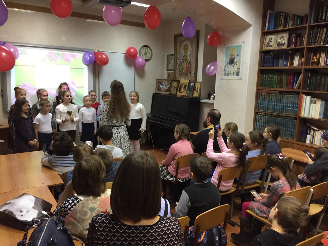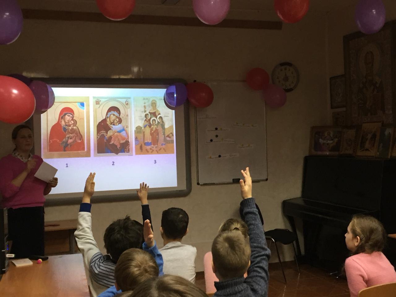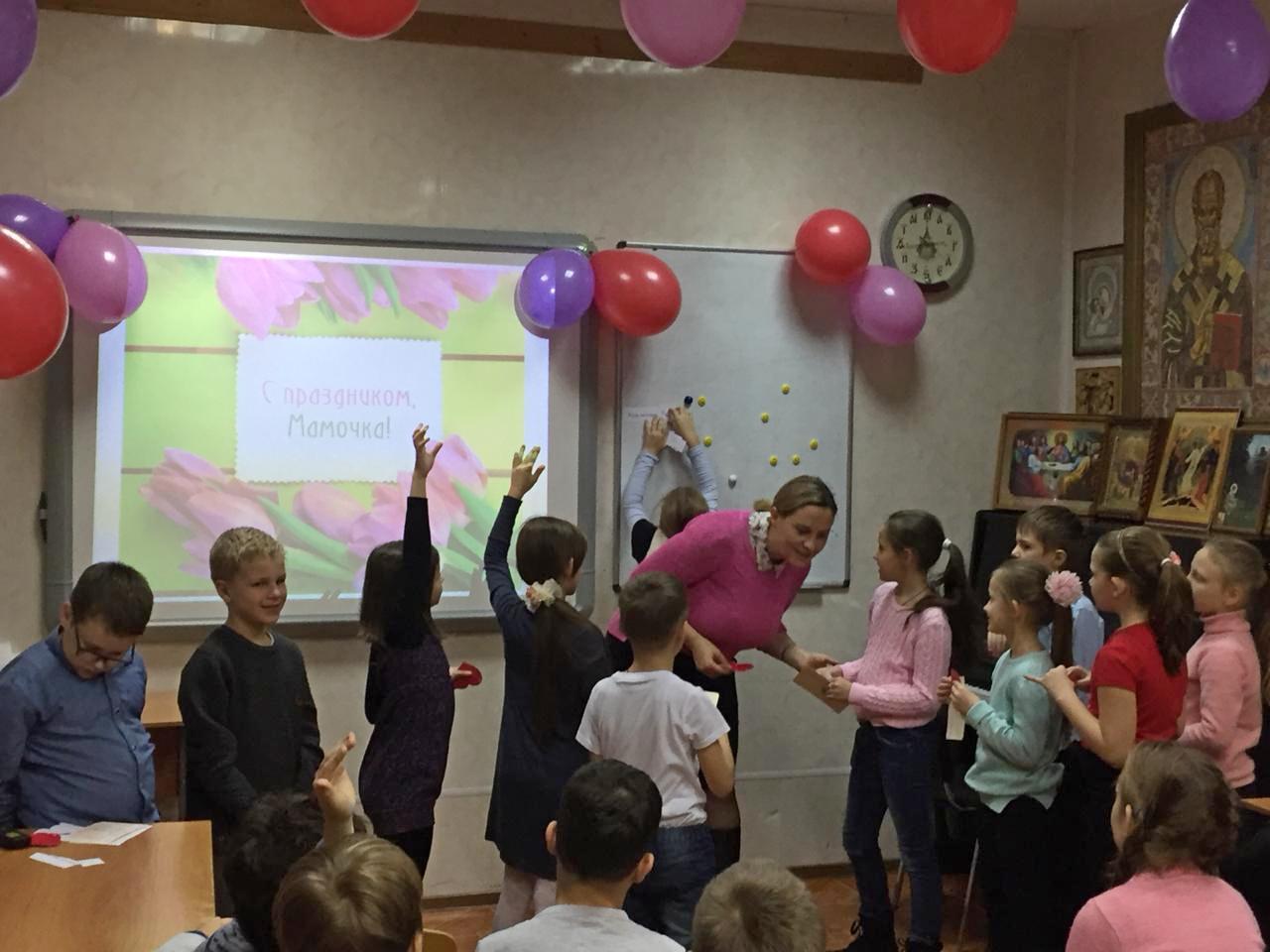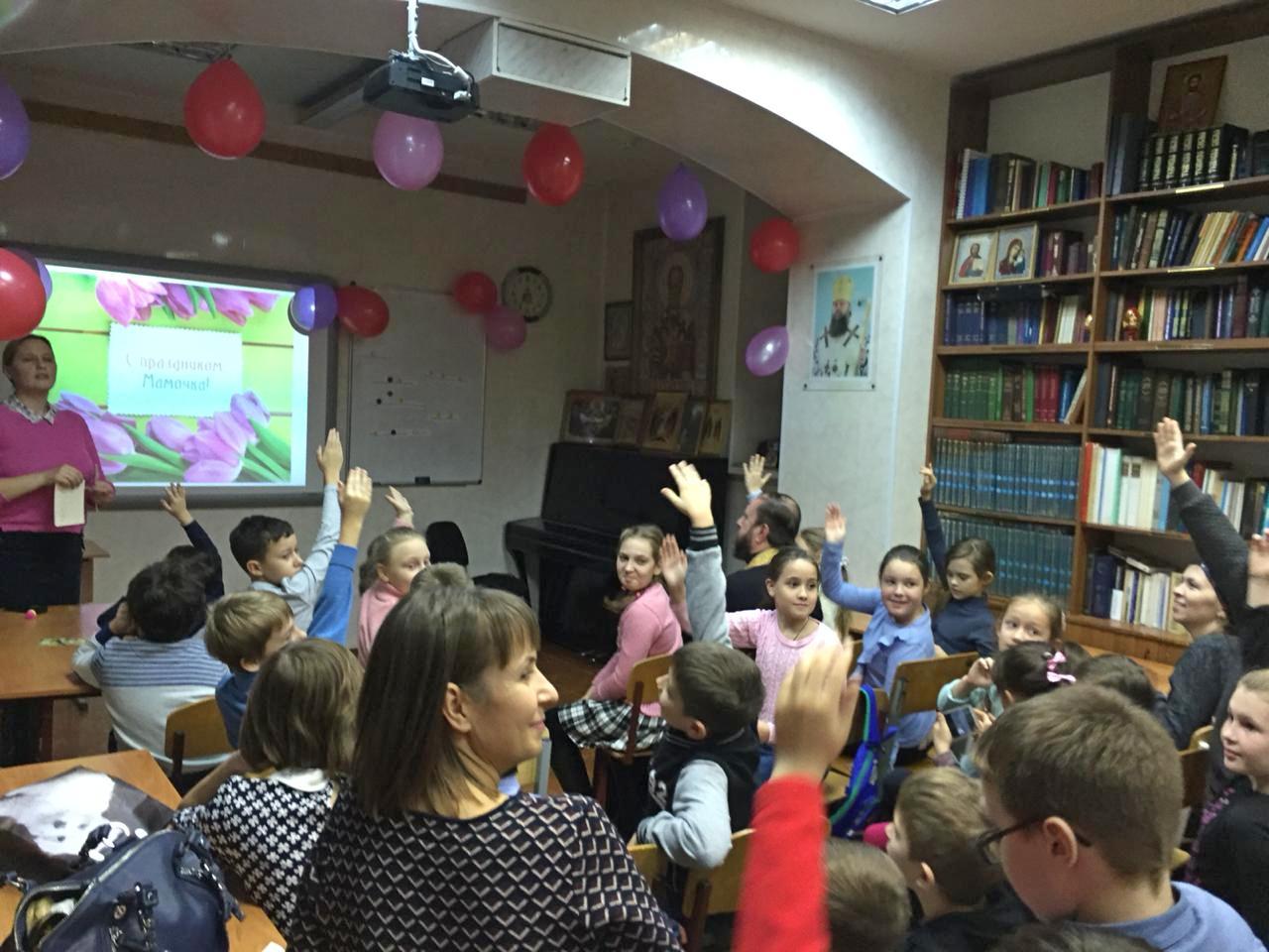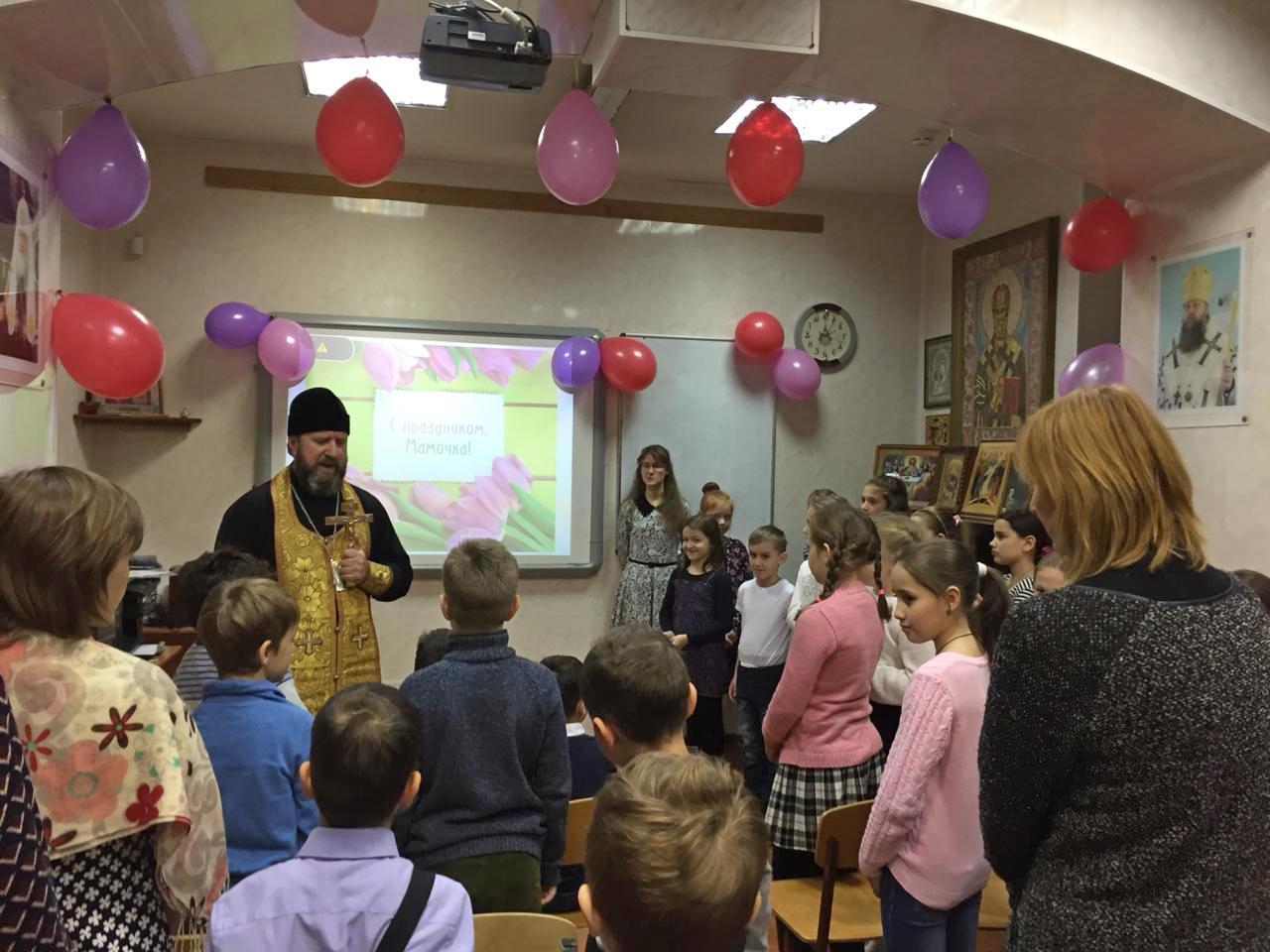 24 ноября 2018 года в младших группах воскресной школы отметили День матери. Дети совместно с мамами выполняли задания и участвовали в викторине, поздравляли творческими номерами и комплиментами. В воскресенье 25 ноября уроки, посвященные этому замечательному празднику, прошли и в старших группах. Ребята посмотрели фильм о самоотверженной материнской любви, о прощении, о почитании родителей. Добрая сказка-притча о Звёздном мальчике не оставила никого равнодушным. После показа состоялась обсуждение, во время которого ребята составили небольшой кодекс хорошего сына и дочки.